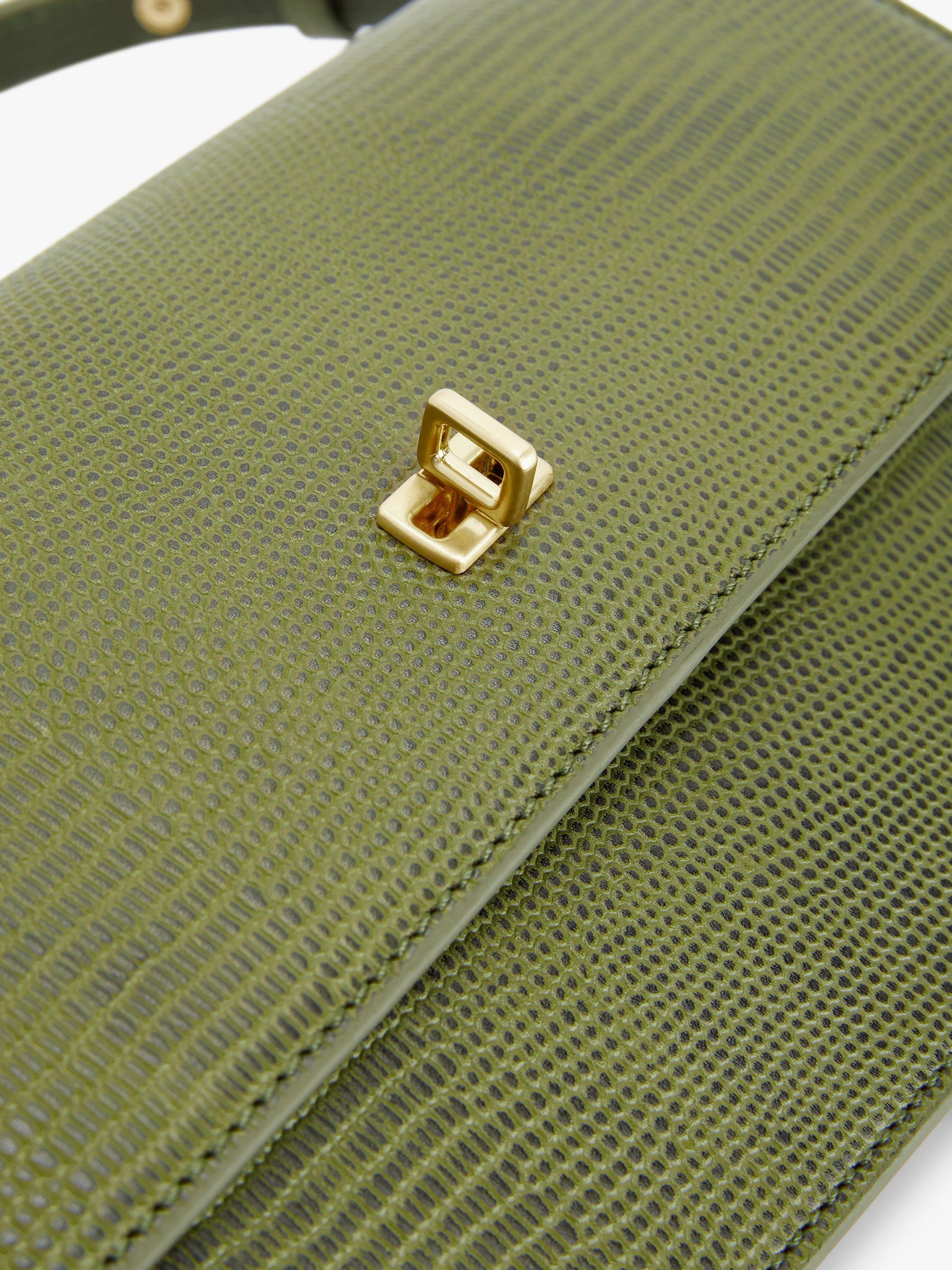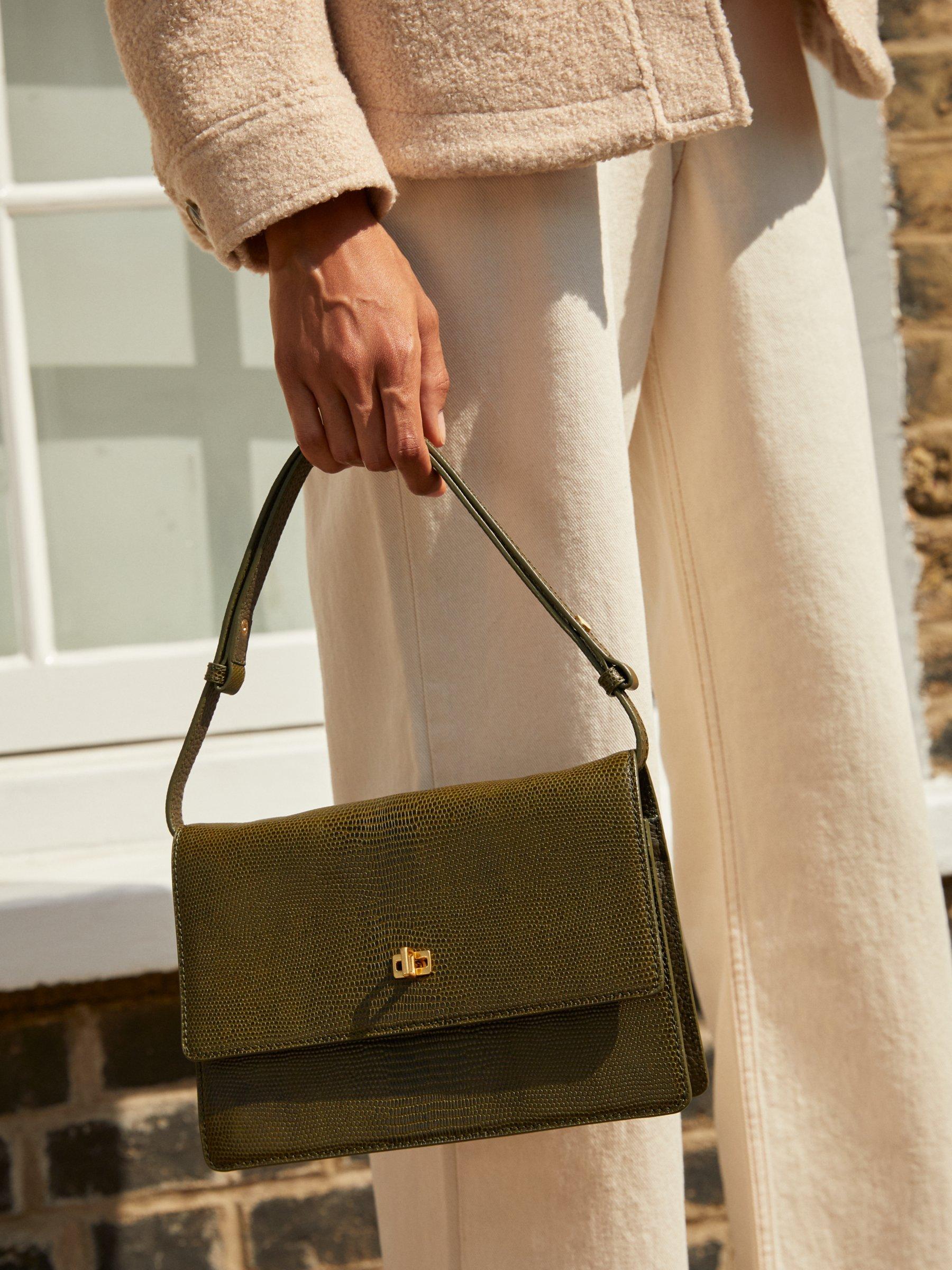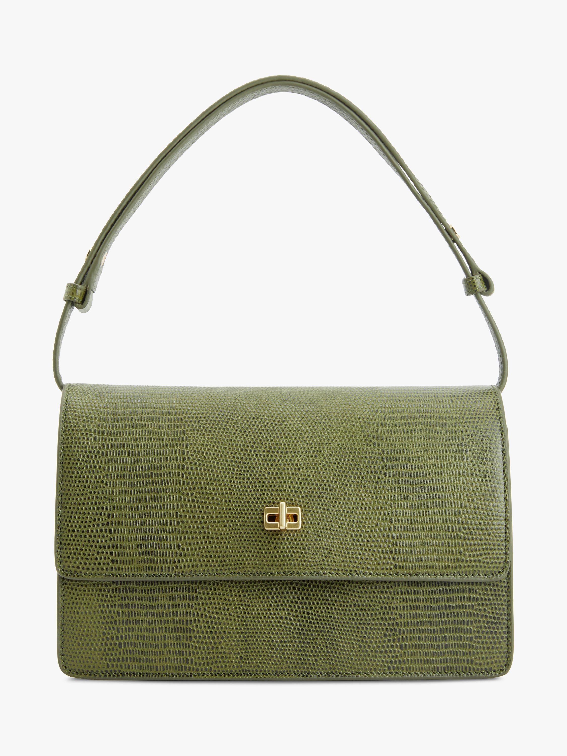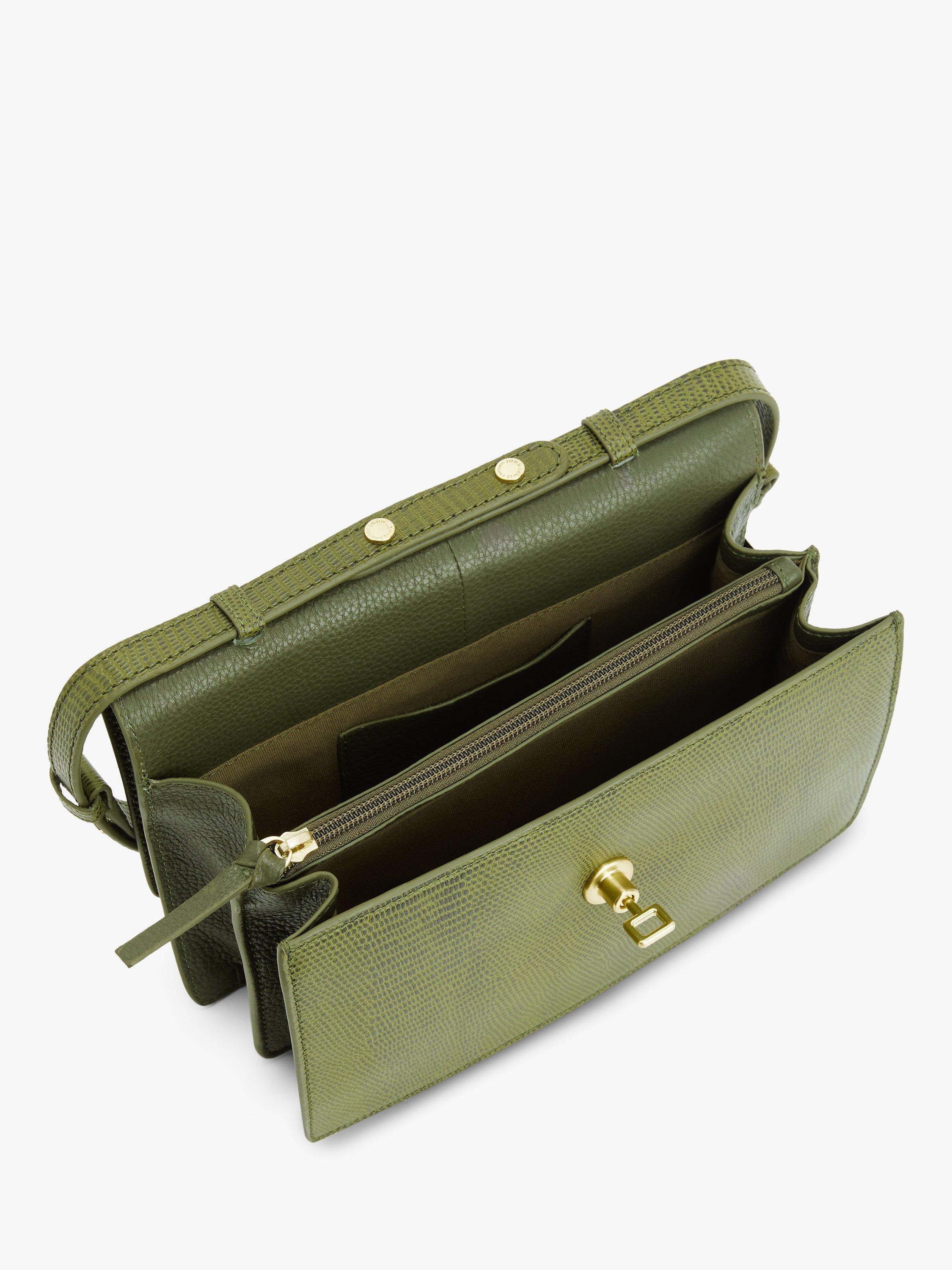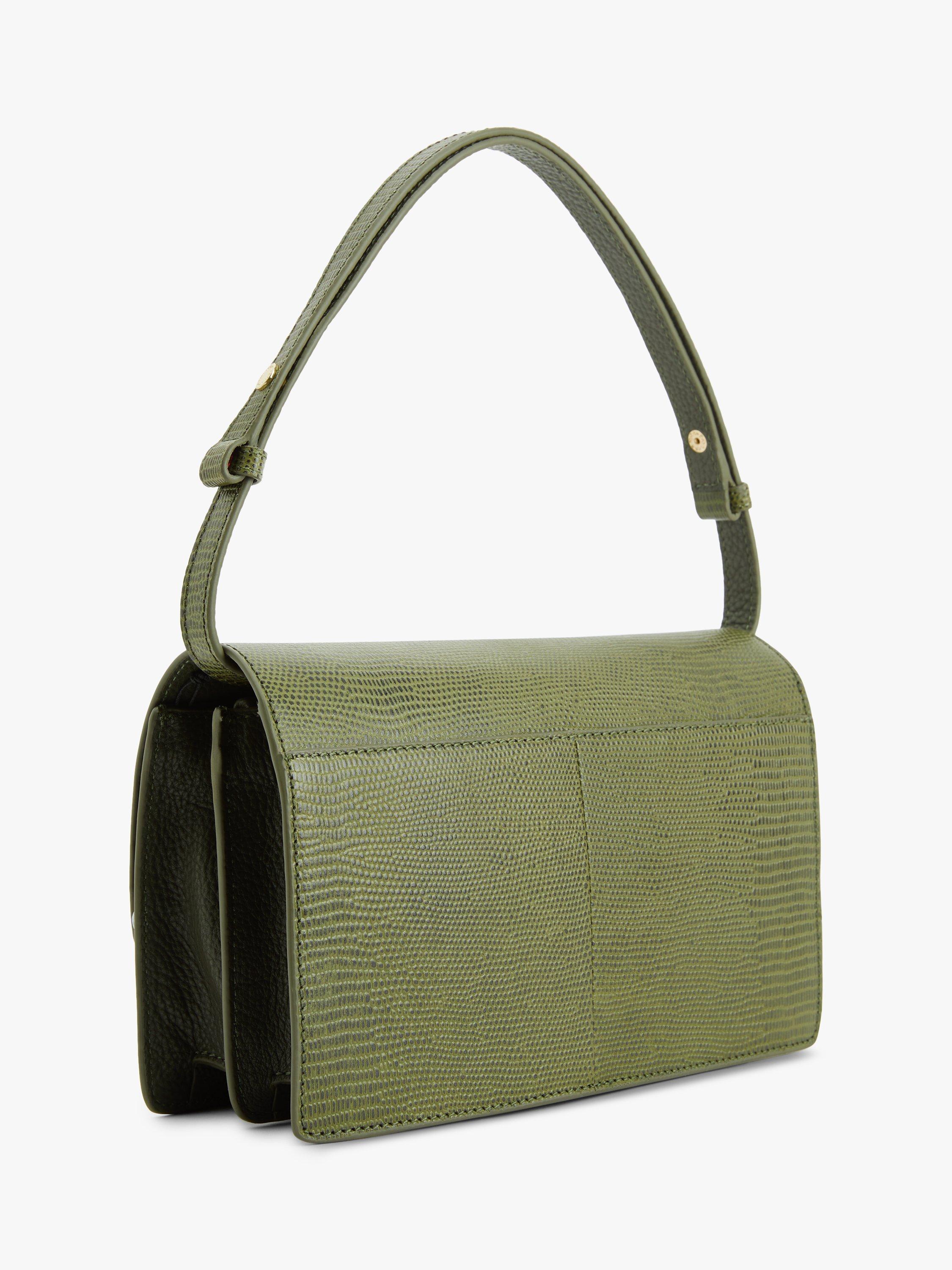 John LewisLeather Medium Flap Over Lock Shoulder Bag, Olive Lizard