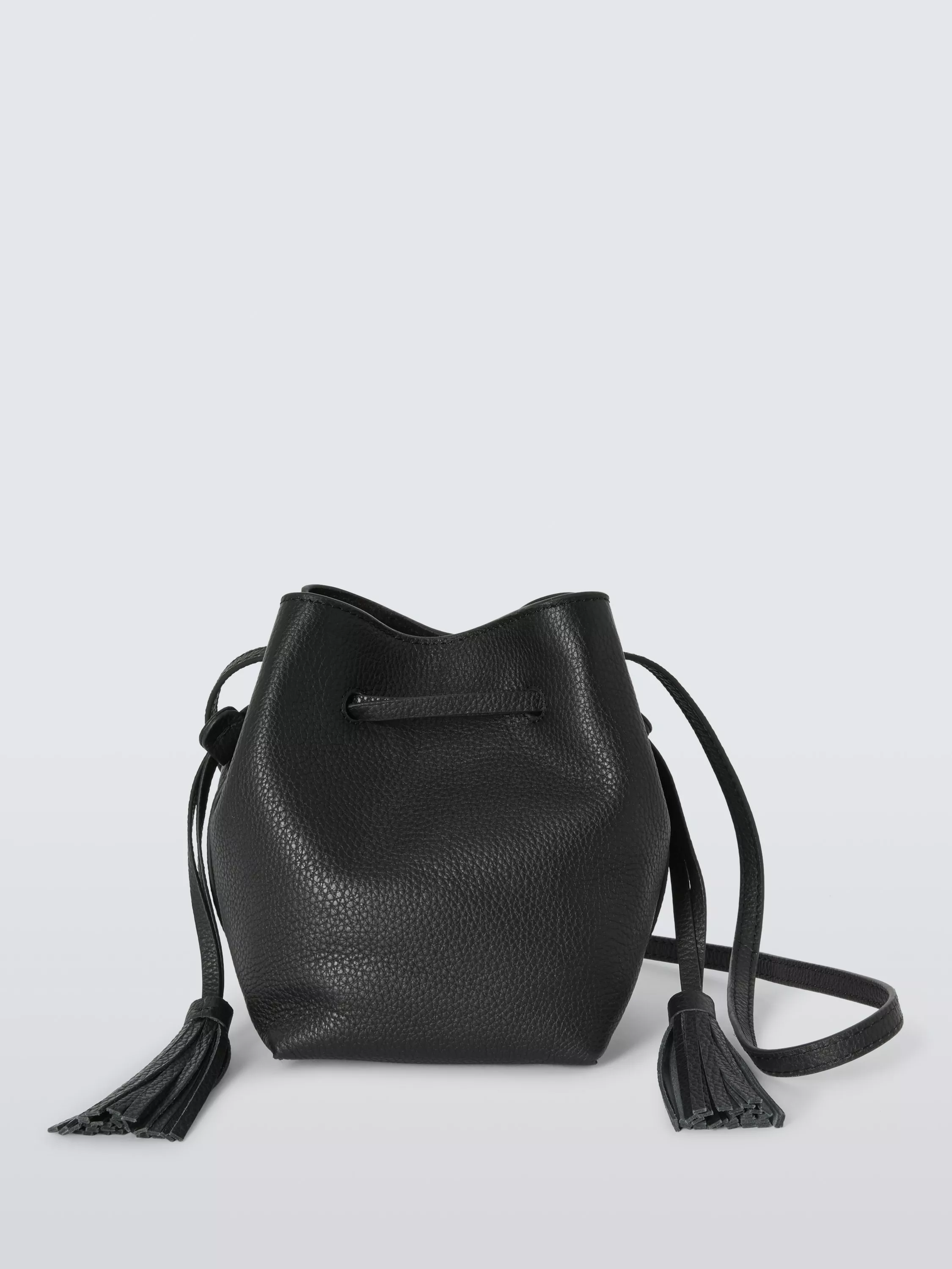 Made from leather with a drawstring fastening, the bag is completed with tassel detailing and a long strap for easy hands-free convenience.