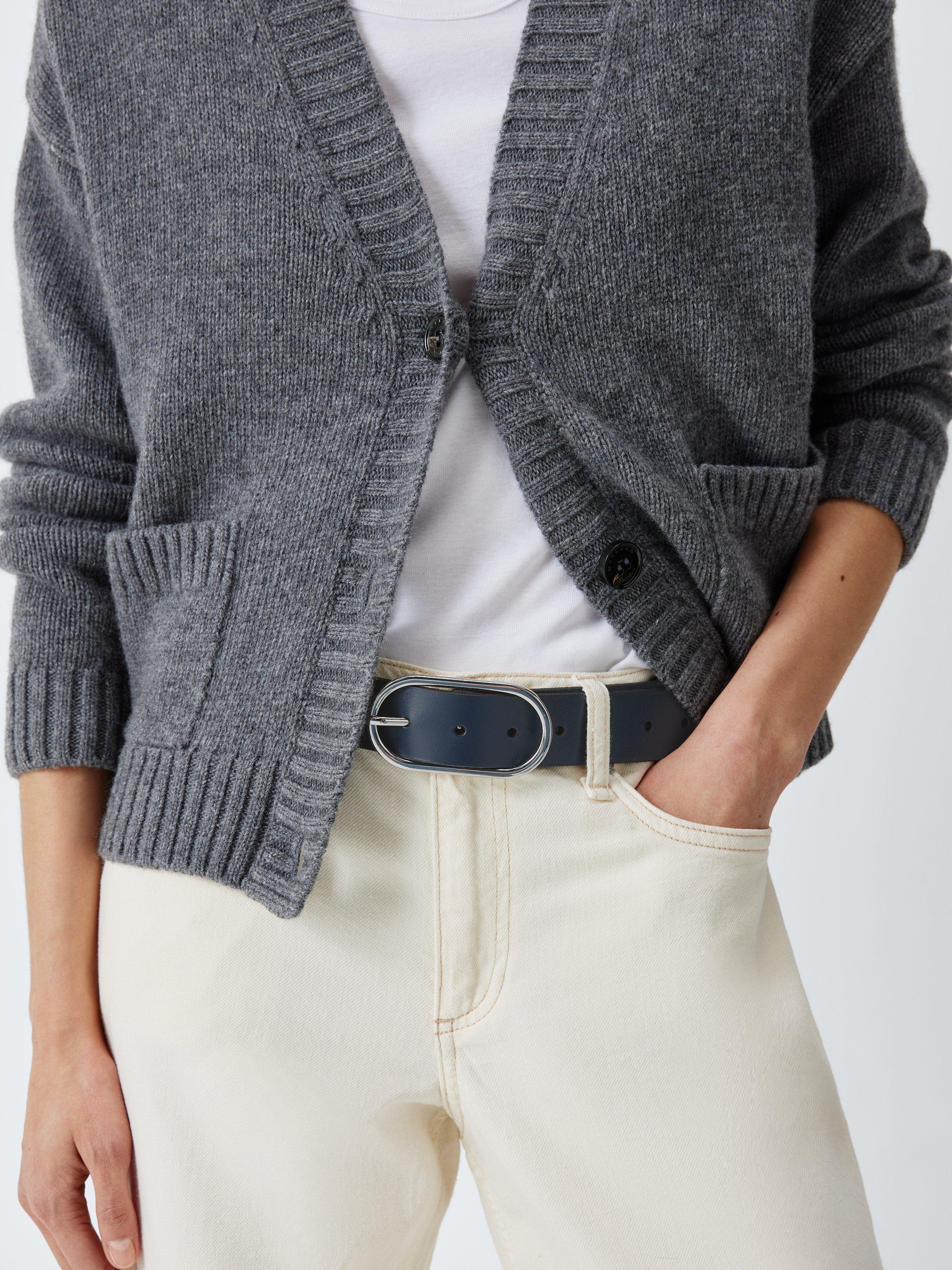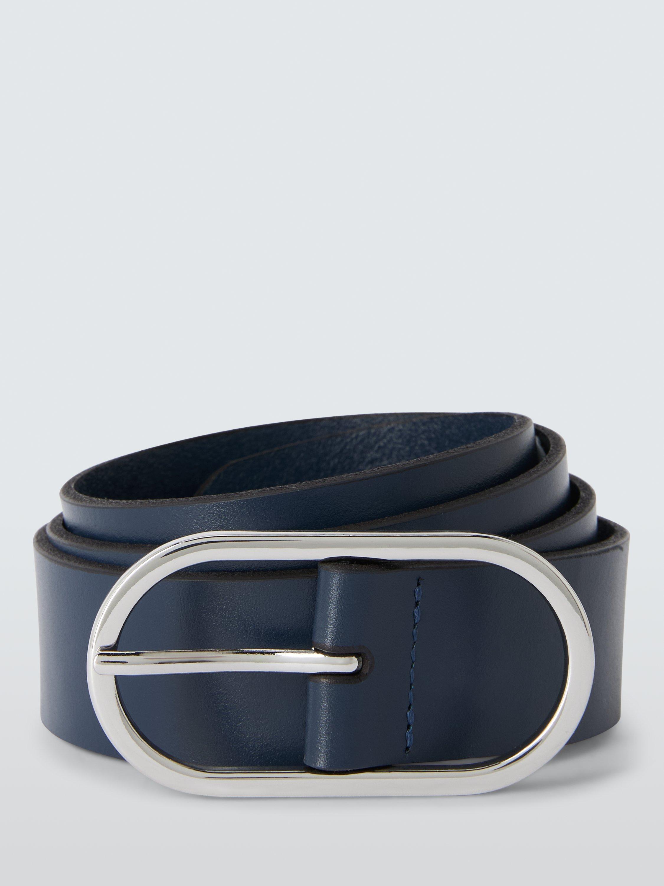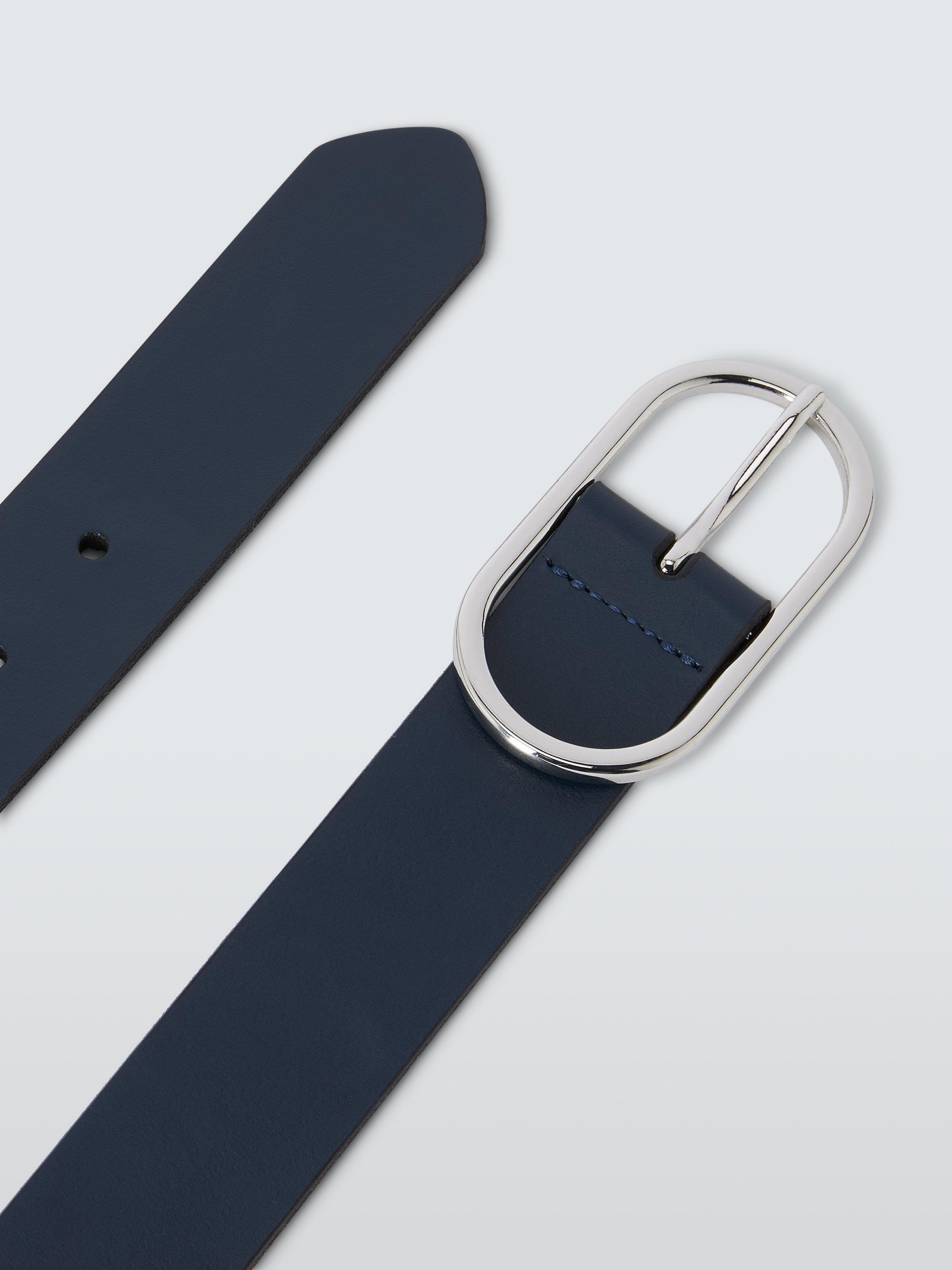 John LewisLeather Oval Buckle Belt, Navy/Silver