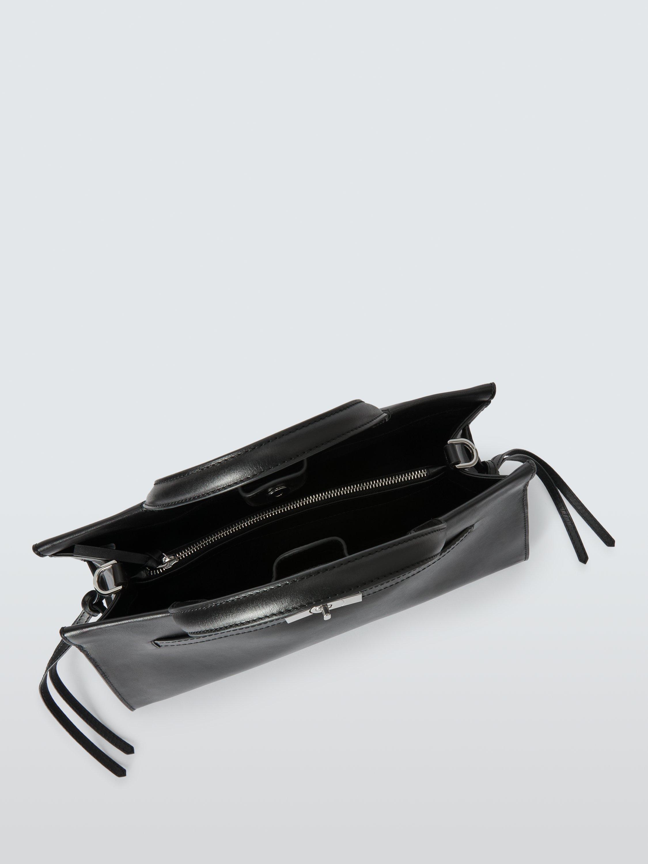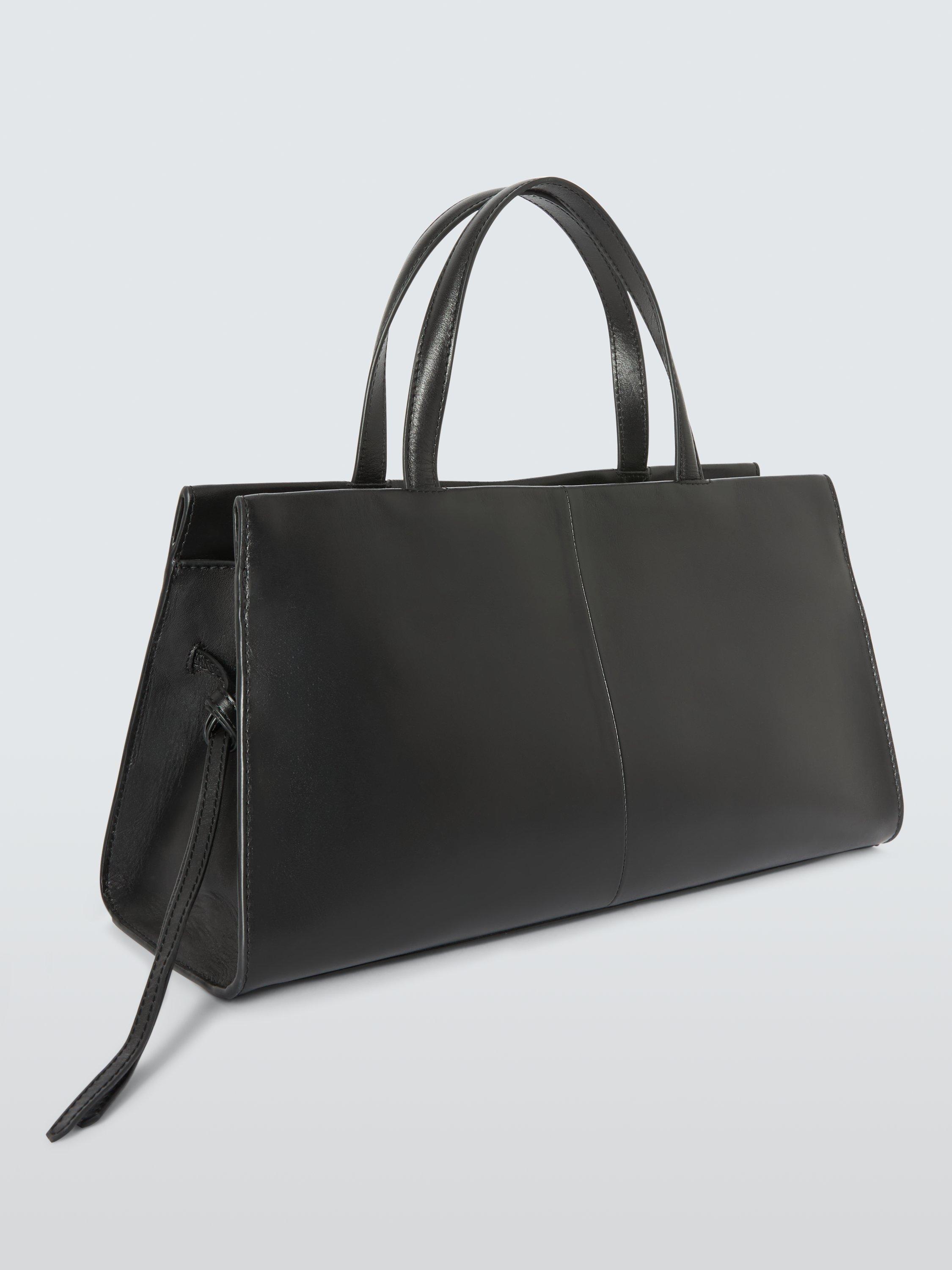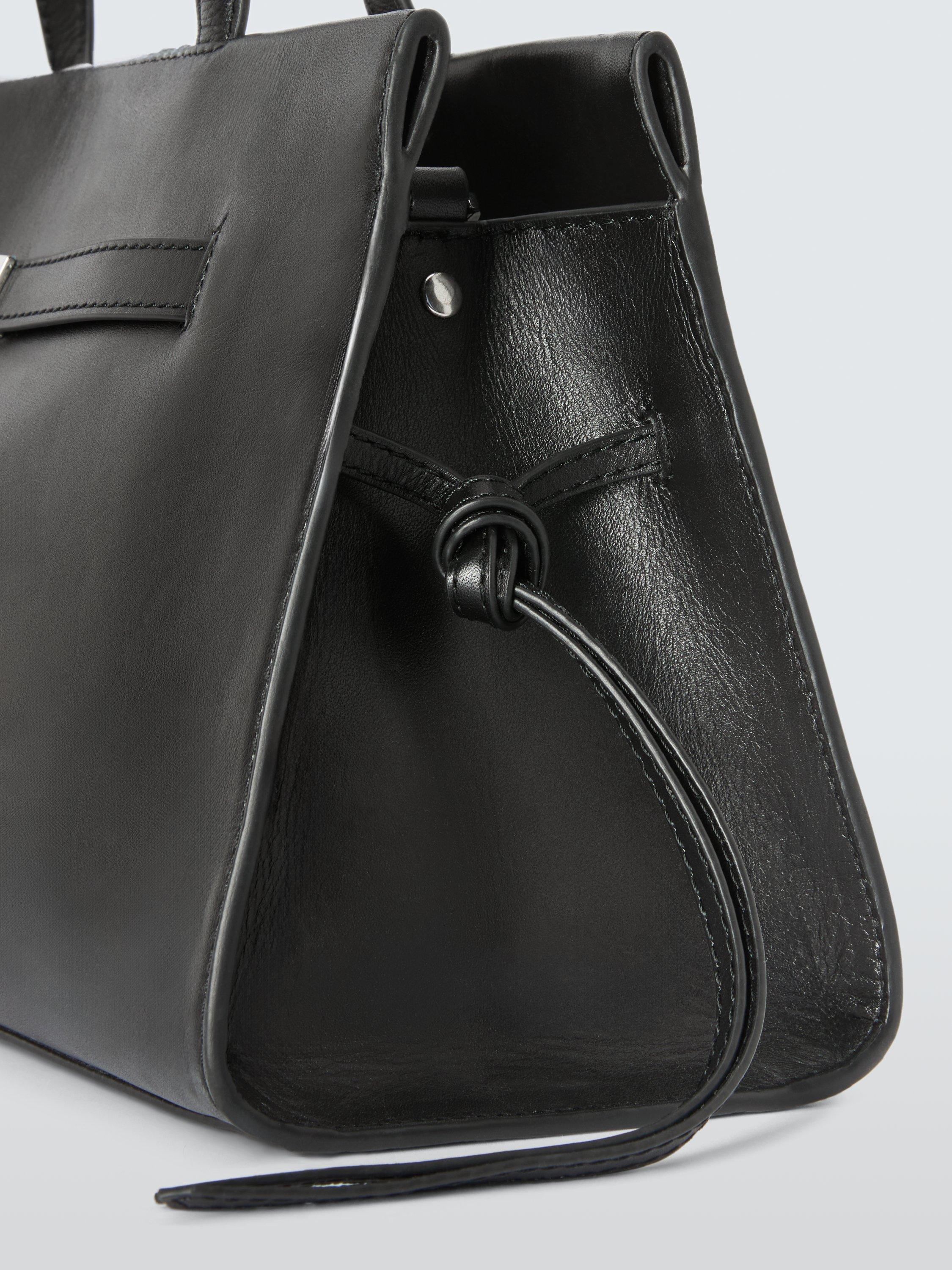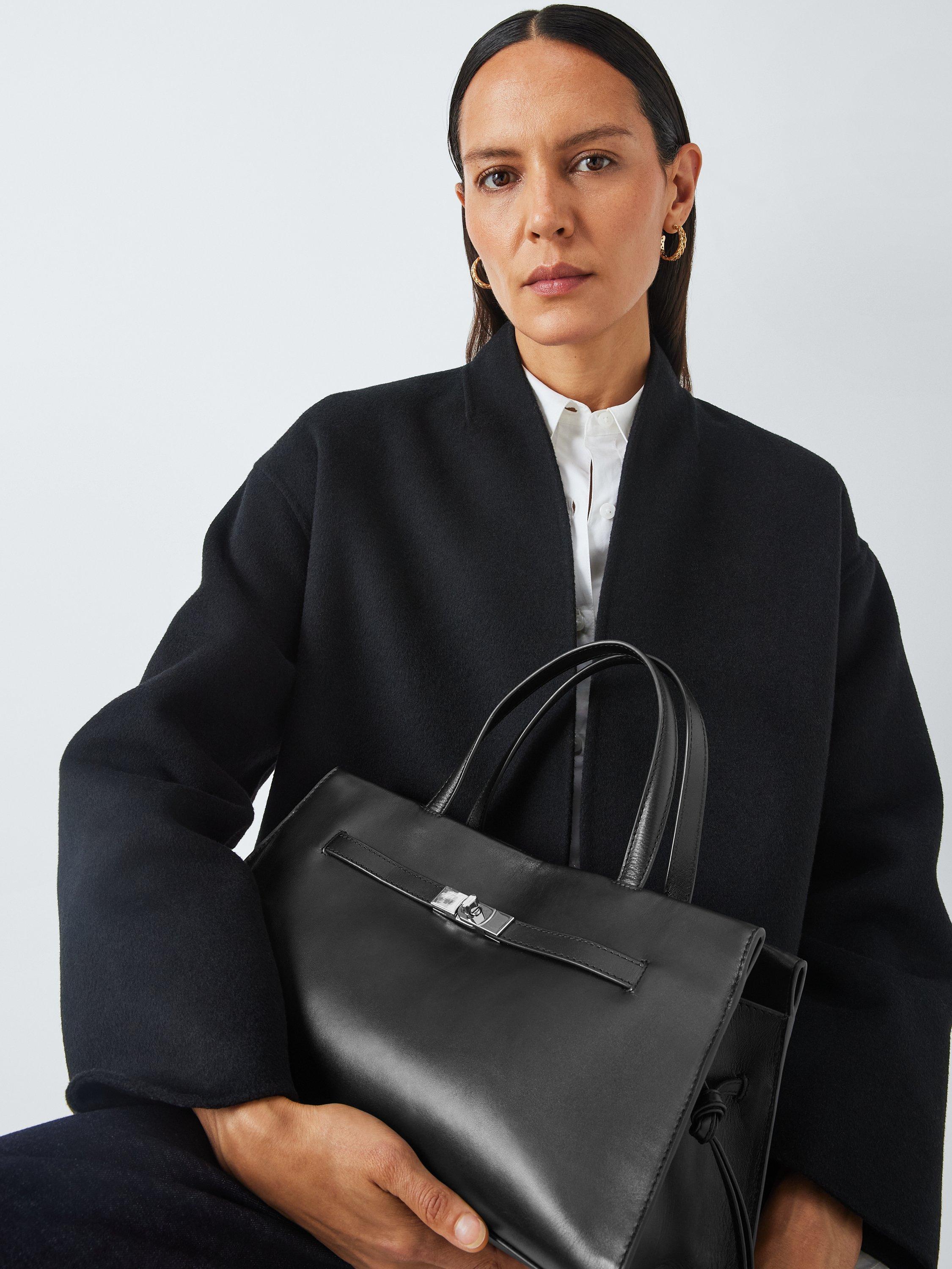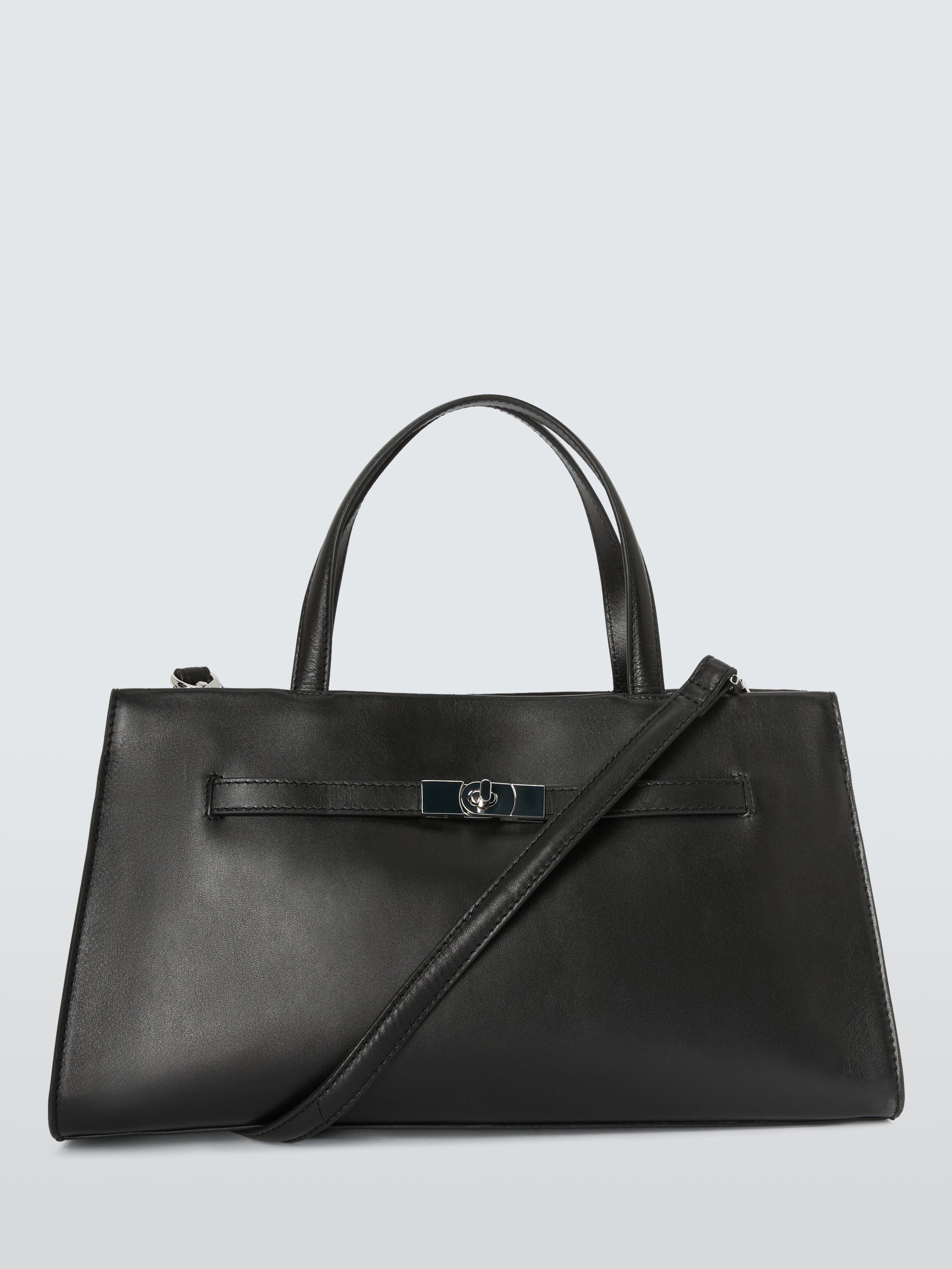 Leather grab bag with a turn-lock belt-style fastening.