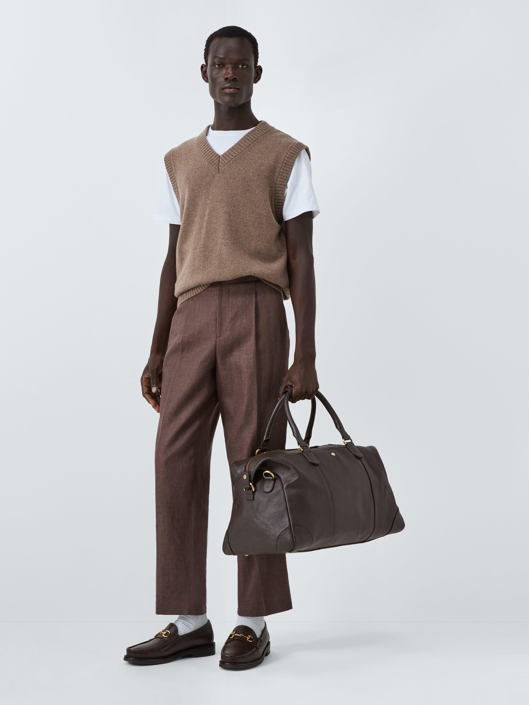 Perfect for weekends away and short trips, this holdall is made from leather with reinforced corners. Featuring comfortable handles, spacious pockets to keep your items separated and organised and a trolley sleeve to slot onto your luggage.