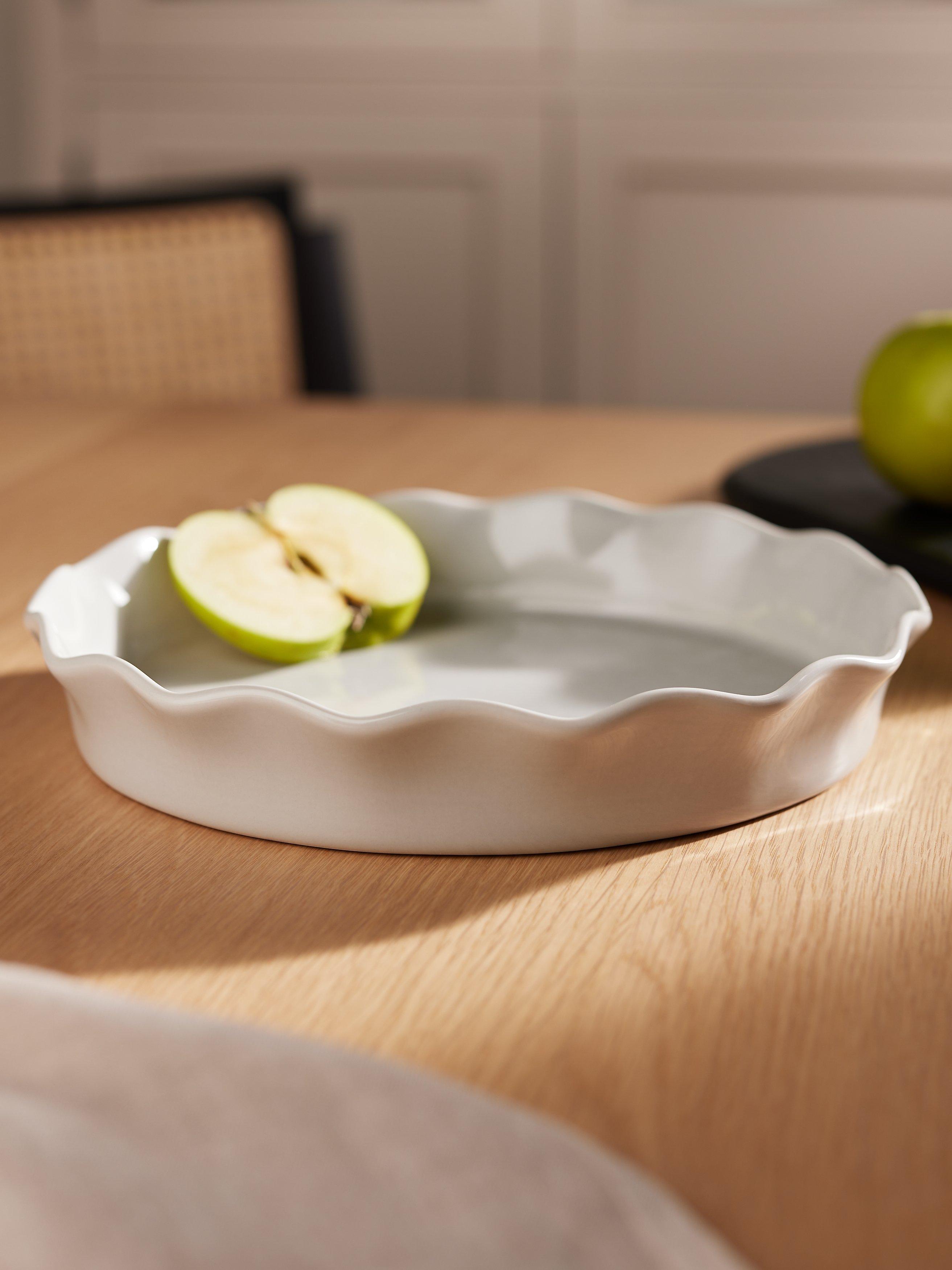 Our Leckford Farm round pie dish has a fluted design. It's part of our Leckford Farm range, named after the Leckford Estate in Hampshire, farmed by the John Lewis Partnership for over 90 years.