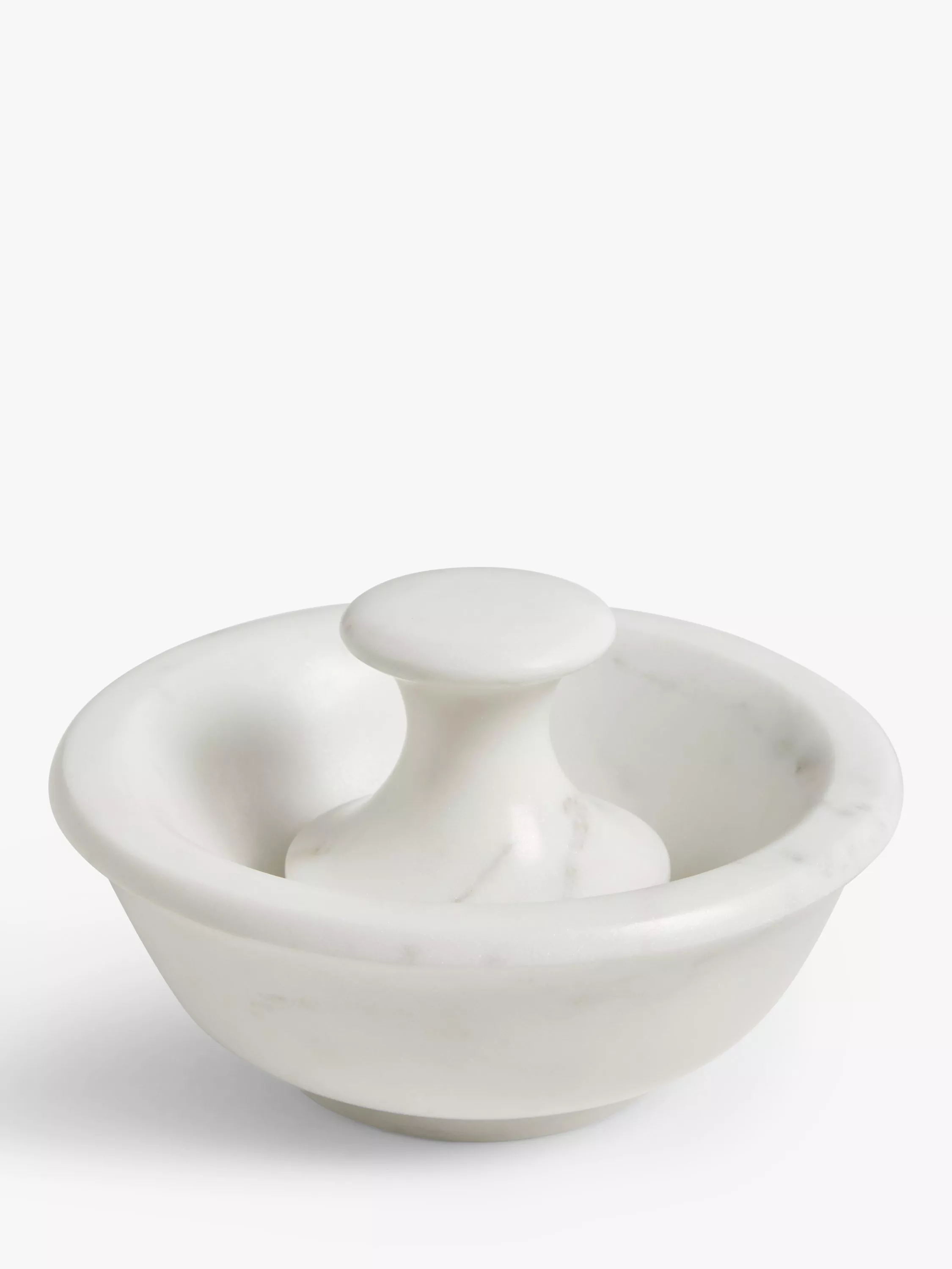 Our Leckford pestle and mortar is ideal for crushing and grinding herbs and spices to make homemade dressings, pesto and pastes for curries and more. Made of white marble, it's a natural product that's elegant, durable and low maintenance.