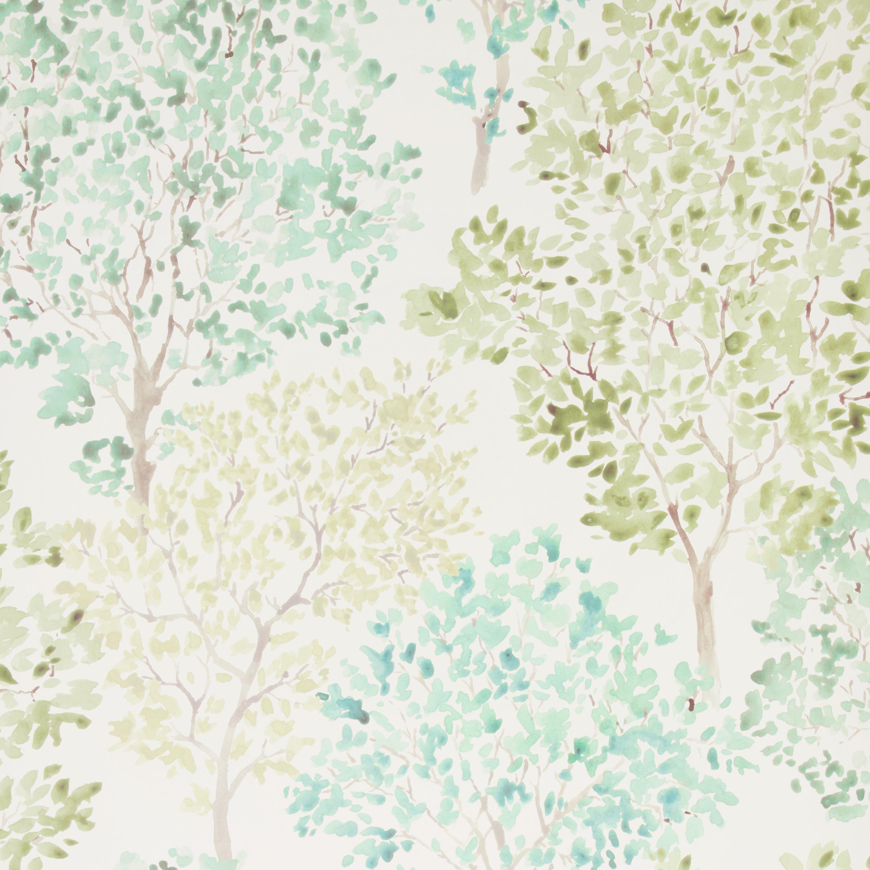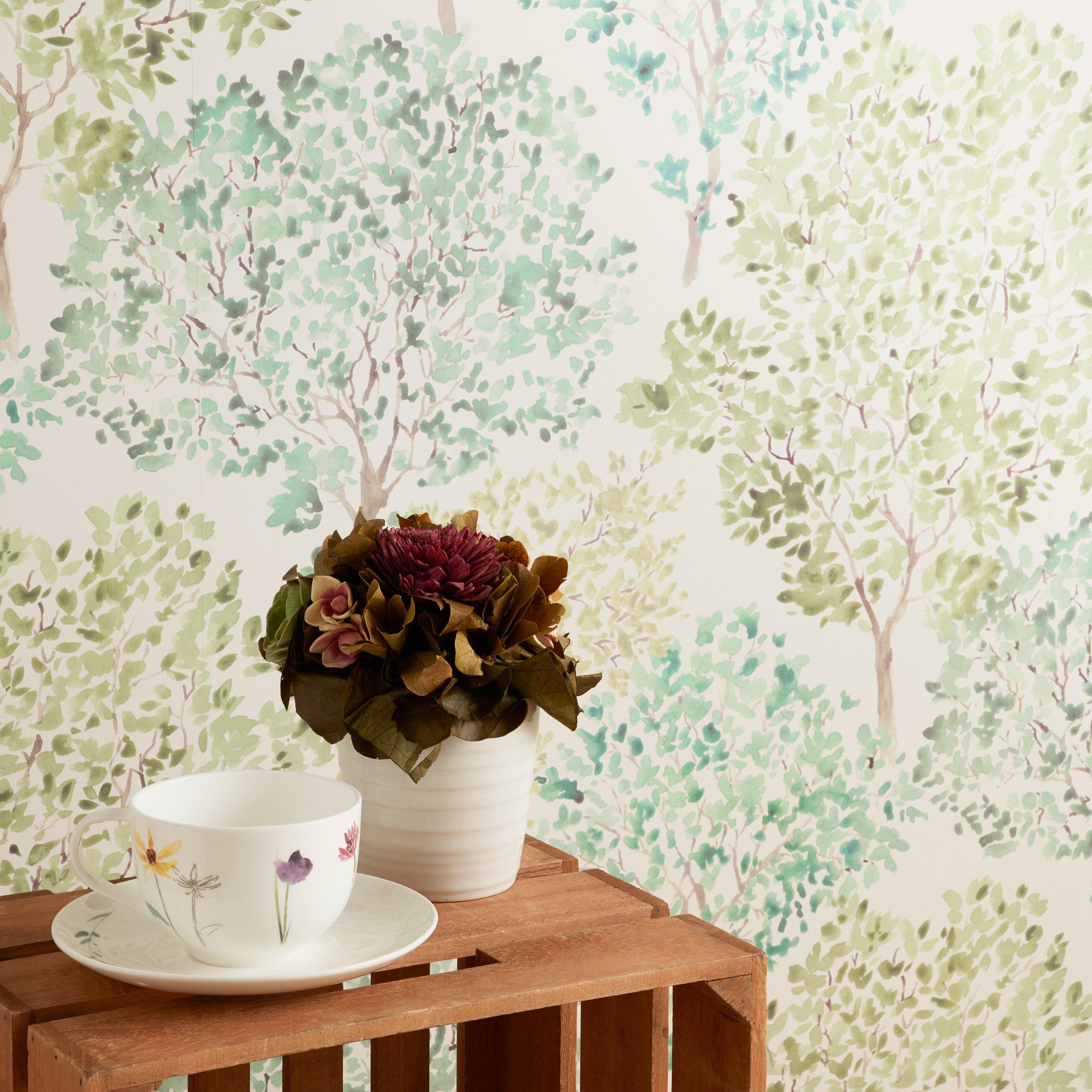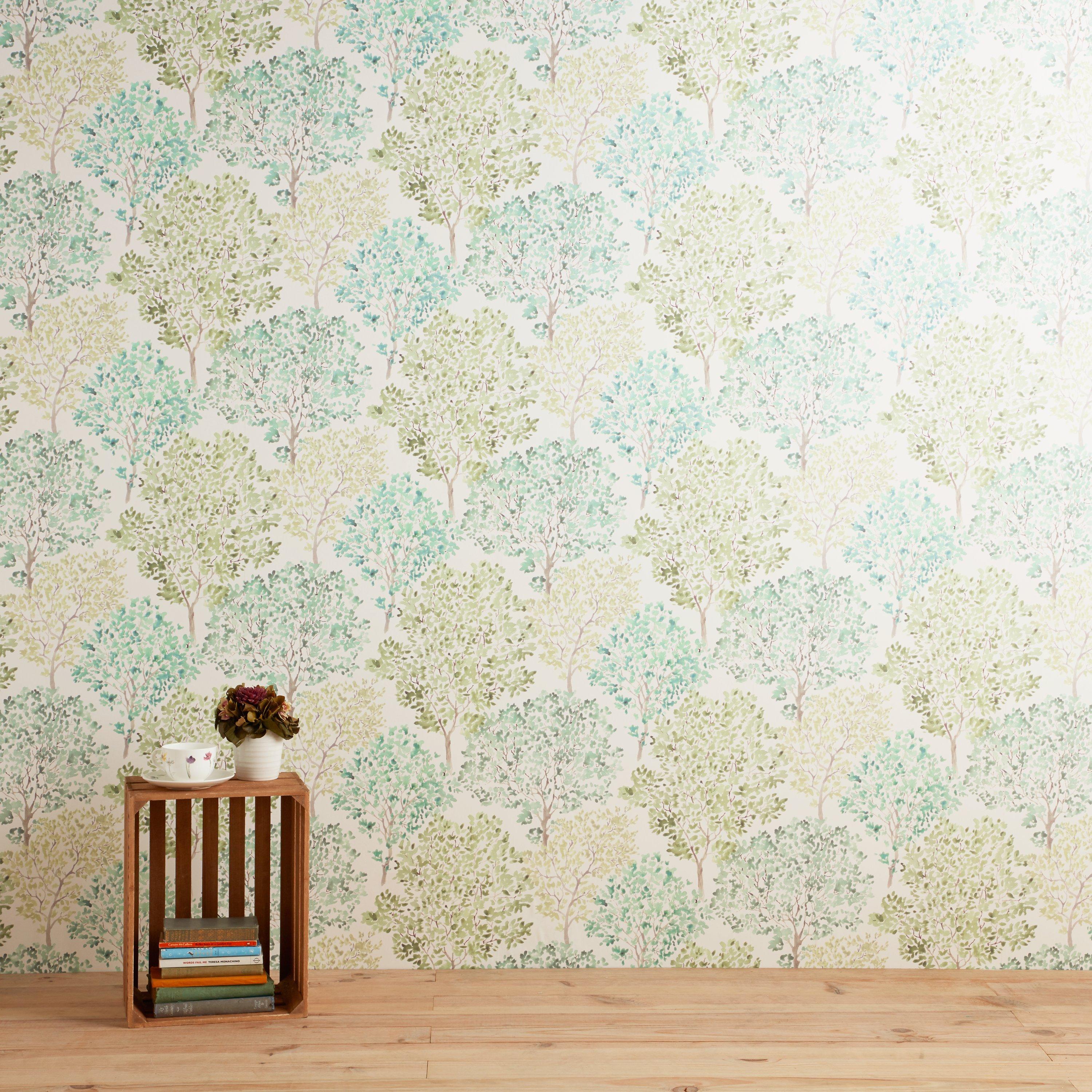 Spongeable wallpaper printed with a whole forest of leafy green trees.