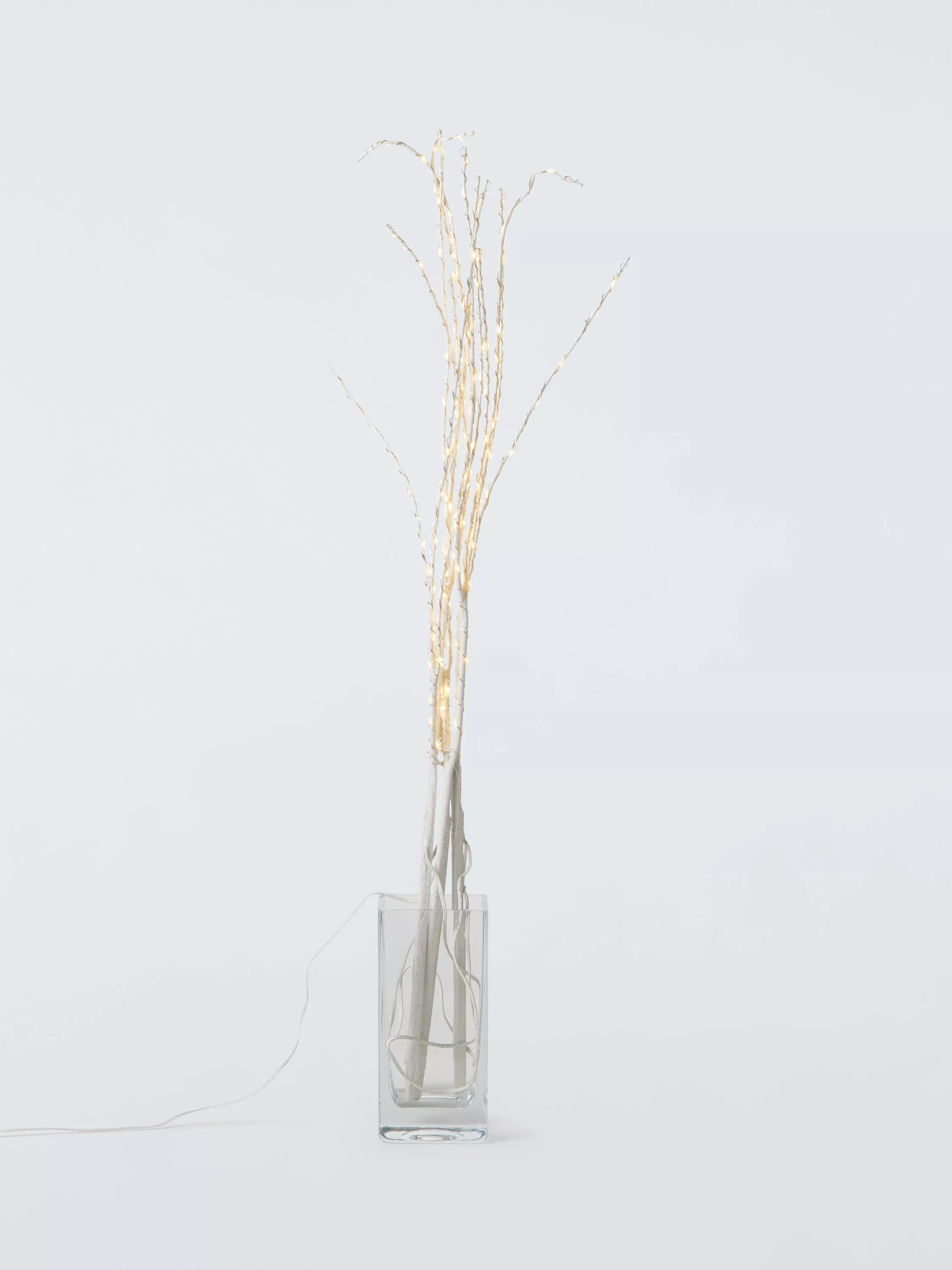 Realistic twig bundles lit with 105 warm white LEDs. Standing 86cm high, the base is narrow enough to be placed into a tall floor vase to make a beautiful showpiece in a living room or hall.