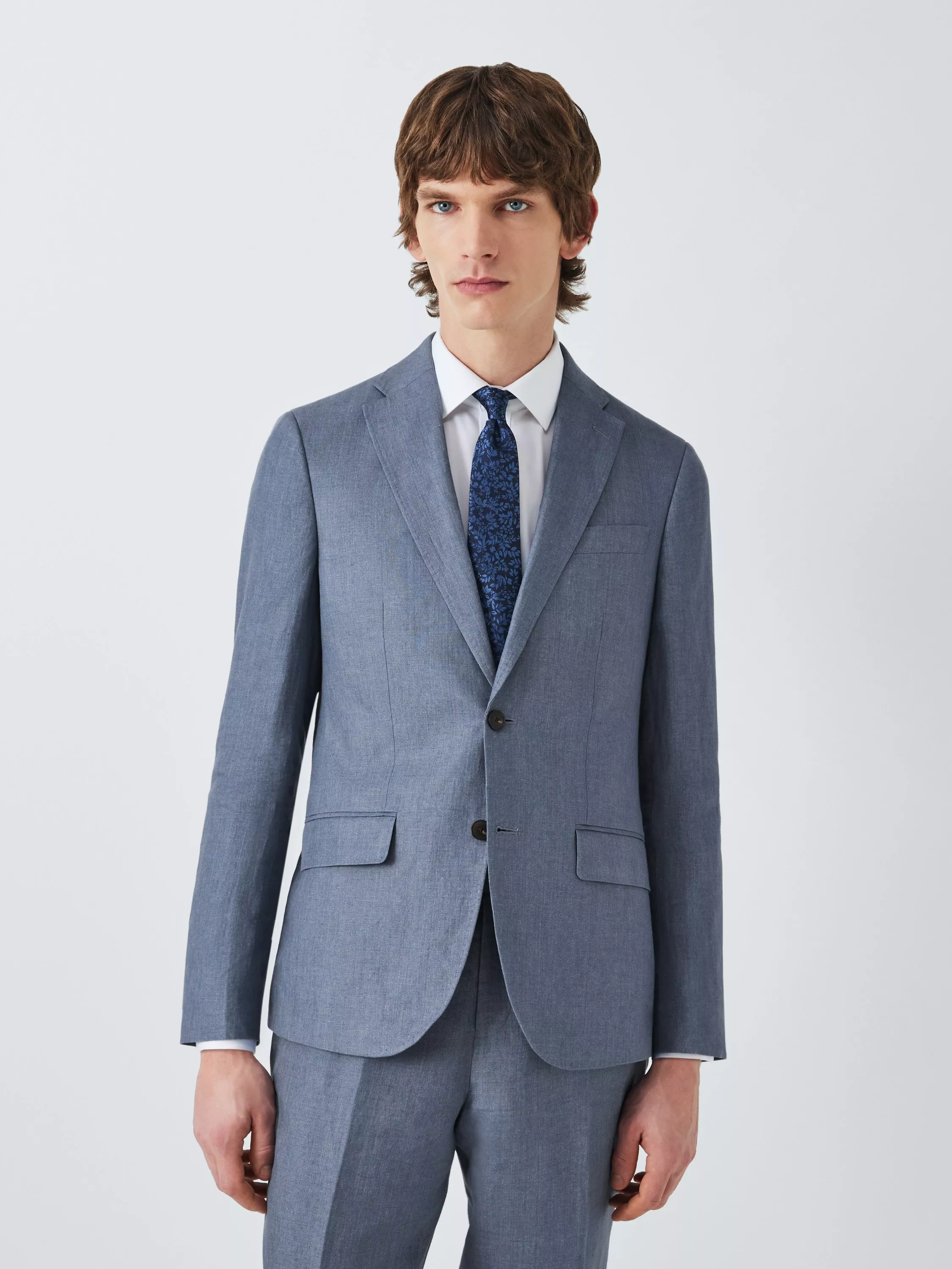 Single-breasted suit jacket made of lightweight, summer-friendly linen, tailored to our regular fit specification. Styled with a notch lapel, flap pockets at the hip, a welt pocket at the chest and three internal pockets. Team with the matching Lenham suit trousers.