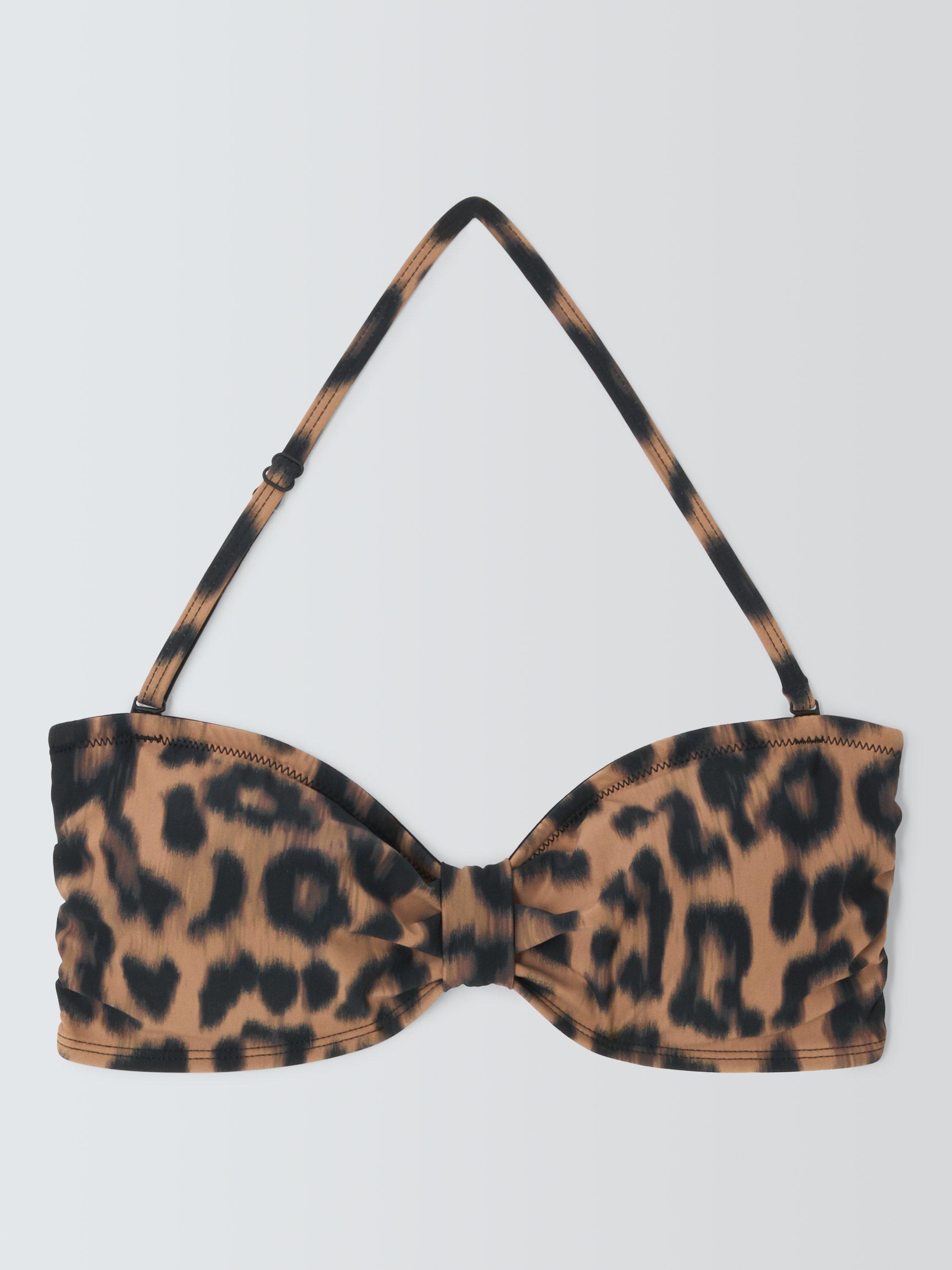 Bandeau bikini top in perennial leopard print, with a detachable thin halter strap.