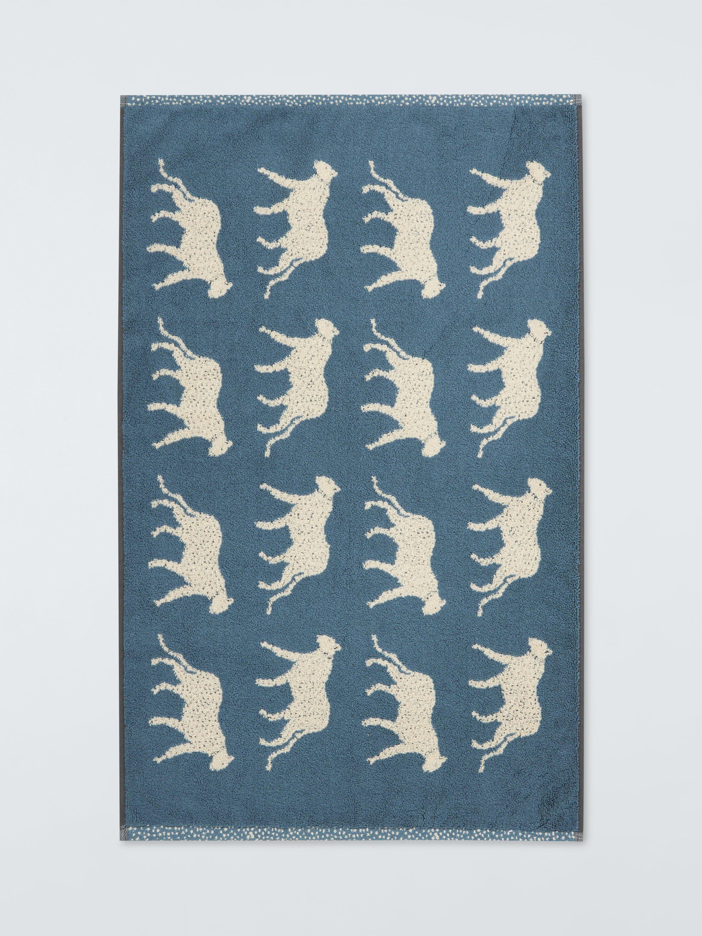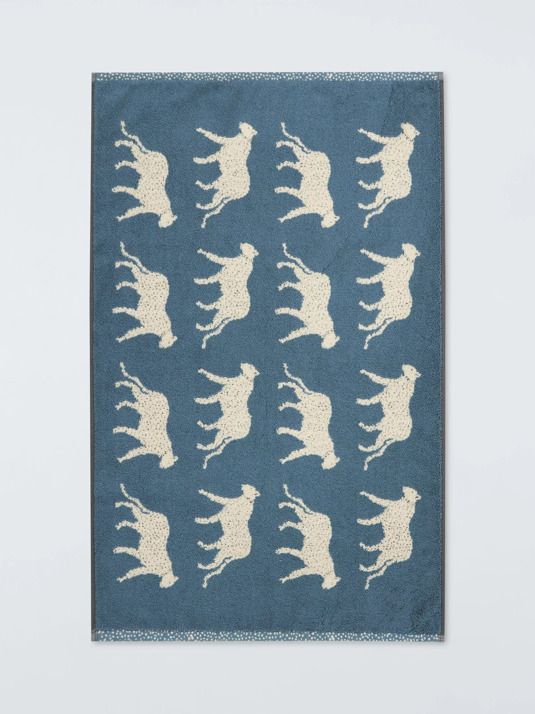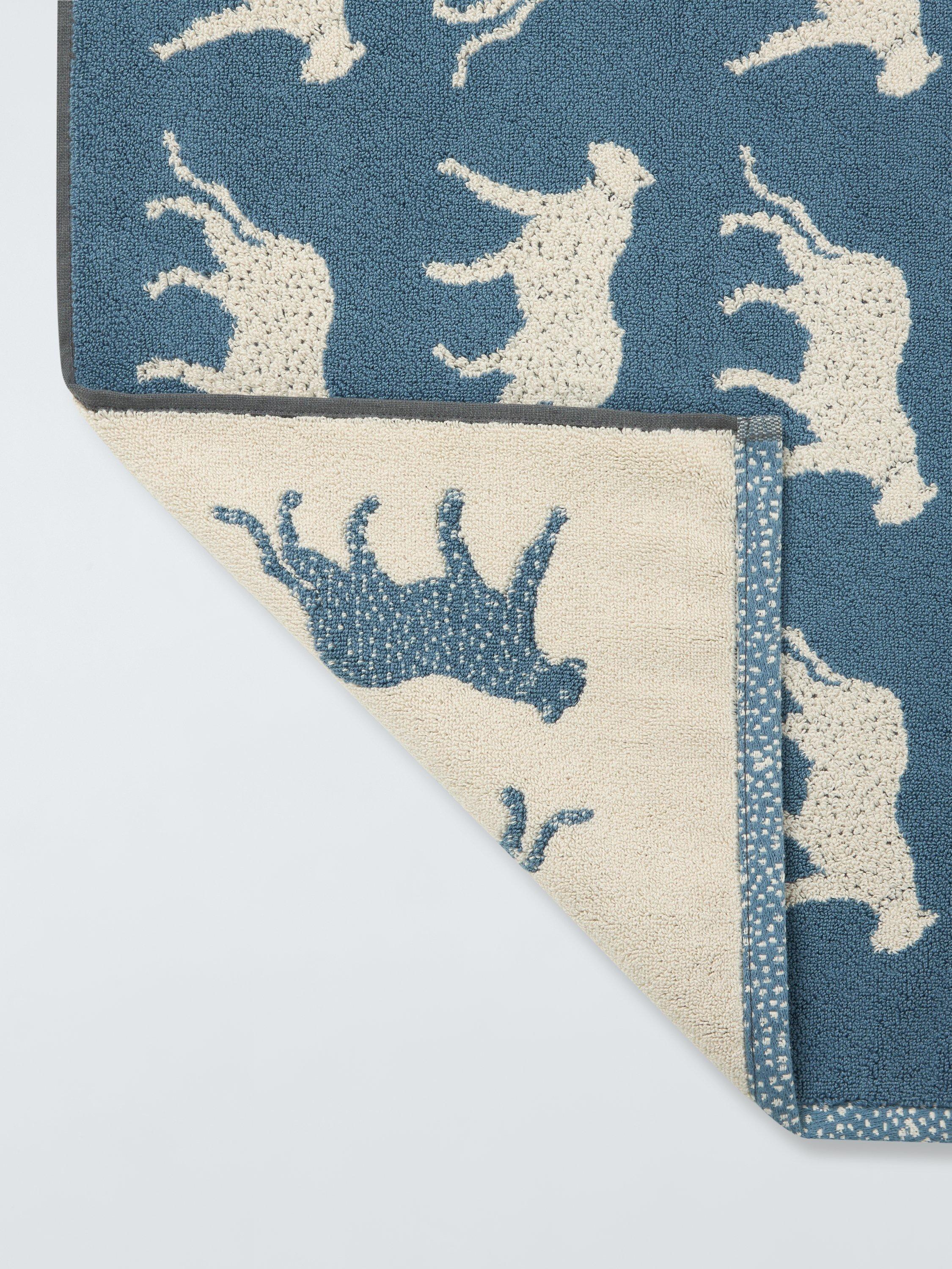 Leopards prowl across this reversible cotton bath mat.
