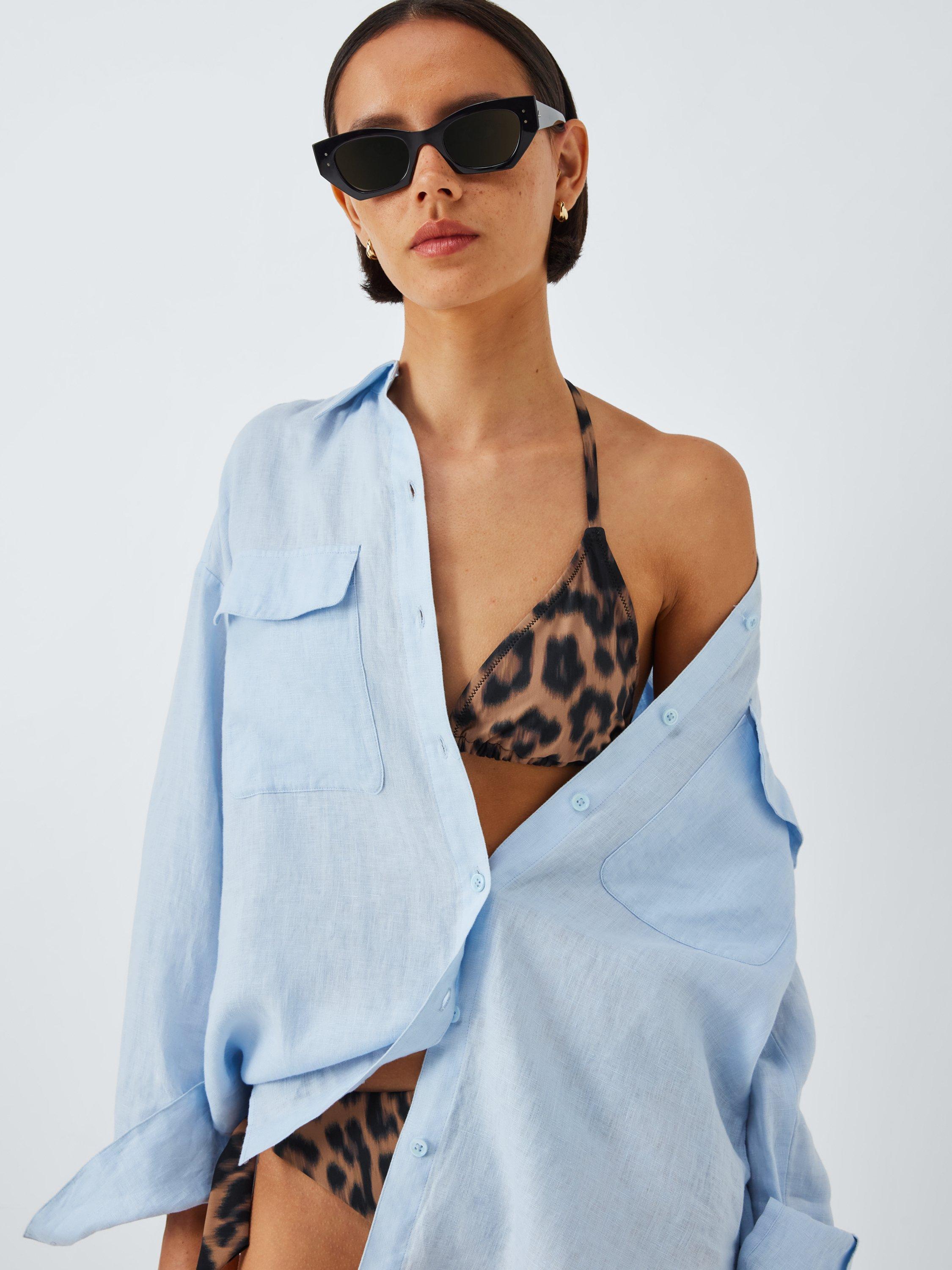 This triangle print bikini top in a beautiful bold leopard print is perfect for summer. With halterneck and back tie straps.