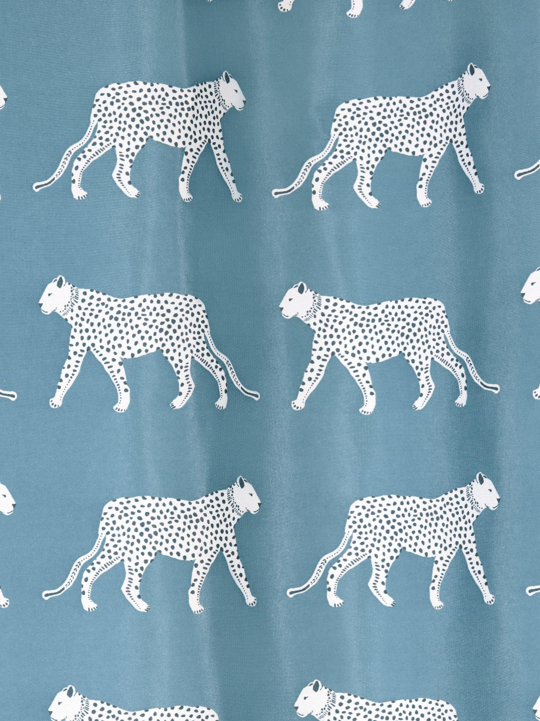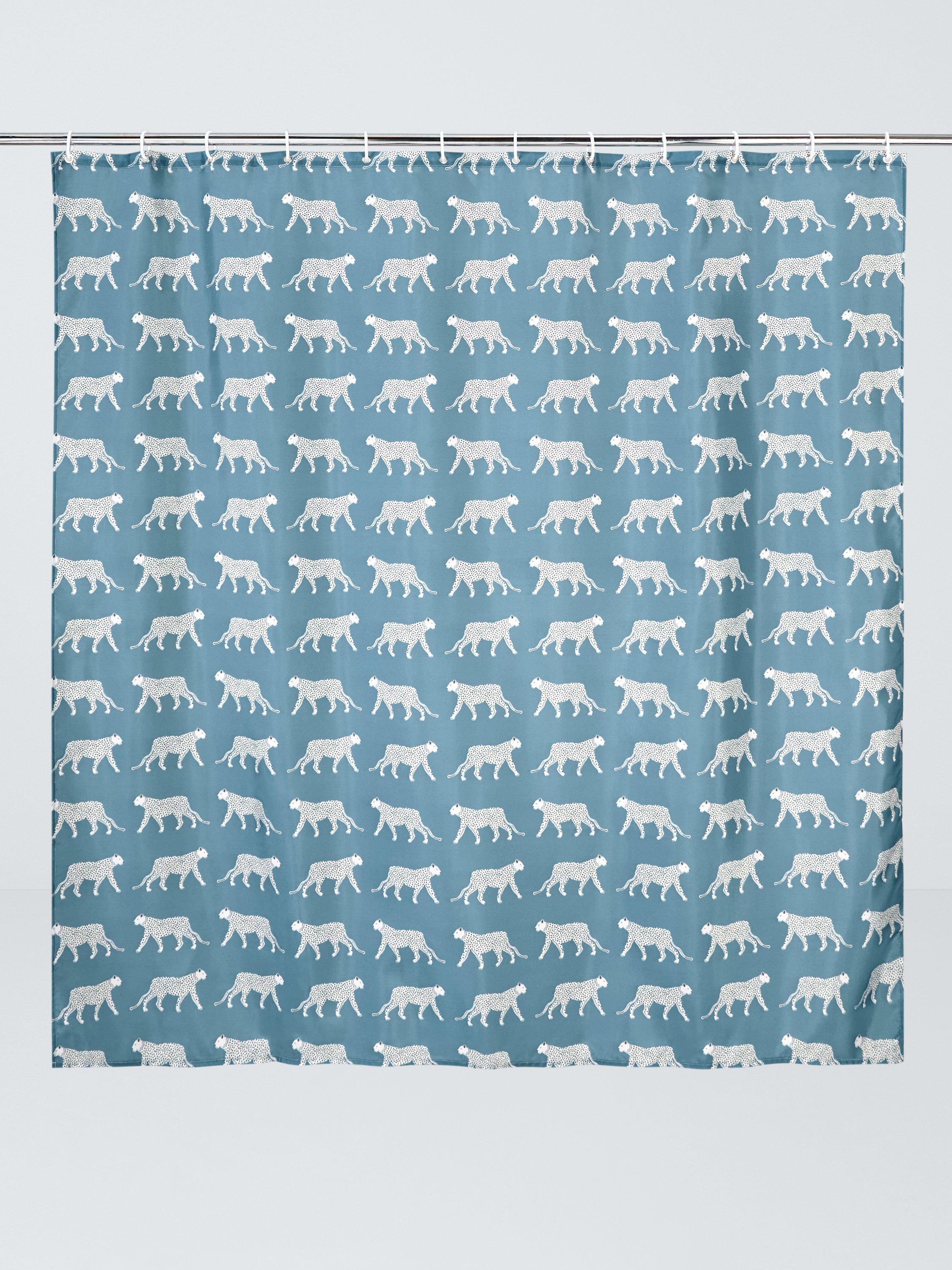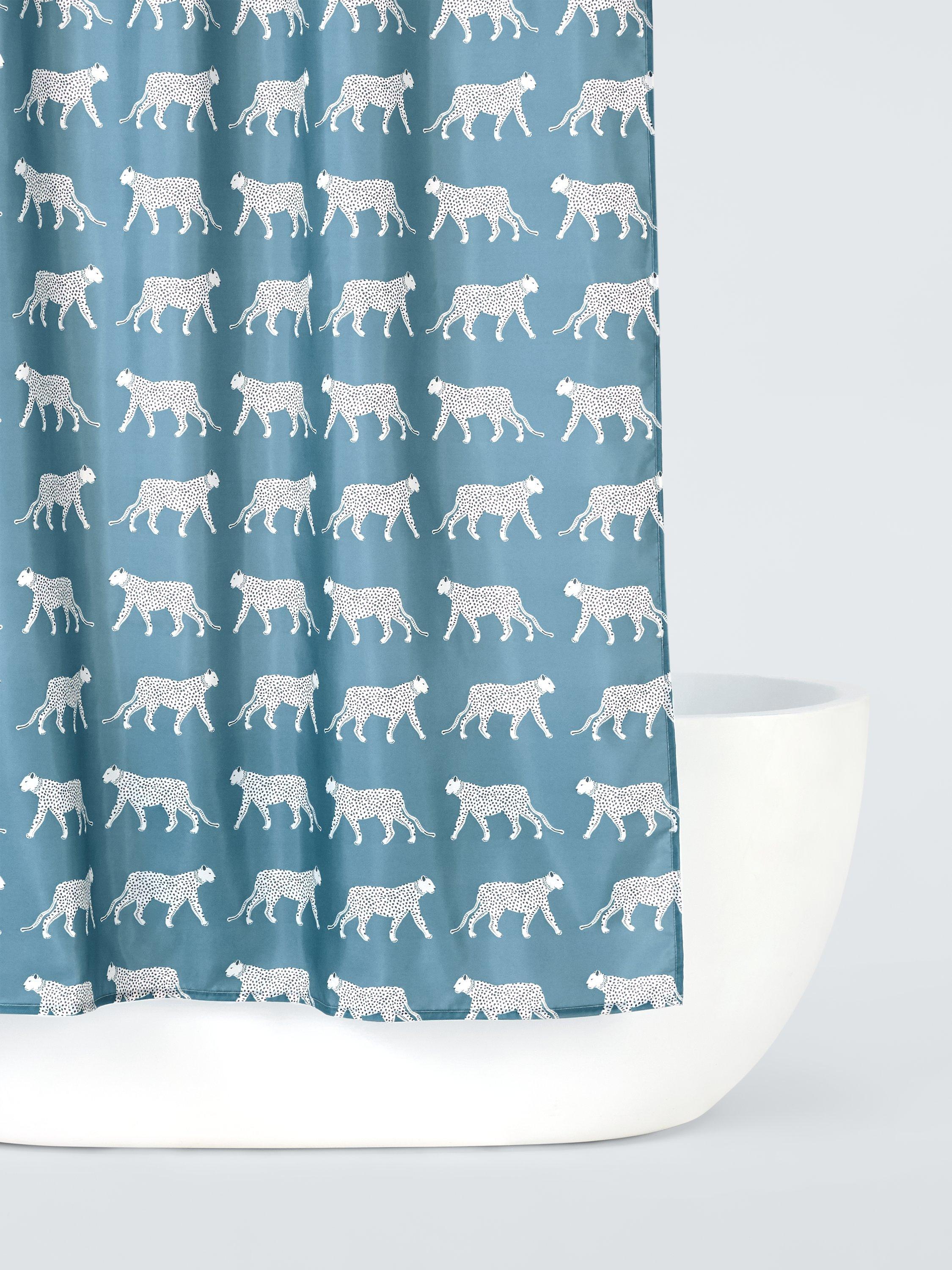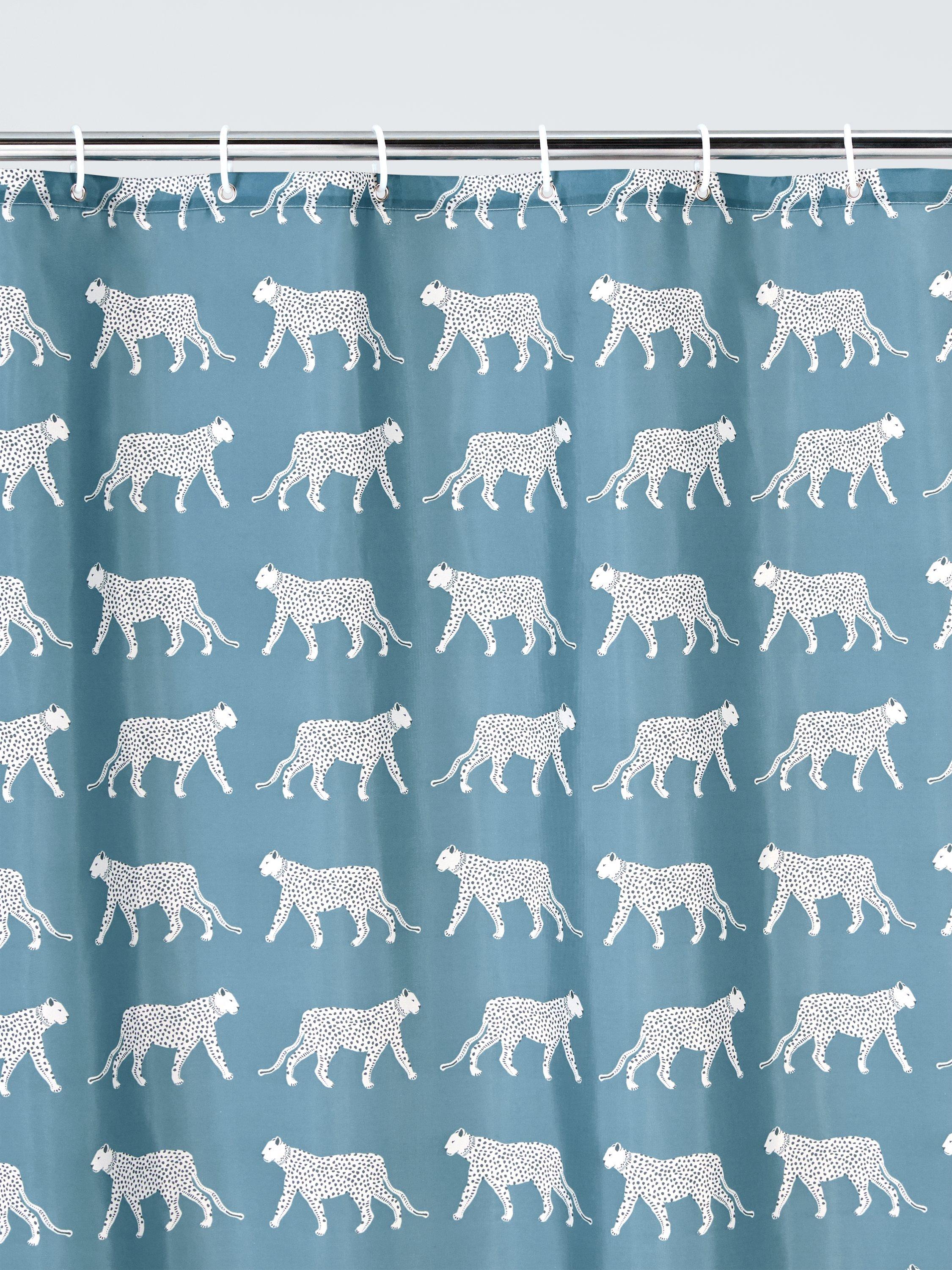 Decorated with proudly prowling leopards, this shower curtain is made from recycled polyester.