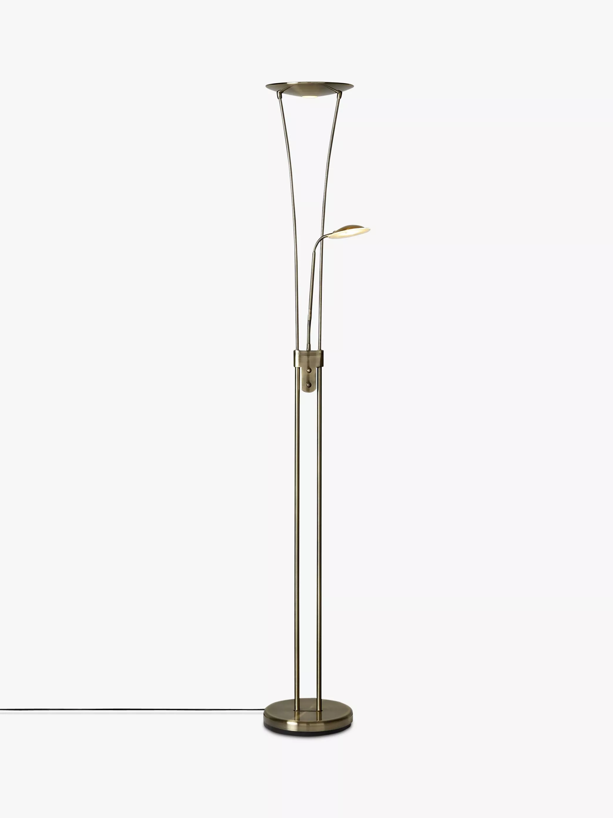 Add a touch of contemporary style to your home with this energy efficient floor lamp. Crafted with a satin nickel finish, this floor lamp features uplighter detailing and a reading lamp.