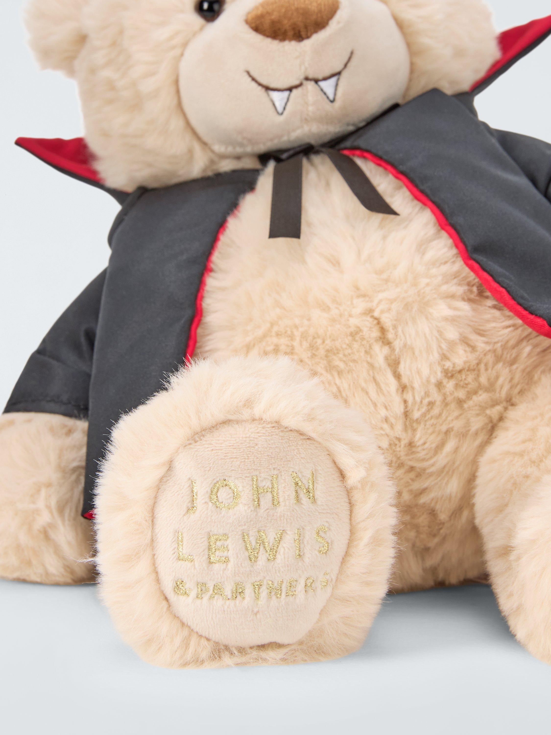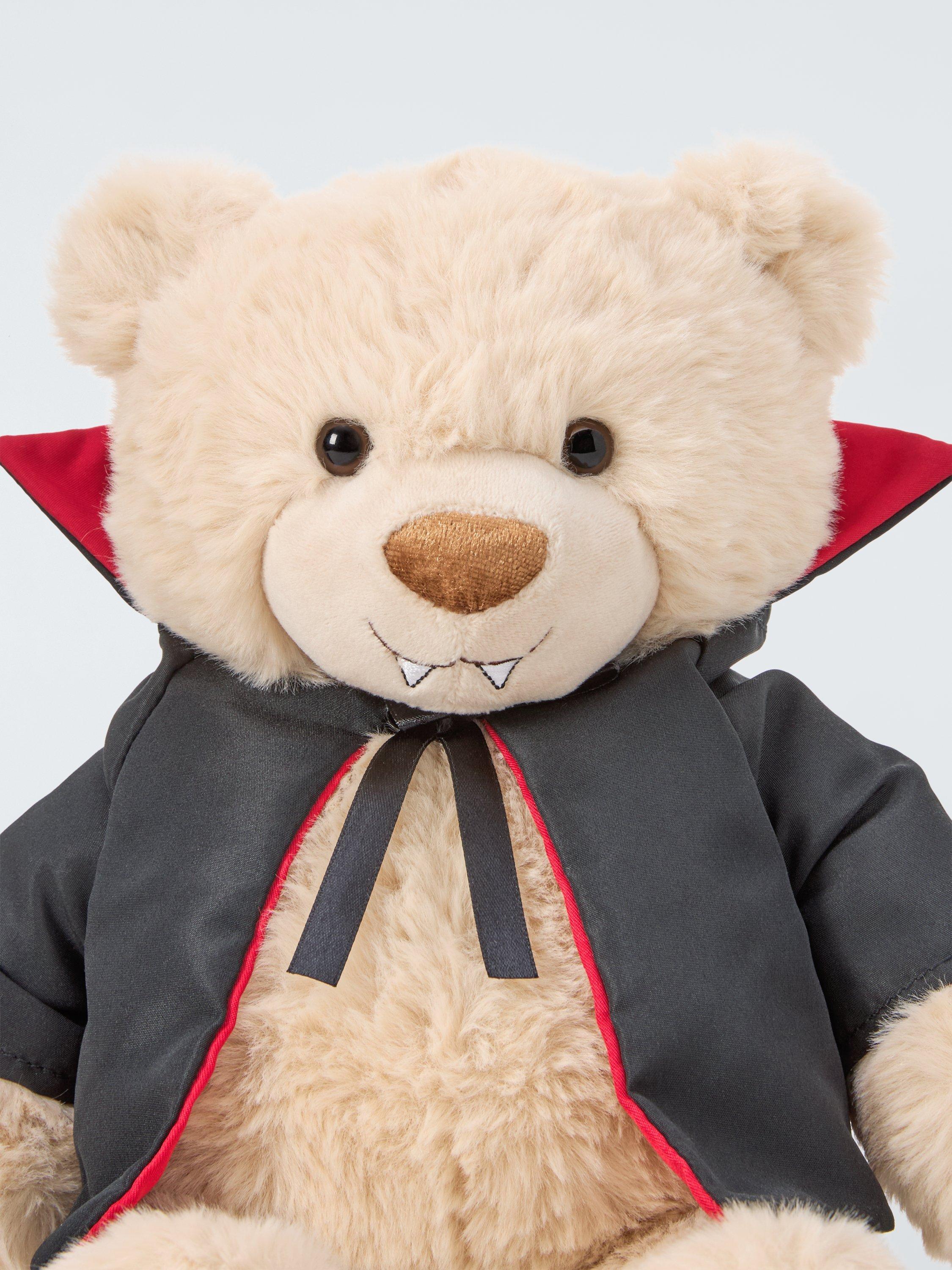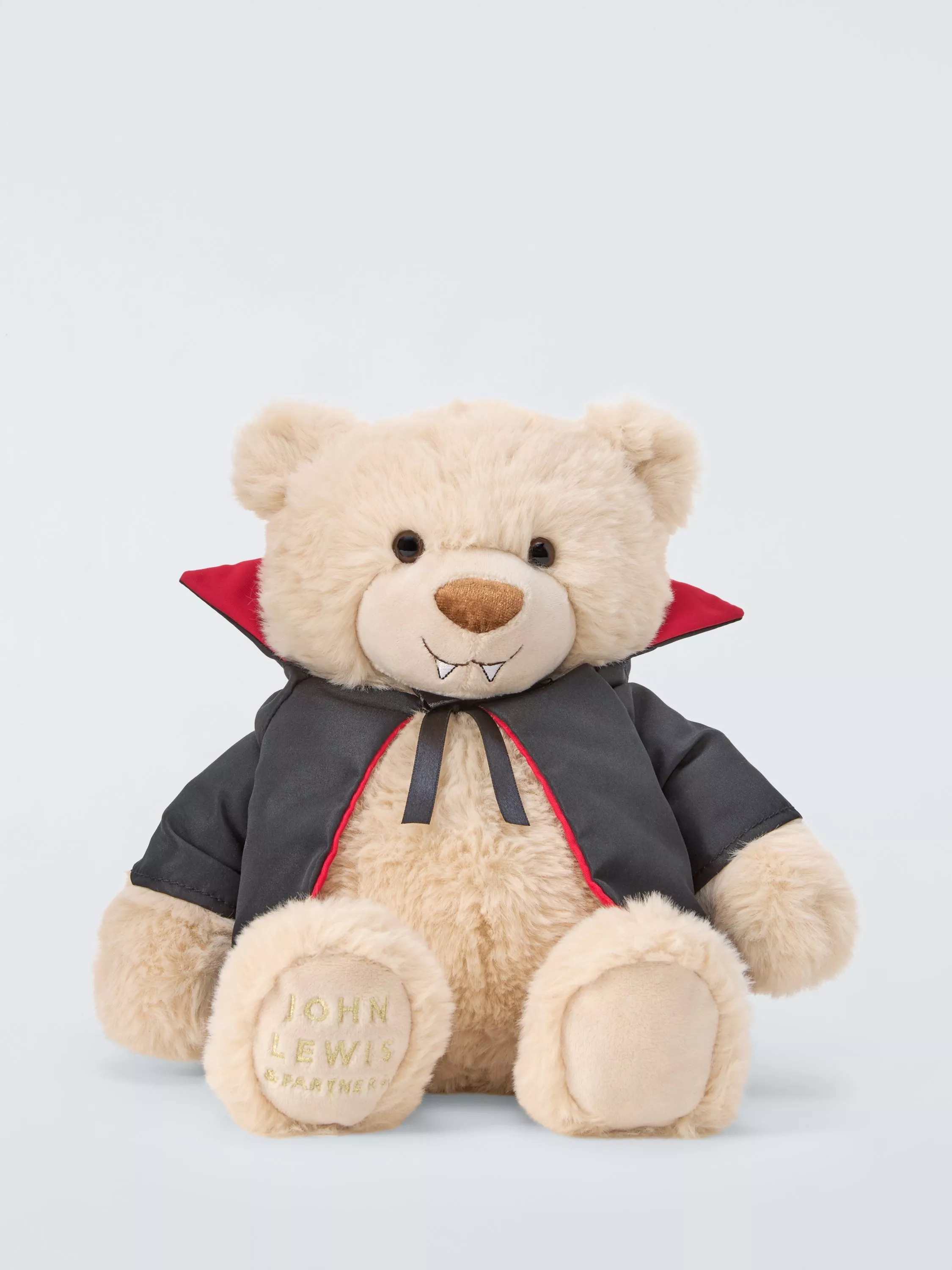 Lewis Bear is dressed up for trick or treating in his vampire cape. Complete with pointy teeth, he's the perfect cuddly companion for the spooky season.