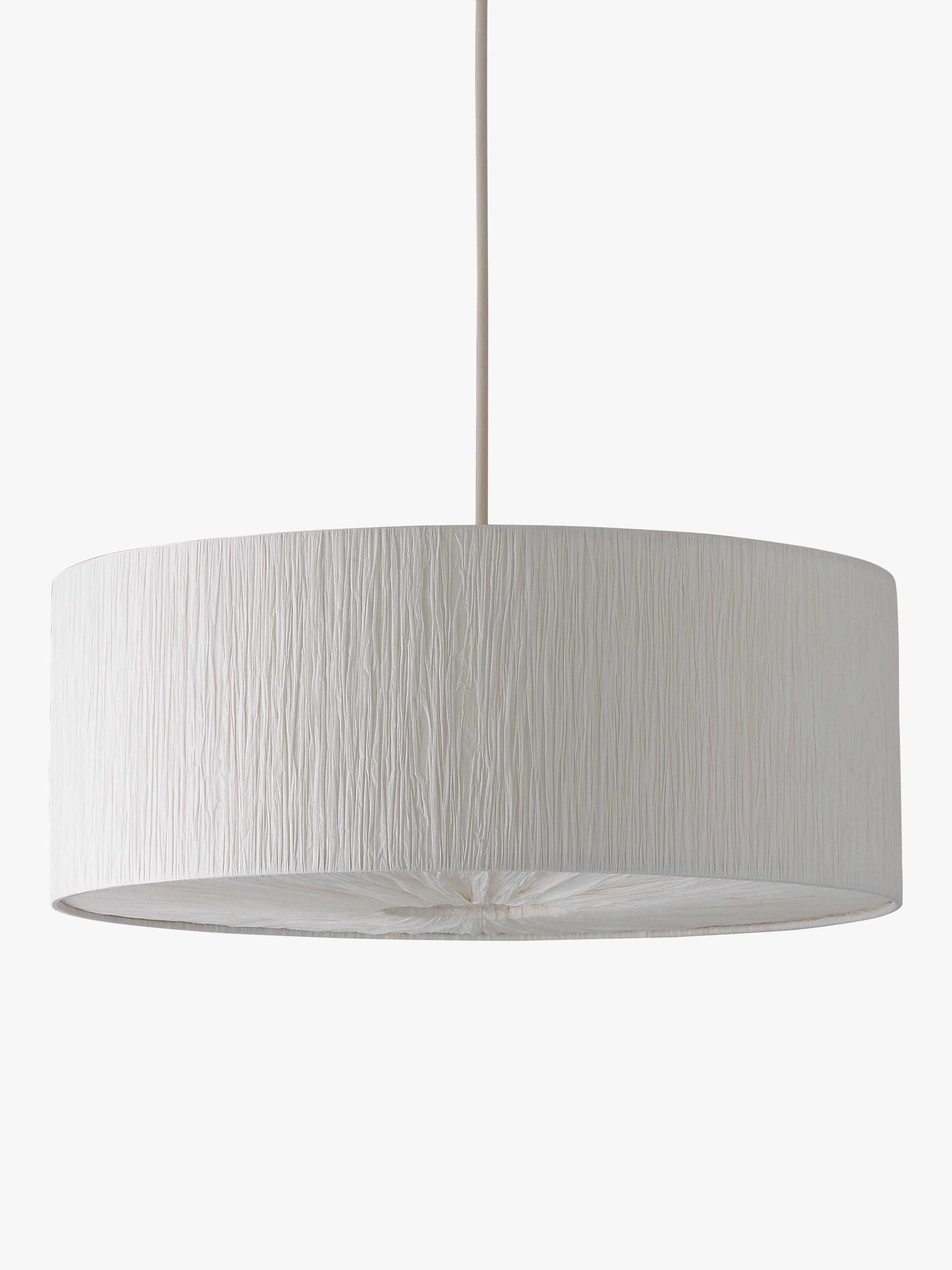This beautiful, cylinder-shaped shade has crinkle paper stretched around the frame. The same paper has also been used to create an elegant, gathered diffuser on the base.