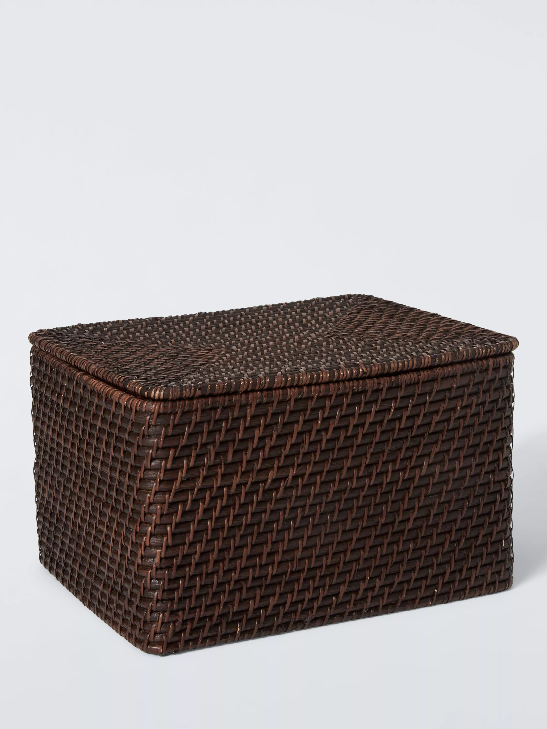 A sturdy rattan basket with a hinged lid. Great for giving an attractive, natural look in your living room, bedroom or bathroom.