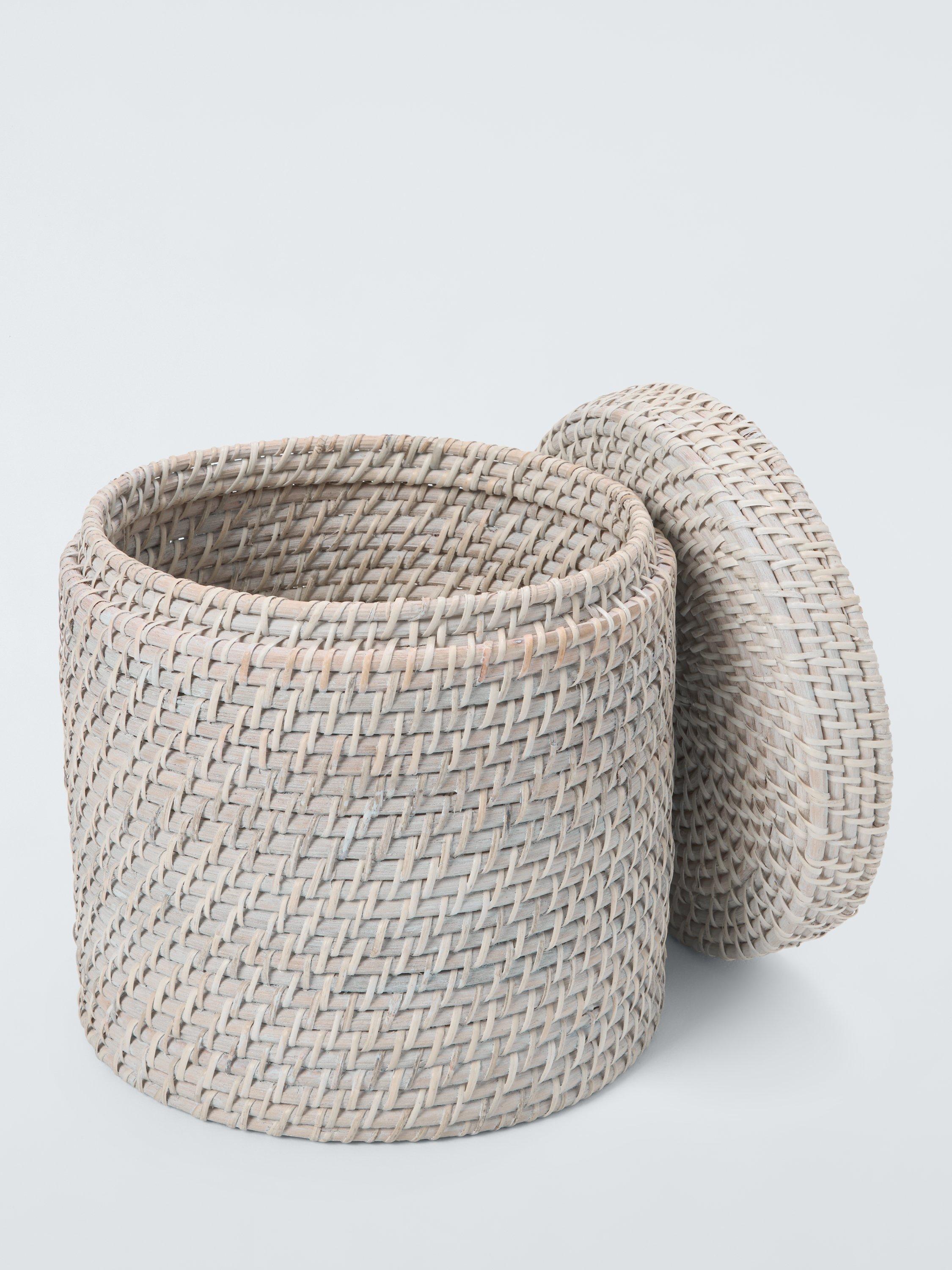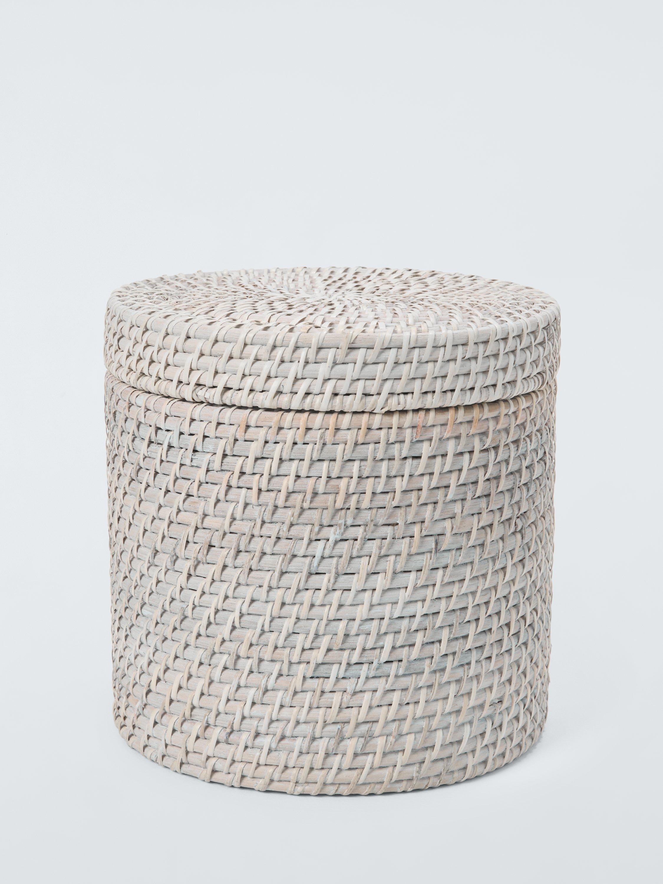 This versatile cylindrical lidded basket is ideal for use in bedrooms, bathrooms and even the kitchen.