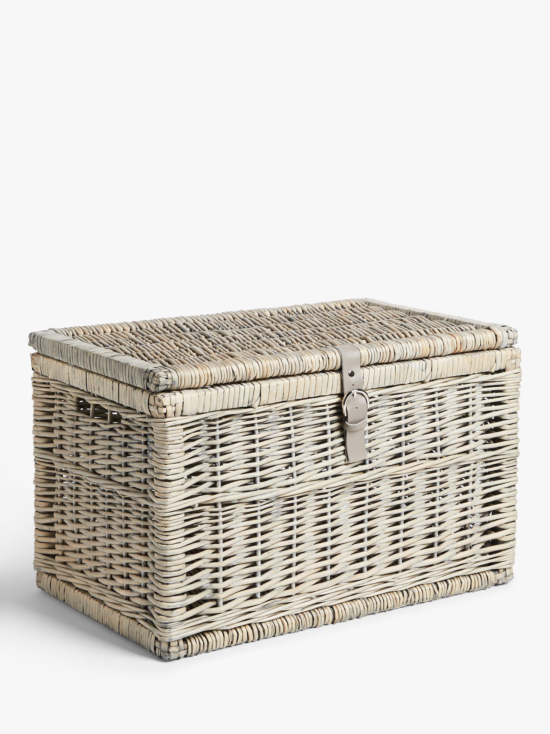 John LewisLidded Willow Storage Trunk with Leather Strap, Grey, Small