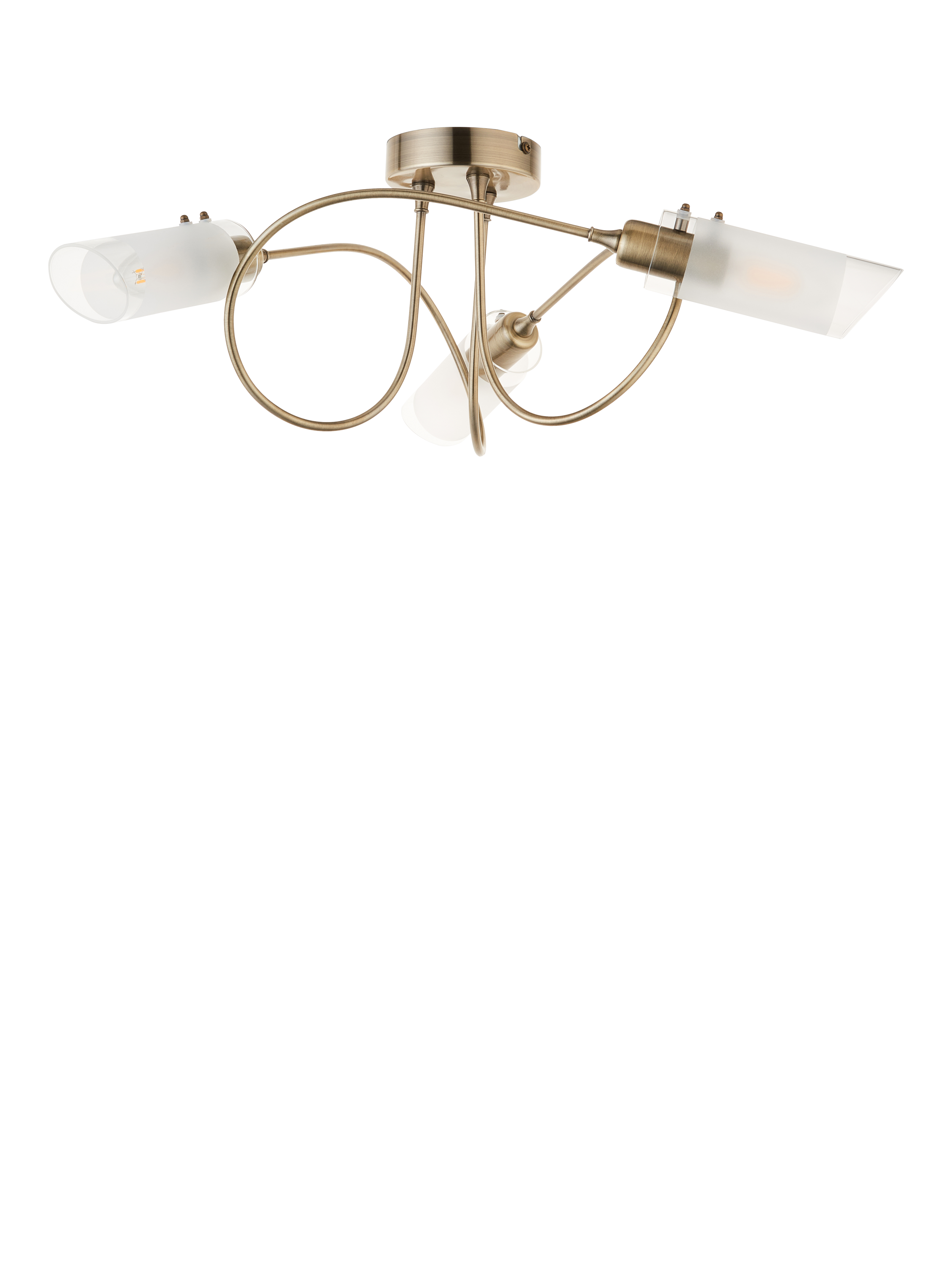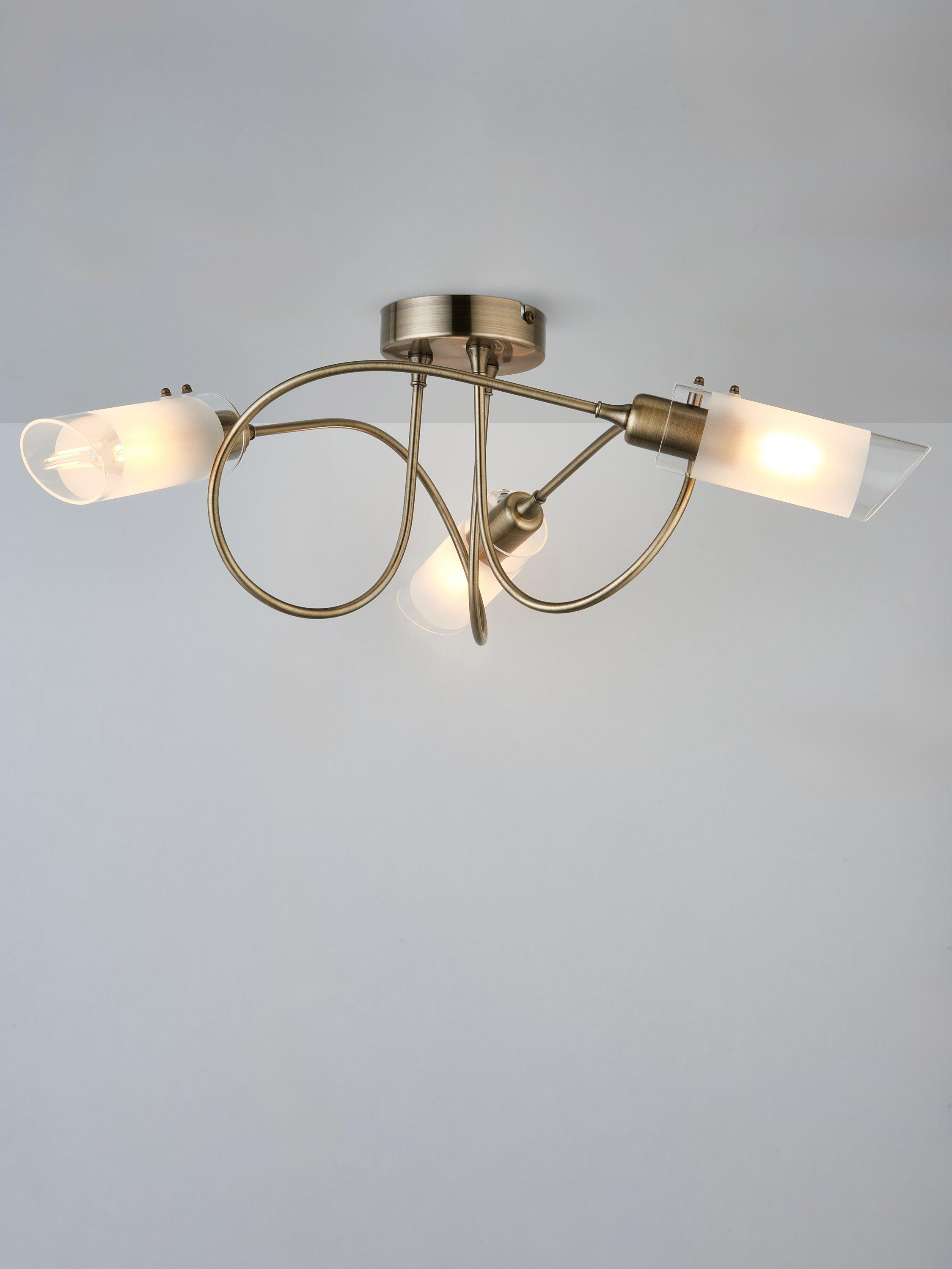 With three arms and a semi-flush design, this ceiling light will spread light around your room. We like the spiral shape of the arms which are in a smart polished finish and feature frosted shades for a more diffused lighting effect. Ideal for rooms with a low ceiling.