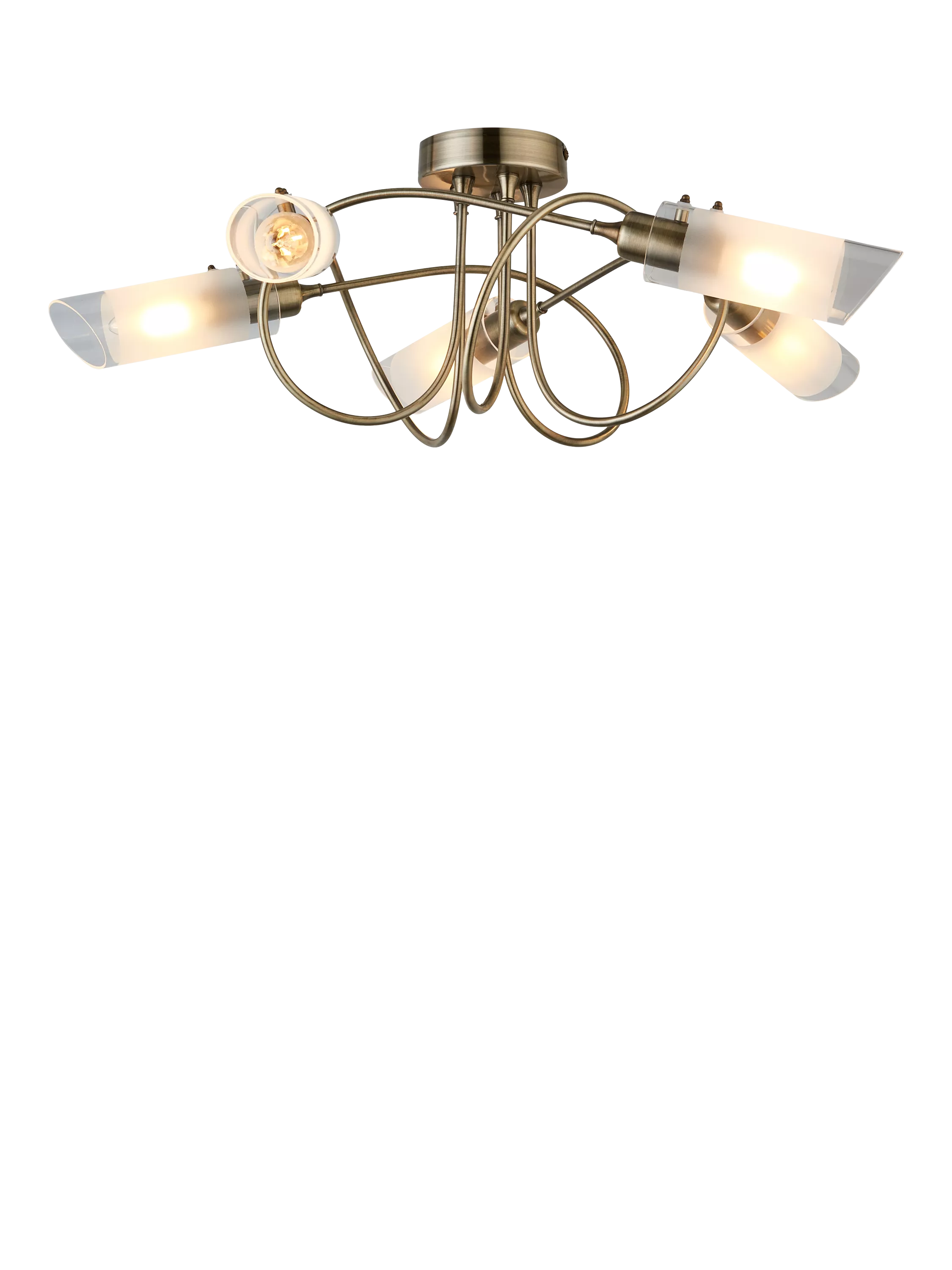 With five arms and a semi-flush design, this ceiling light will spread light around your room. We like the spiral shape of the arms which are in a smart polished finish and feature frosted shades for a more diffused lighting effect. Ideal for rooms with a low ceiling.