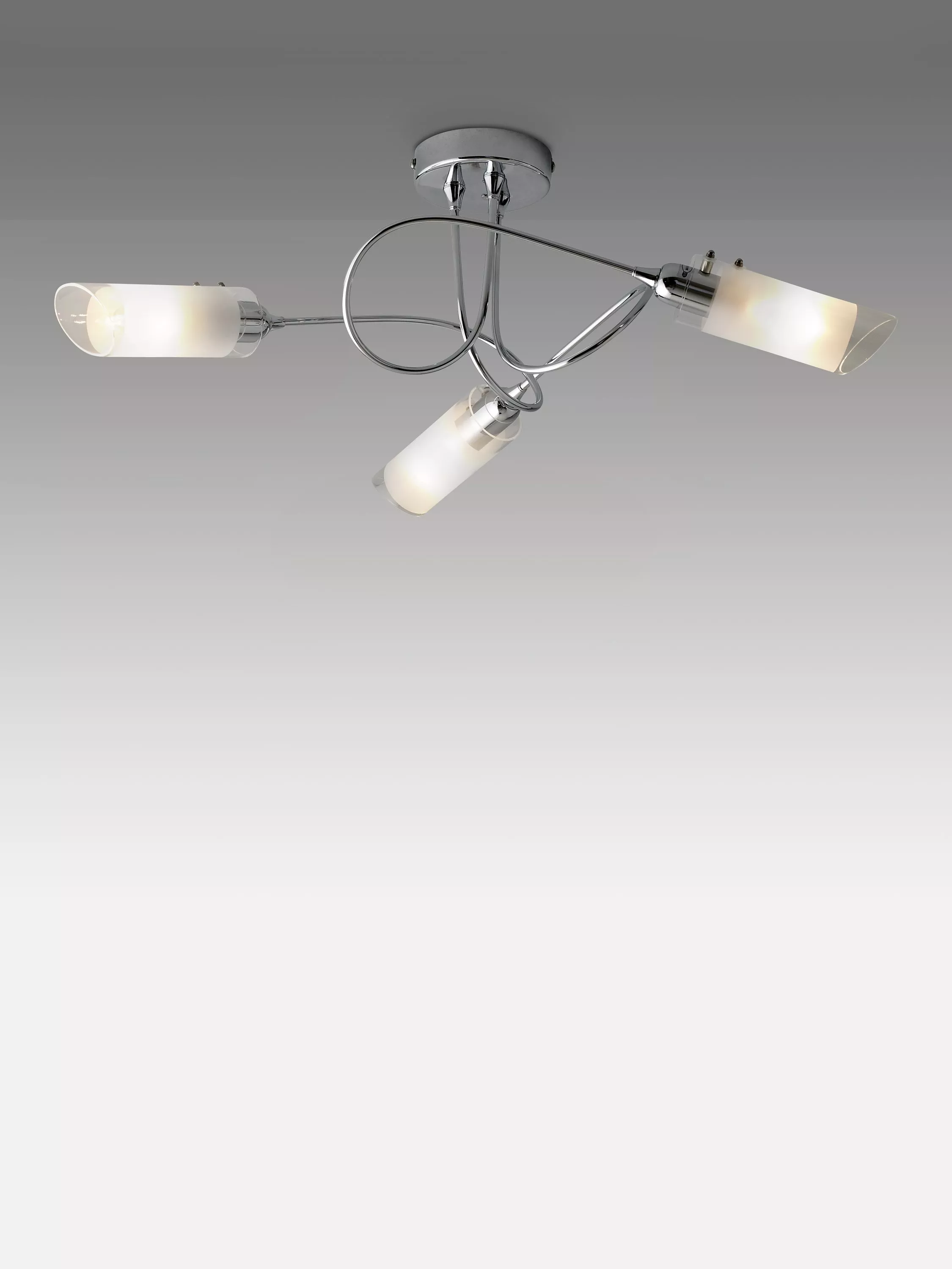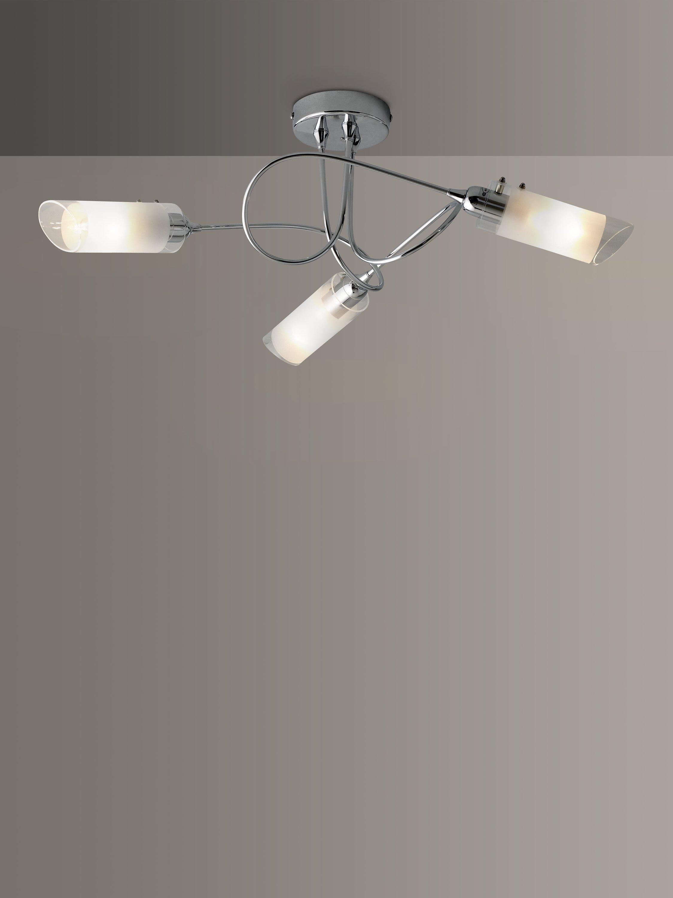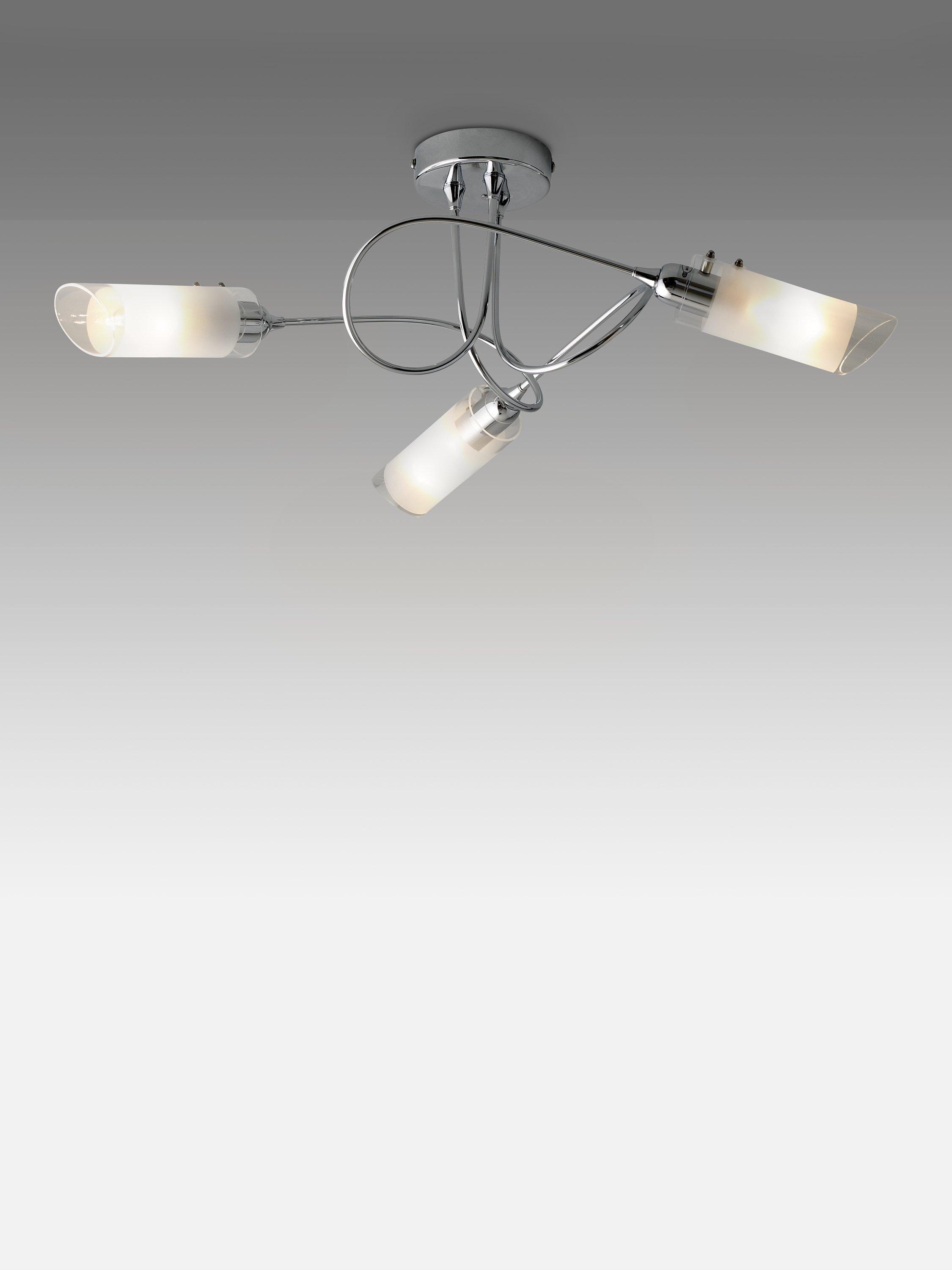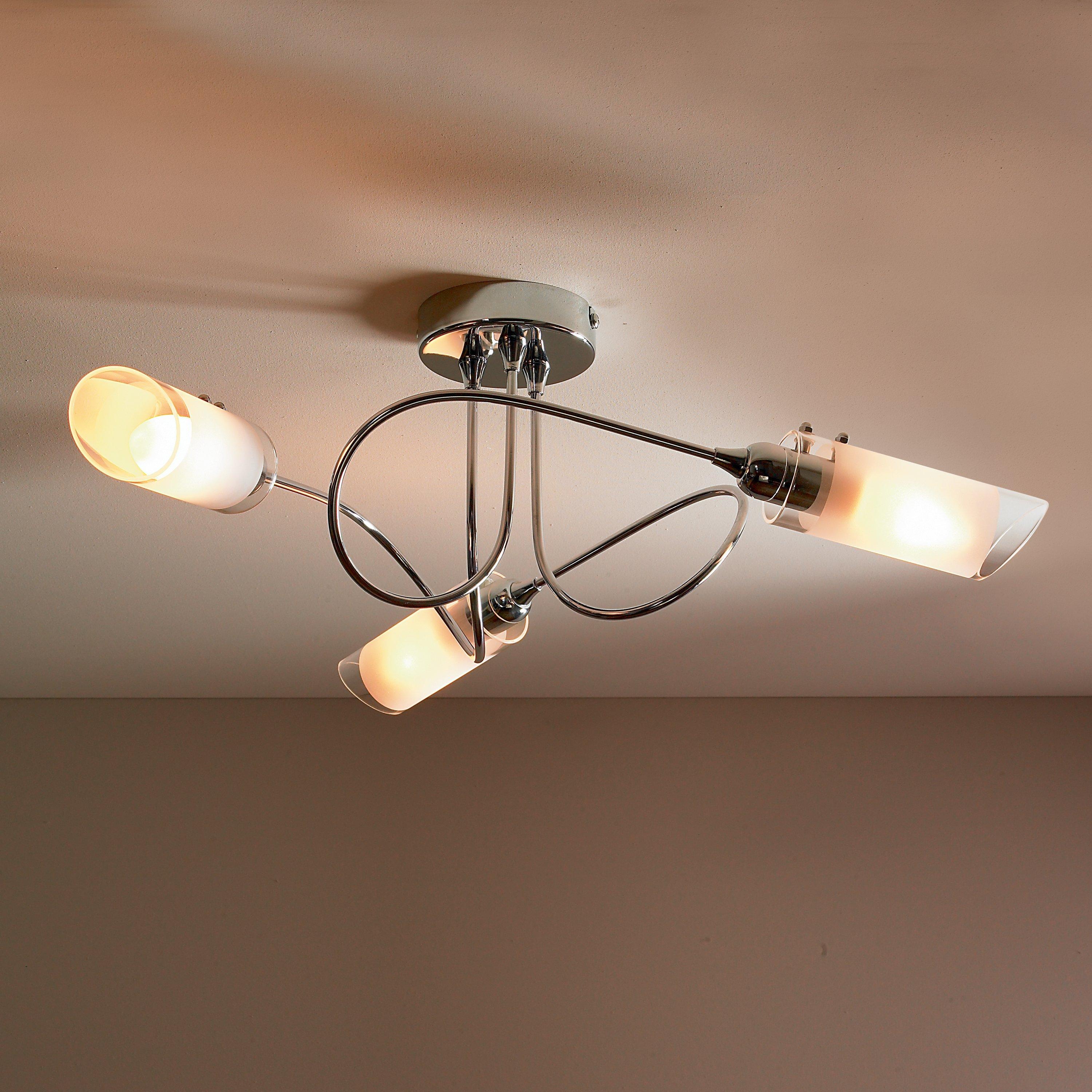 With three arms and a semi-flush design, this ceiling light will spread light around your room. We like the spiral shape of the arms which are finished in a smart polished chrome and feature frosted shades for a more diffused lighting effect. Ideally installed in rooms with a low ceiling.