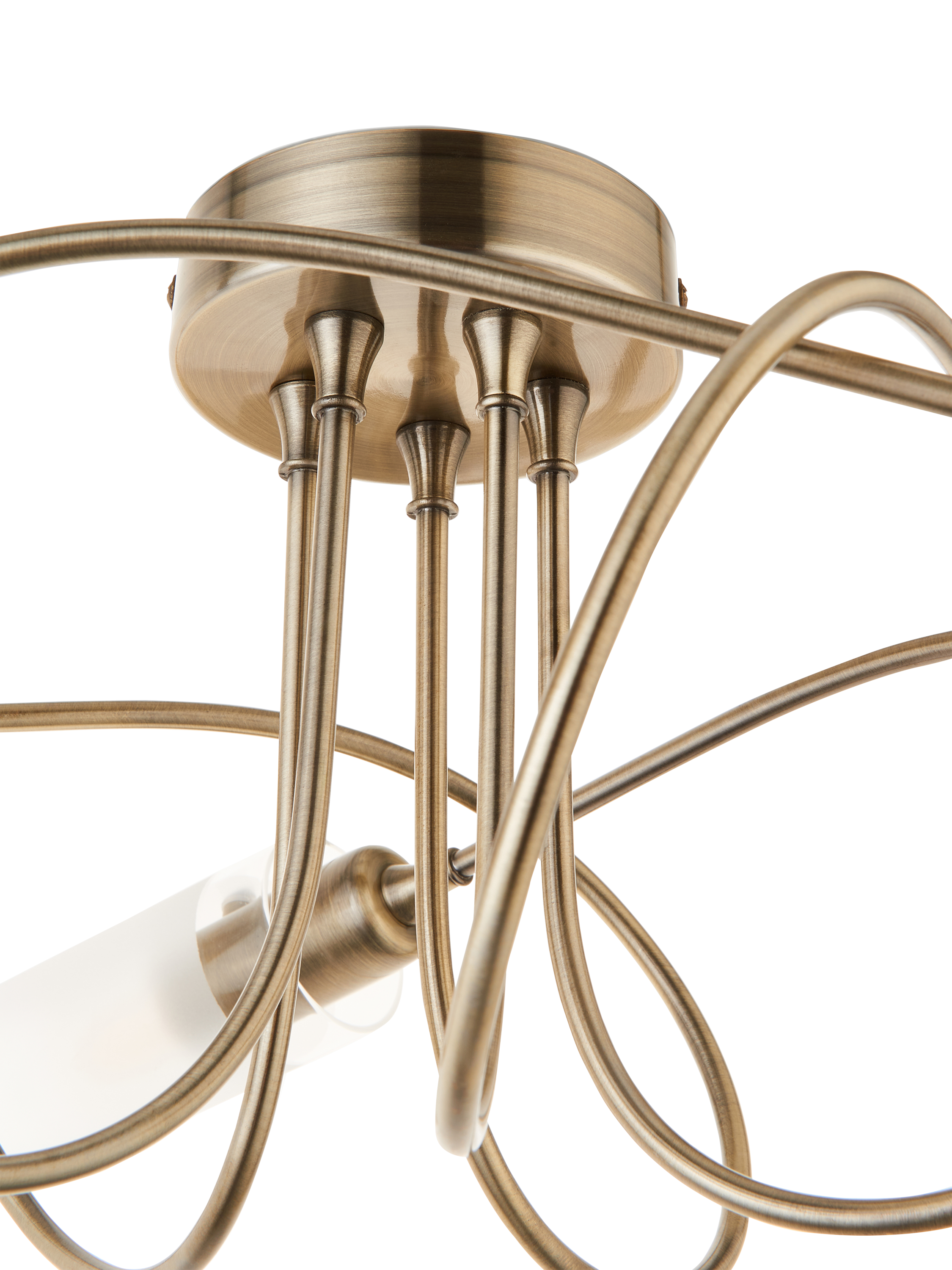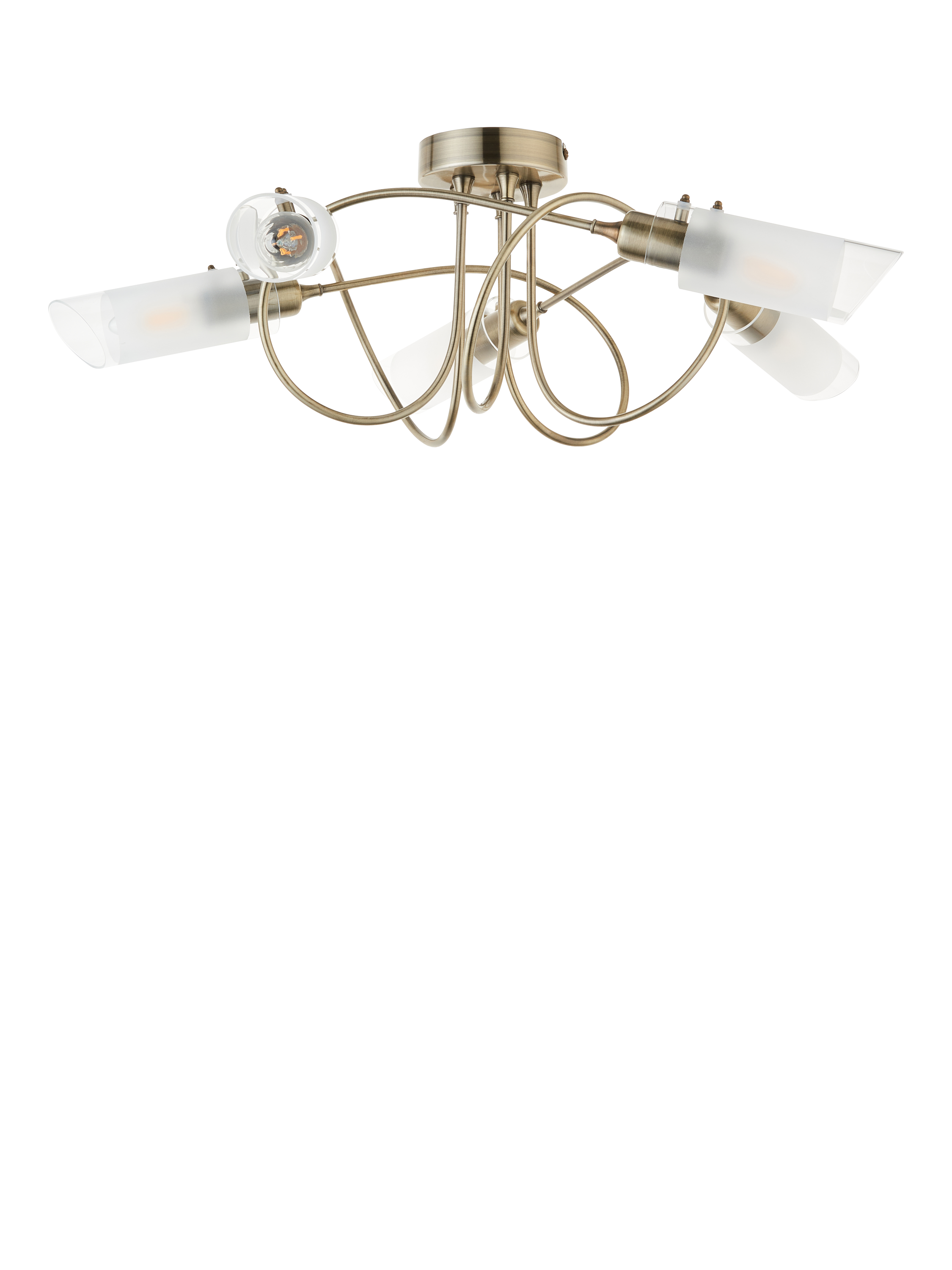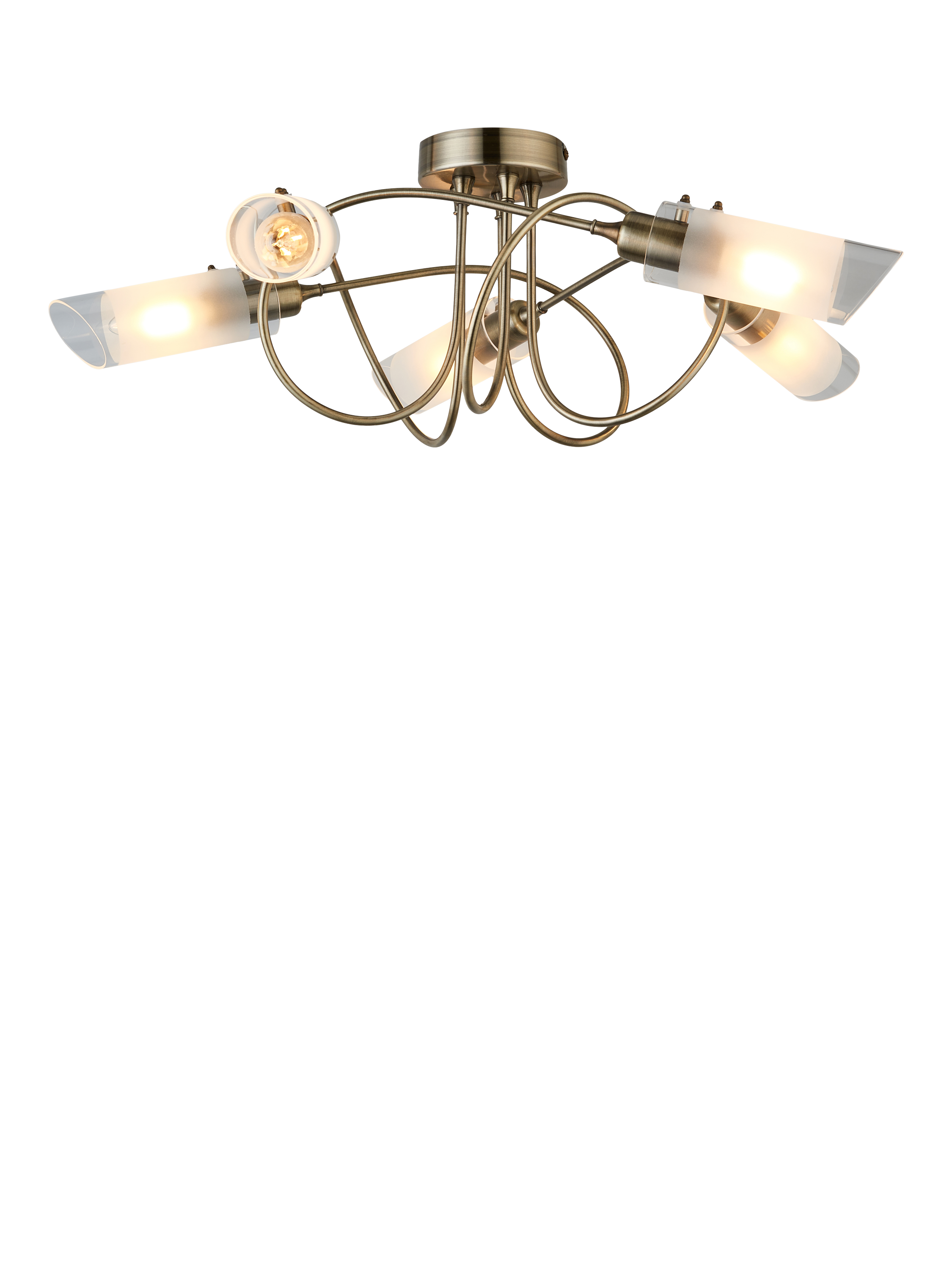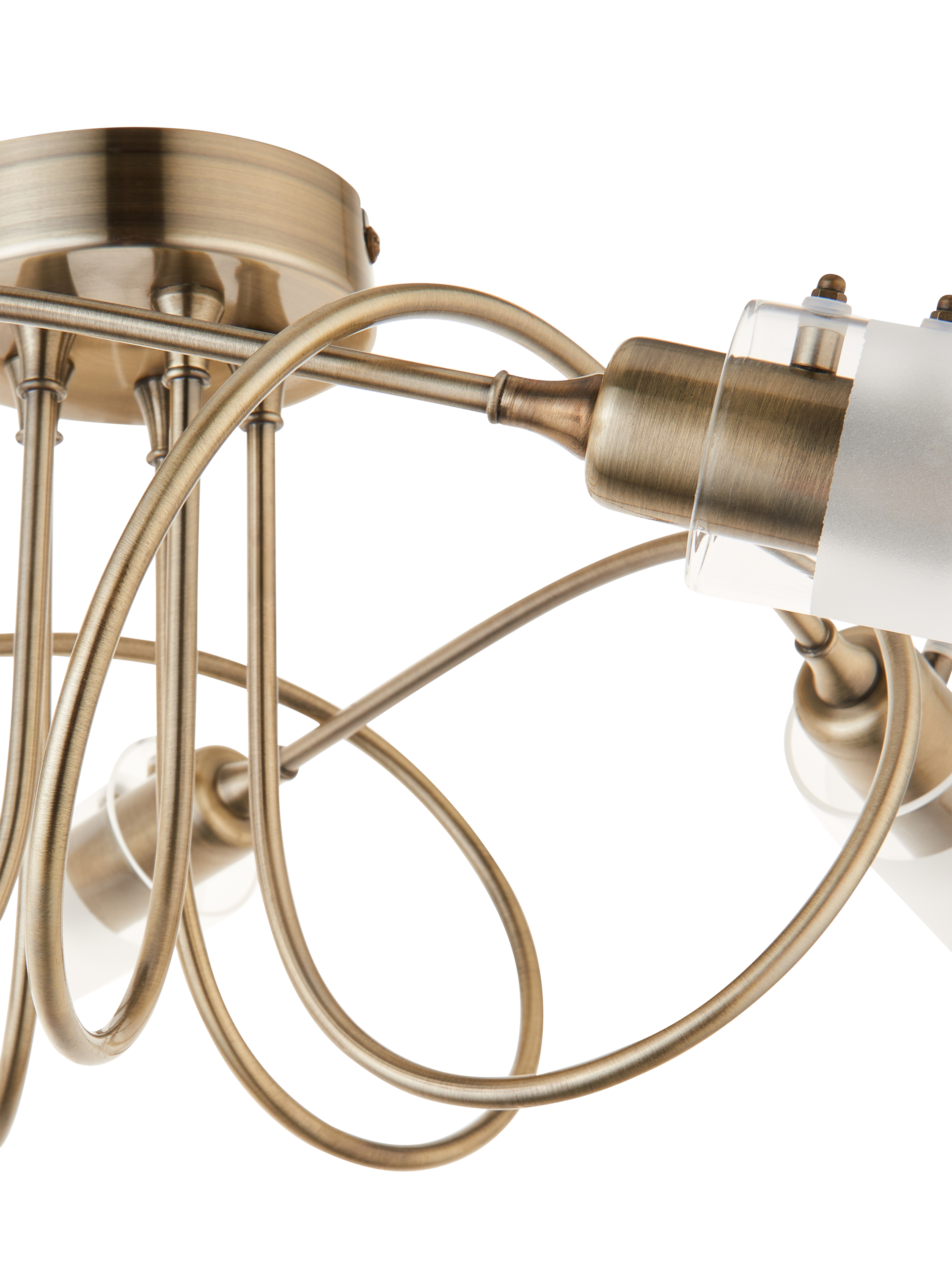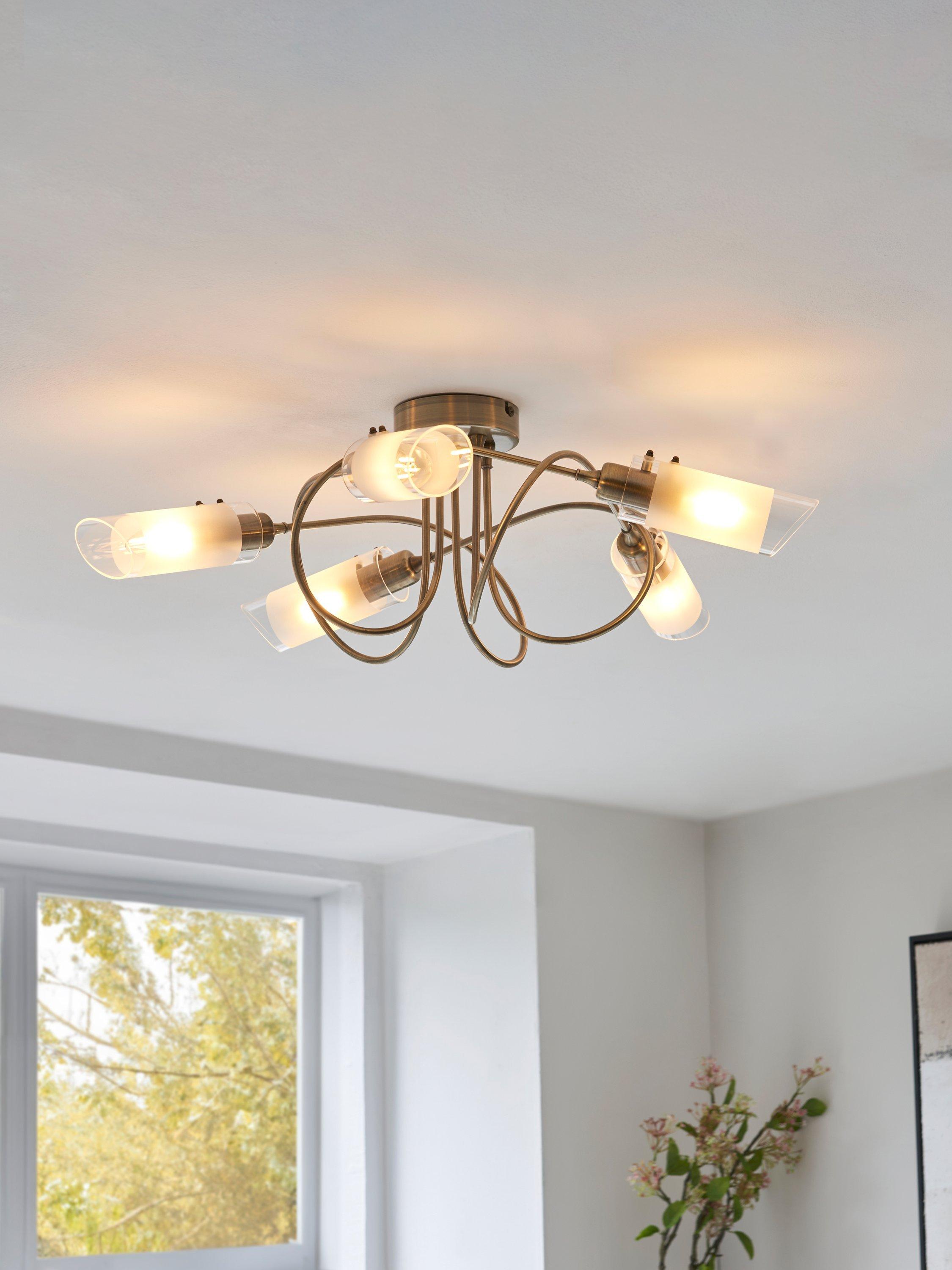 With five arms and a semi-flush design, this ceiling light will spread light around your room. We like the spiral shape of the arms which are finished in a smart polished chrome and feature frosted shades for a more diffused lighting effect. Ideally installed in rooms with a low ceiling.