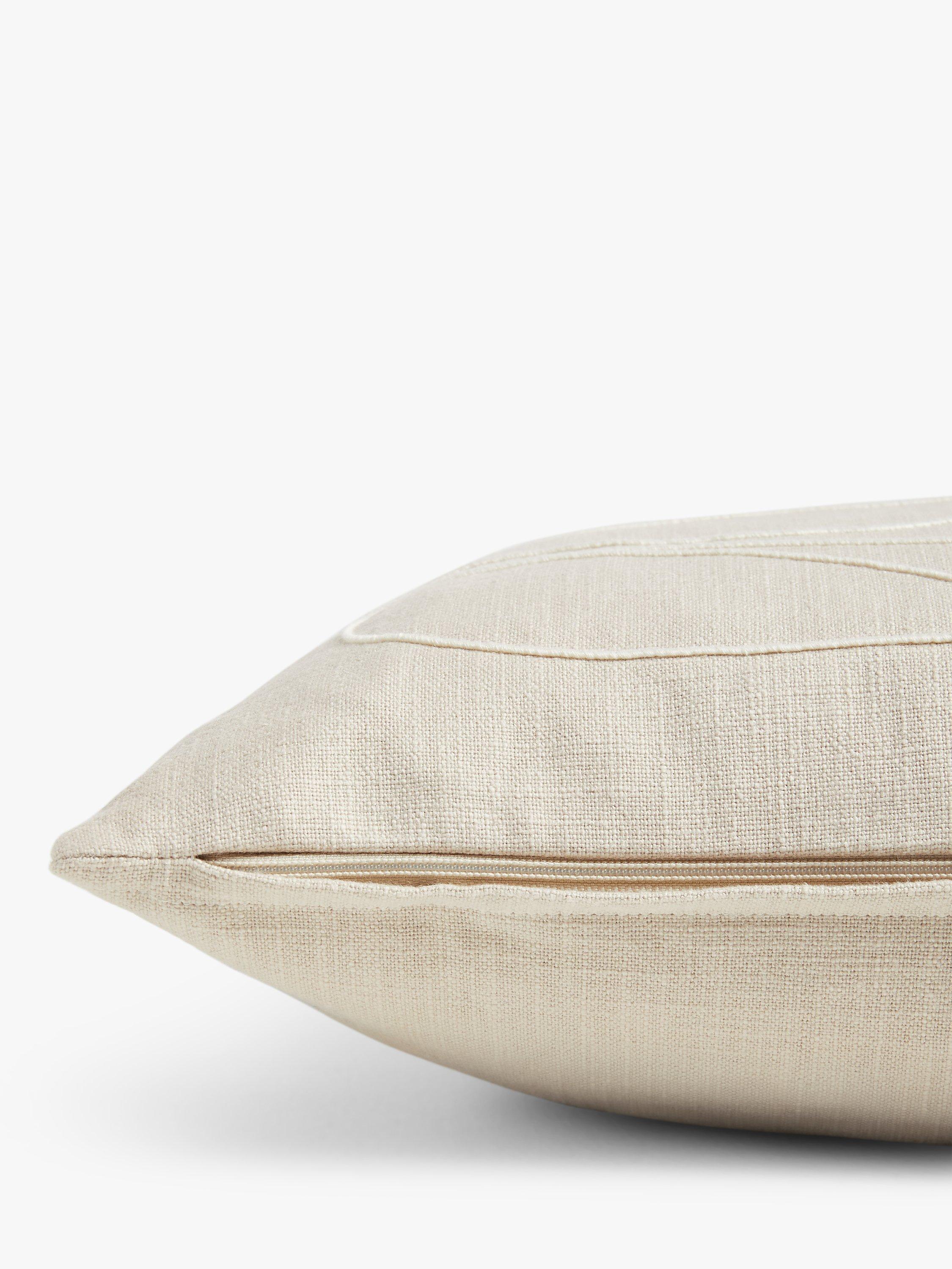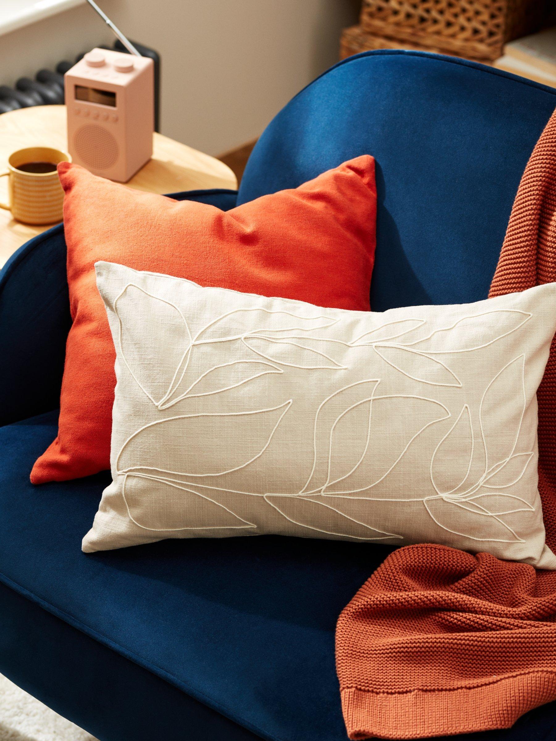 A plush cushion with a simplistic leaf pattern on a rustic cotton base. The elegant, hand crafted corded embroidery detail is bound to enhance the beauty of your home.