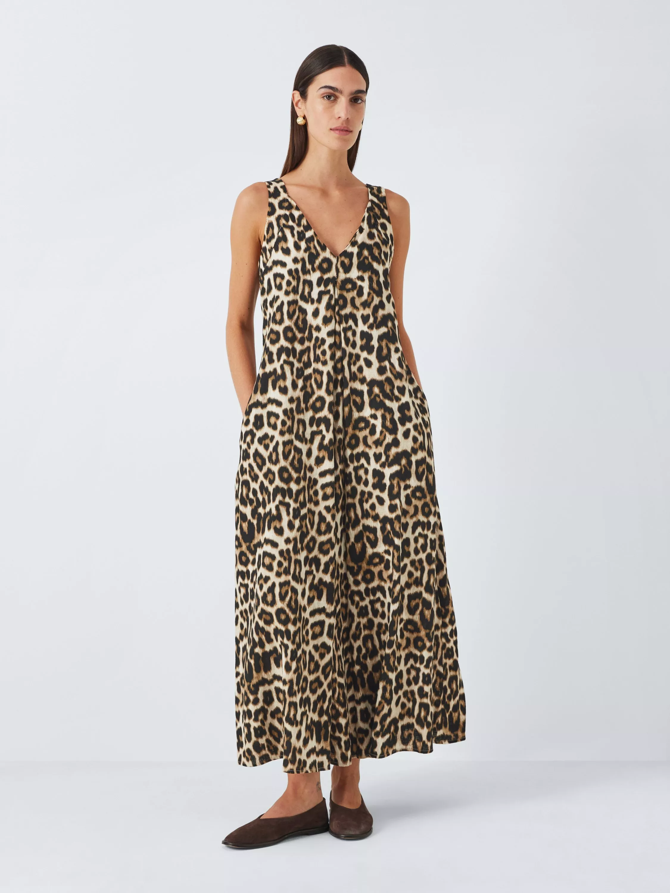 Sleeveless maxi-length dress with a deep v-neck. Showcasing a self-tie bow at the back, this dress will create an impact at summer events.