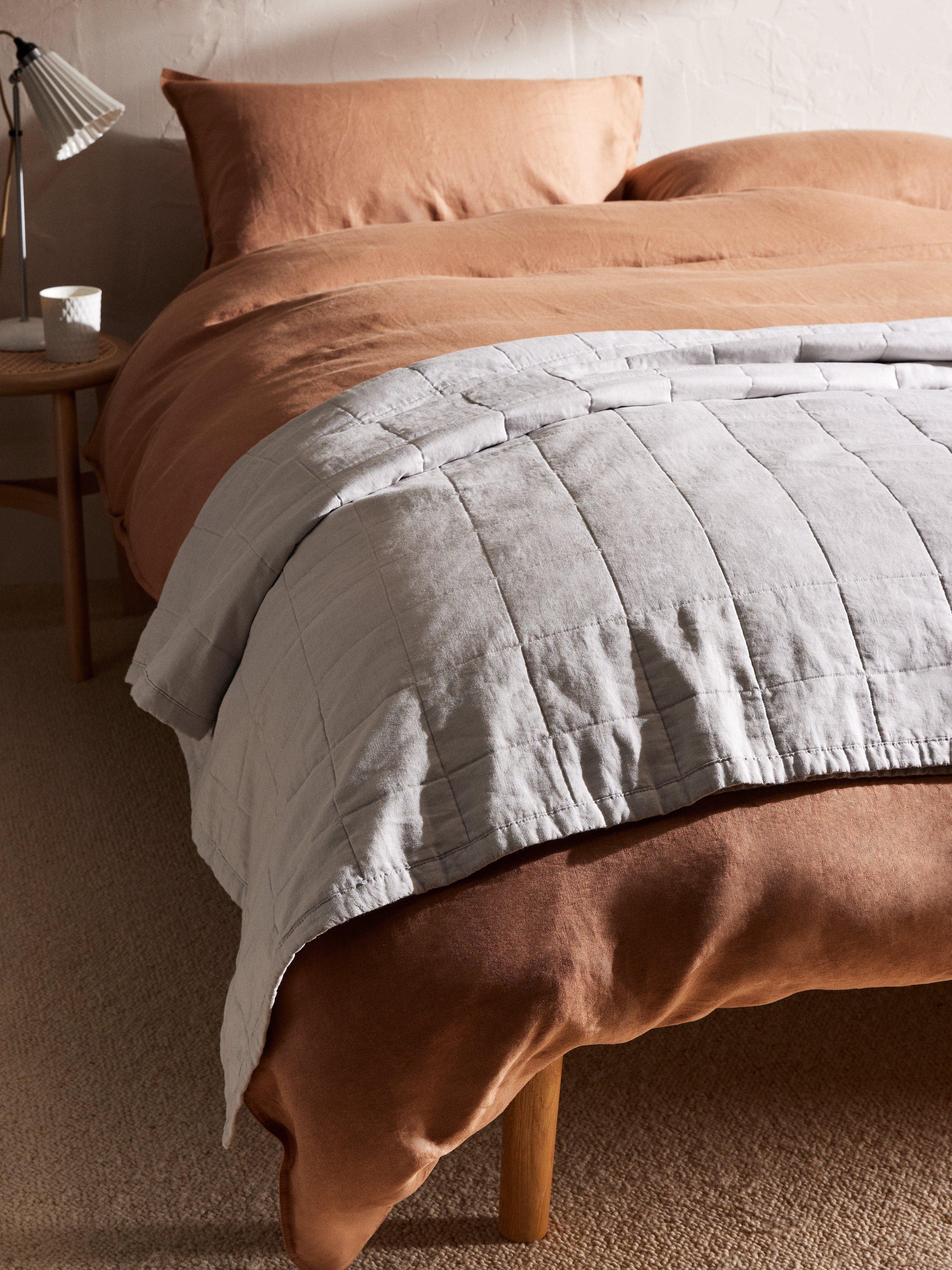 This lightweight quilted linen and cotton bedspread comes in a beautiful range of on-trend colours for autumn.