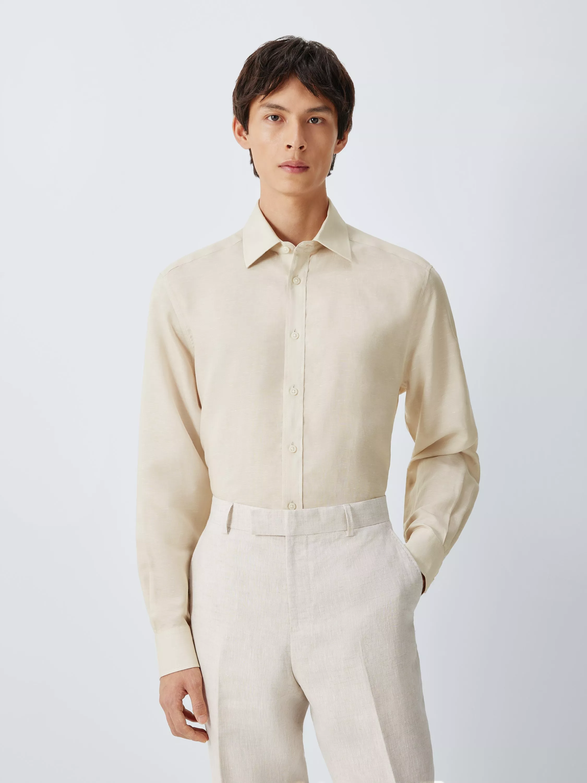 A regular fit, it features a refined pointed collar and a clean, streamlined silhouette. Lightweight and naturally temperature-regulating, it's the ideal choice for polished summer dressing.