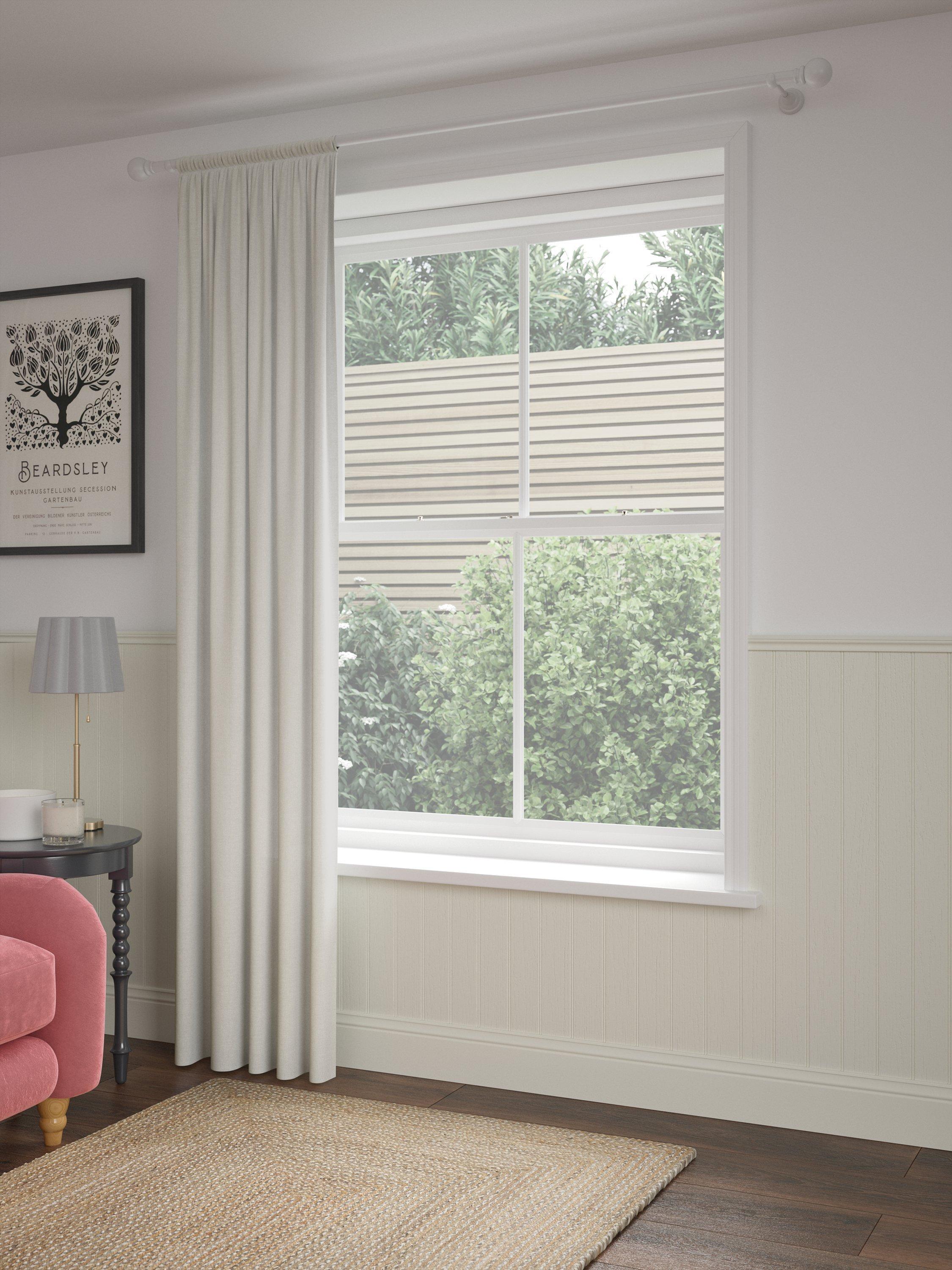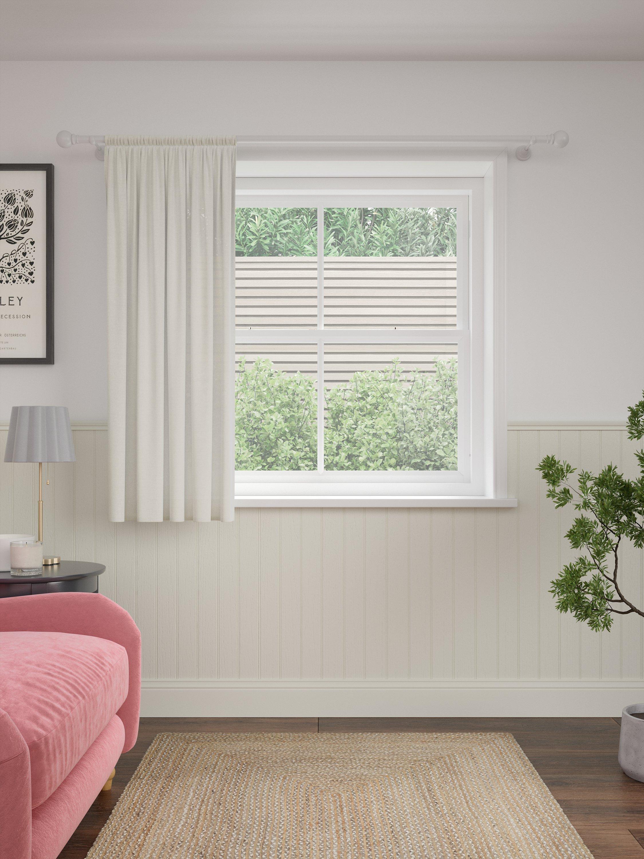 This beautiful, textured panel is made from a polyester linen mix fabric. This design has an easy-to-hang slot top header.