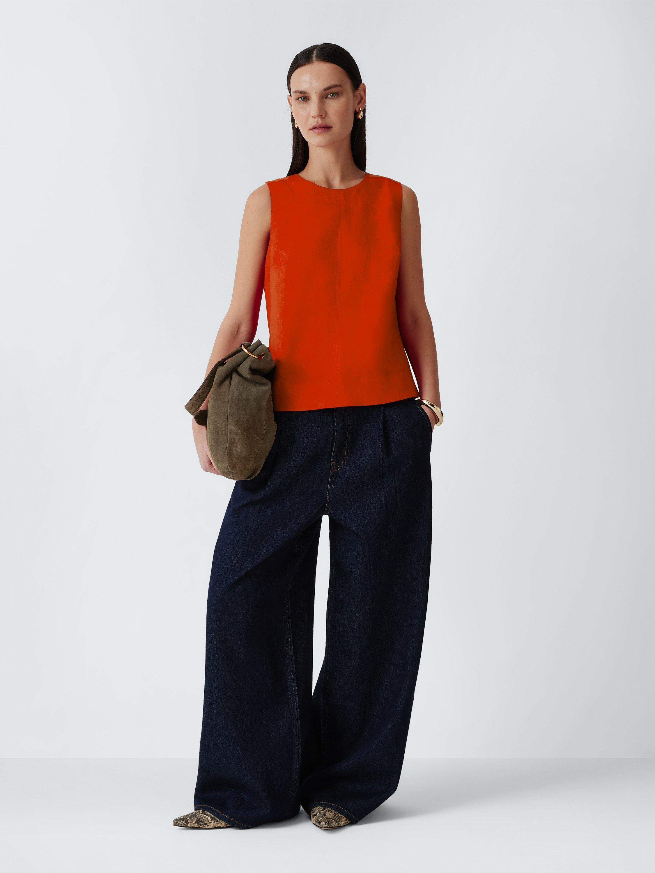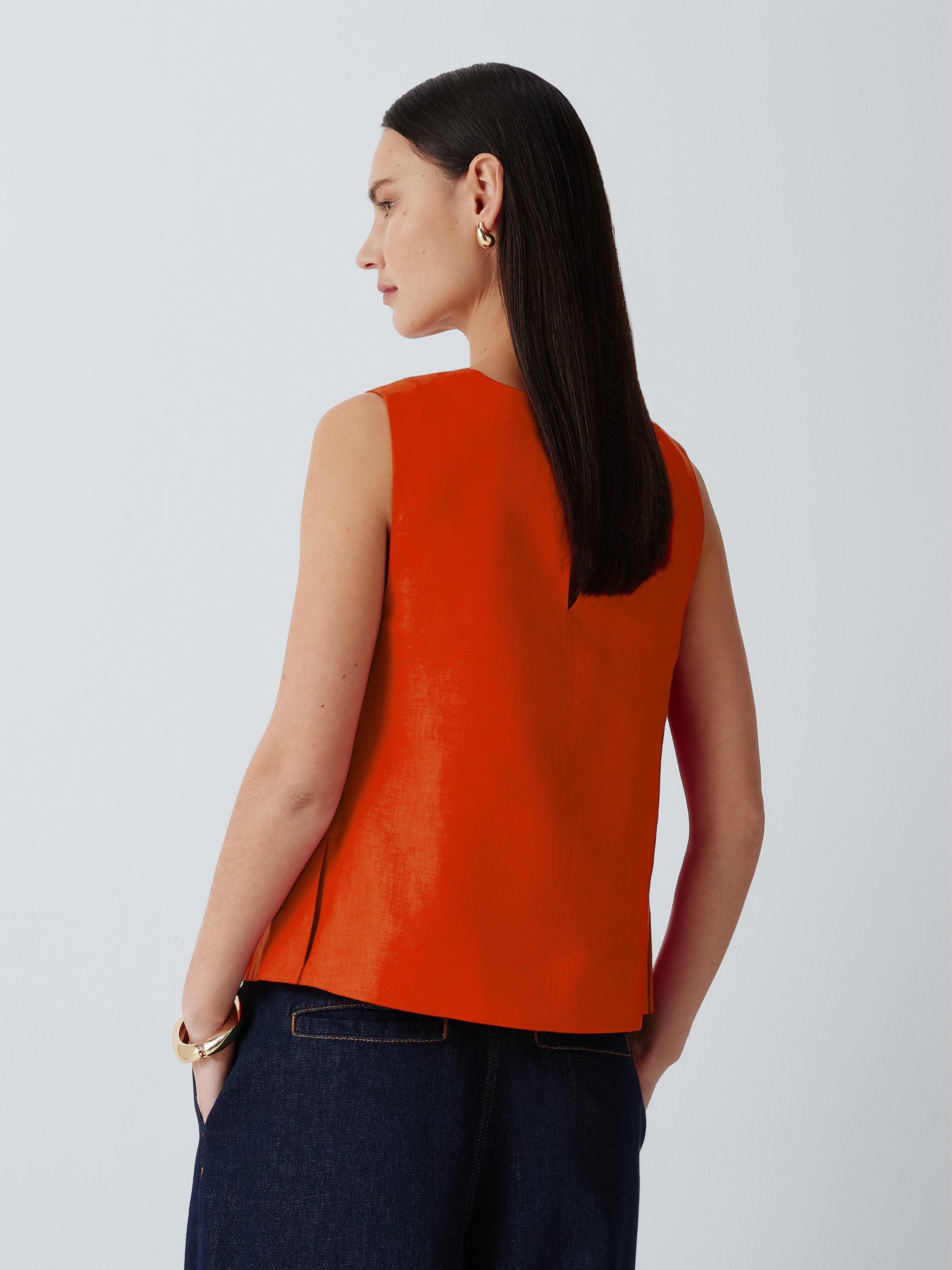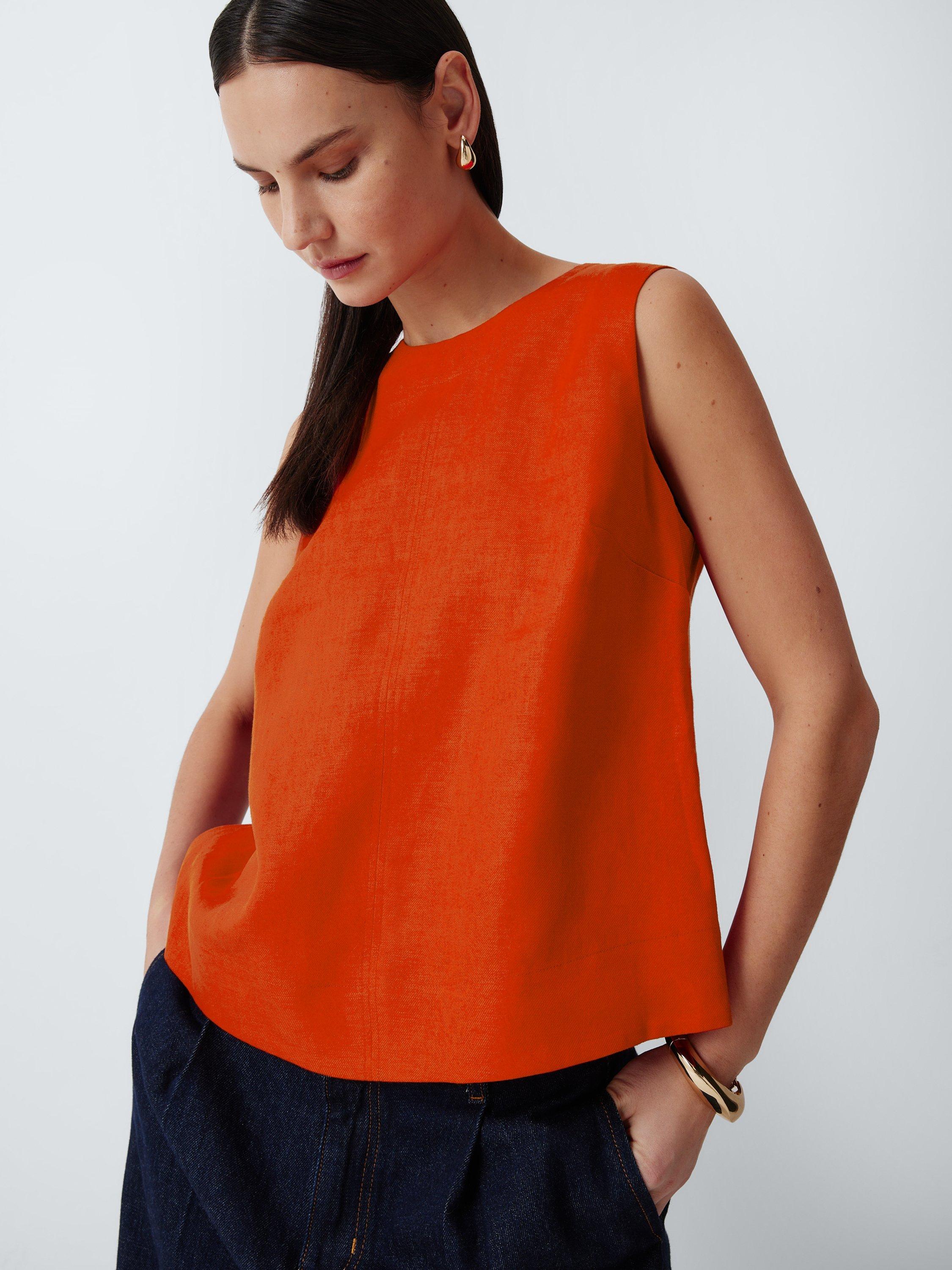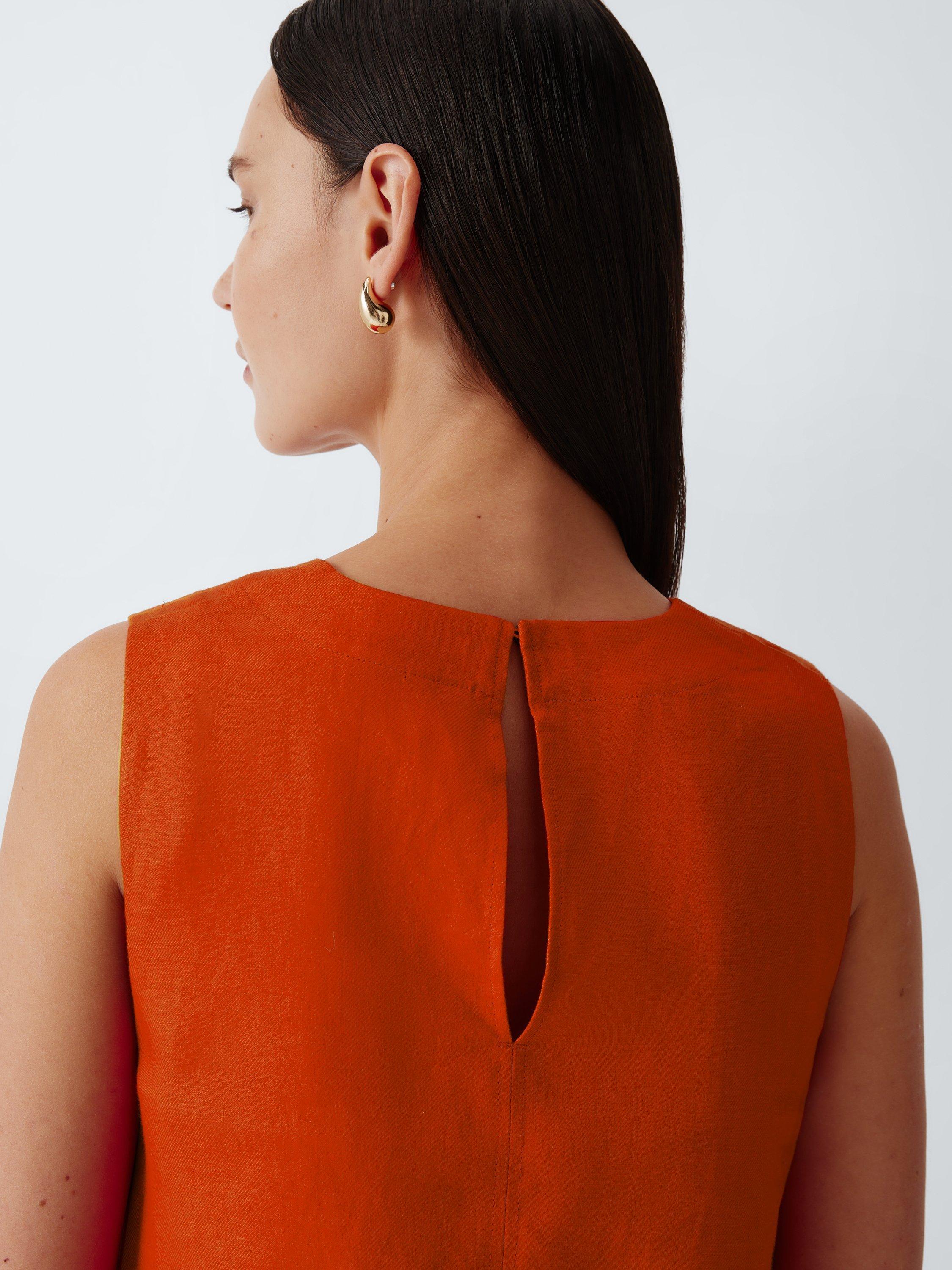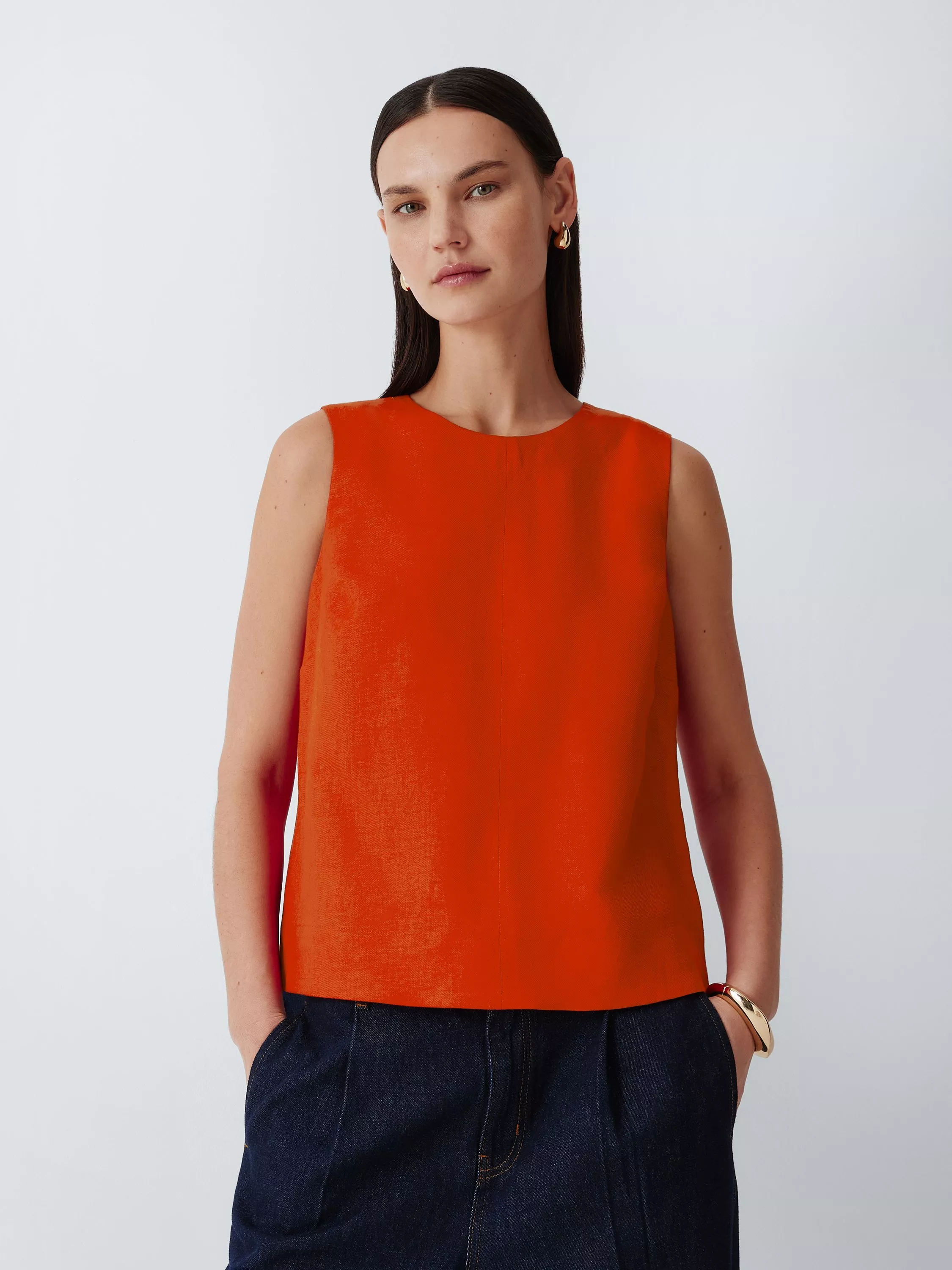 Effortless summer elegance. This linen shell top features a minimalist sleeveless silhouette and a delicate button-fastening back. This clean, understated design serves as the ultimate versatile foundation for your warm-weather wardrobe.
