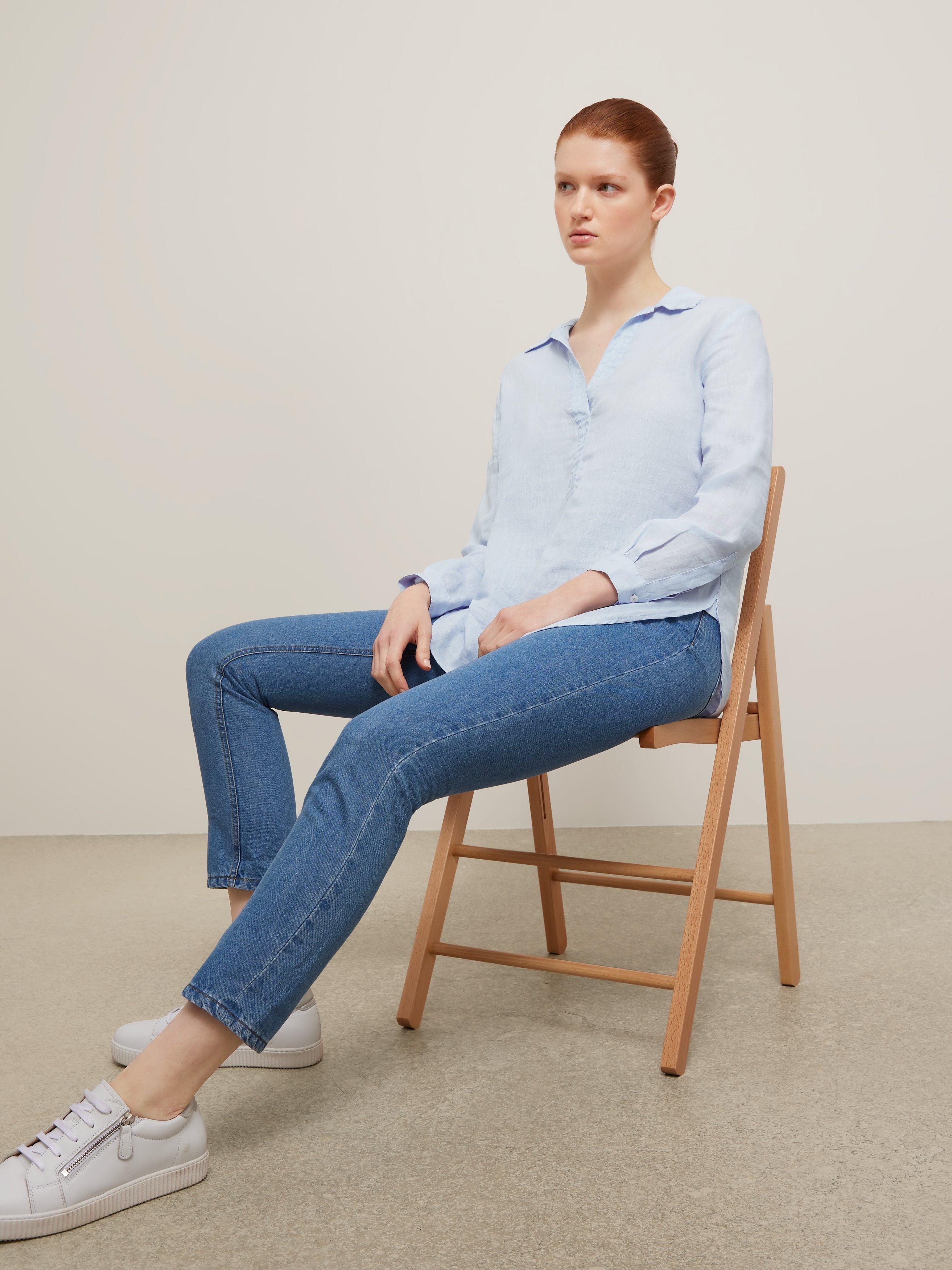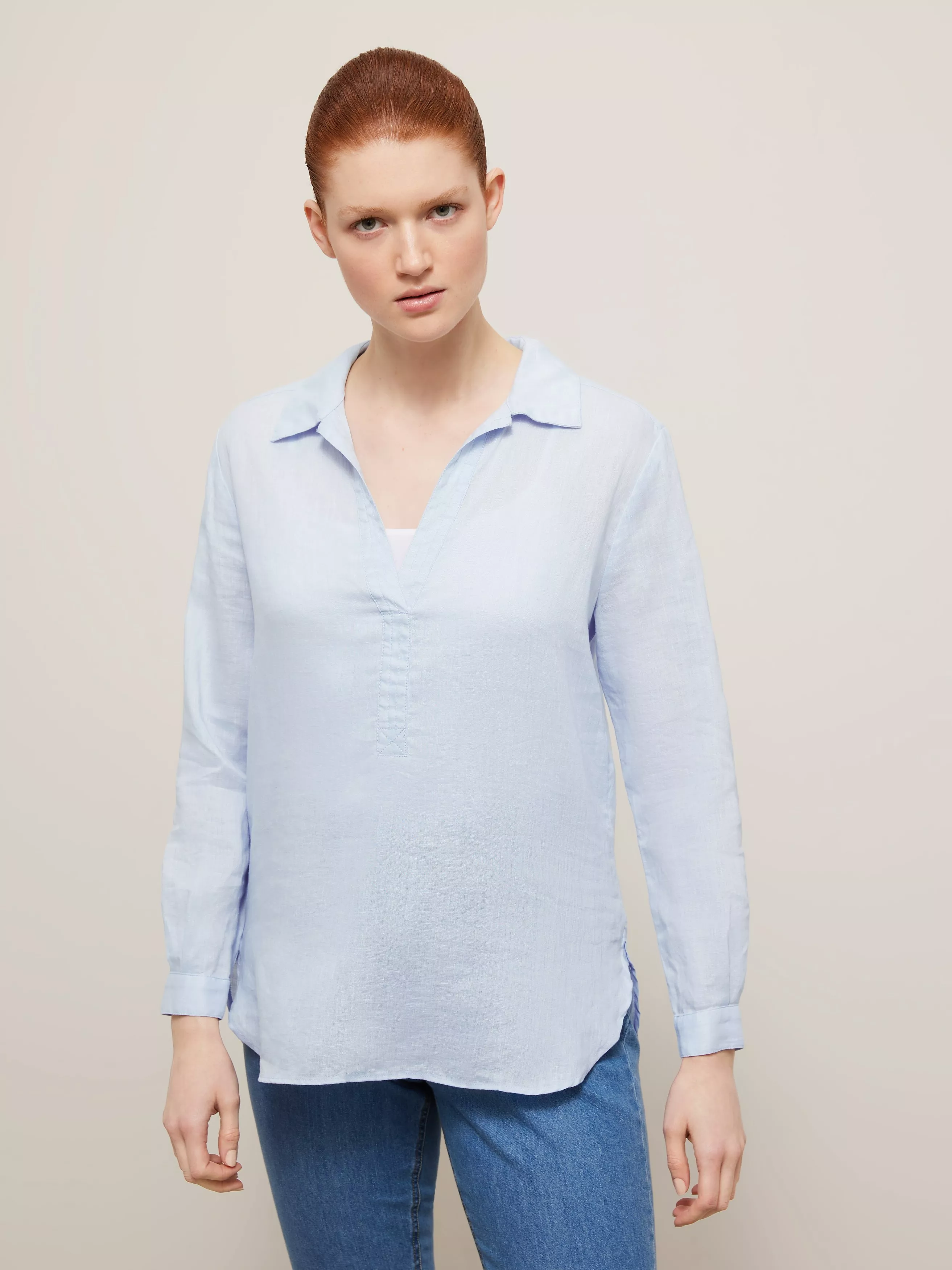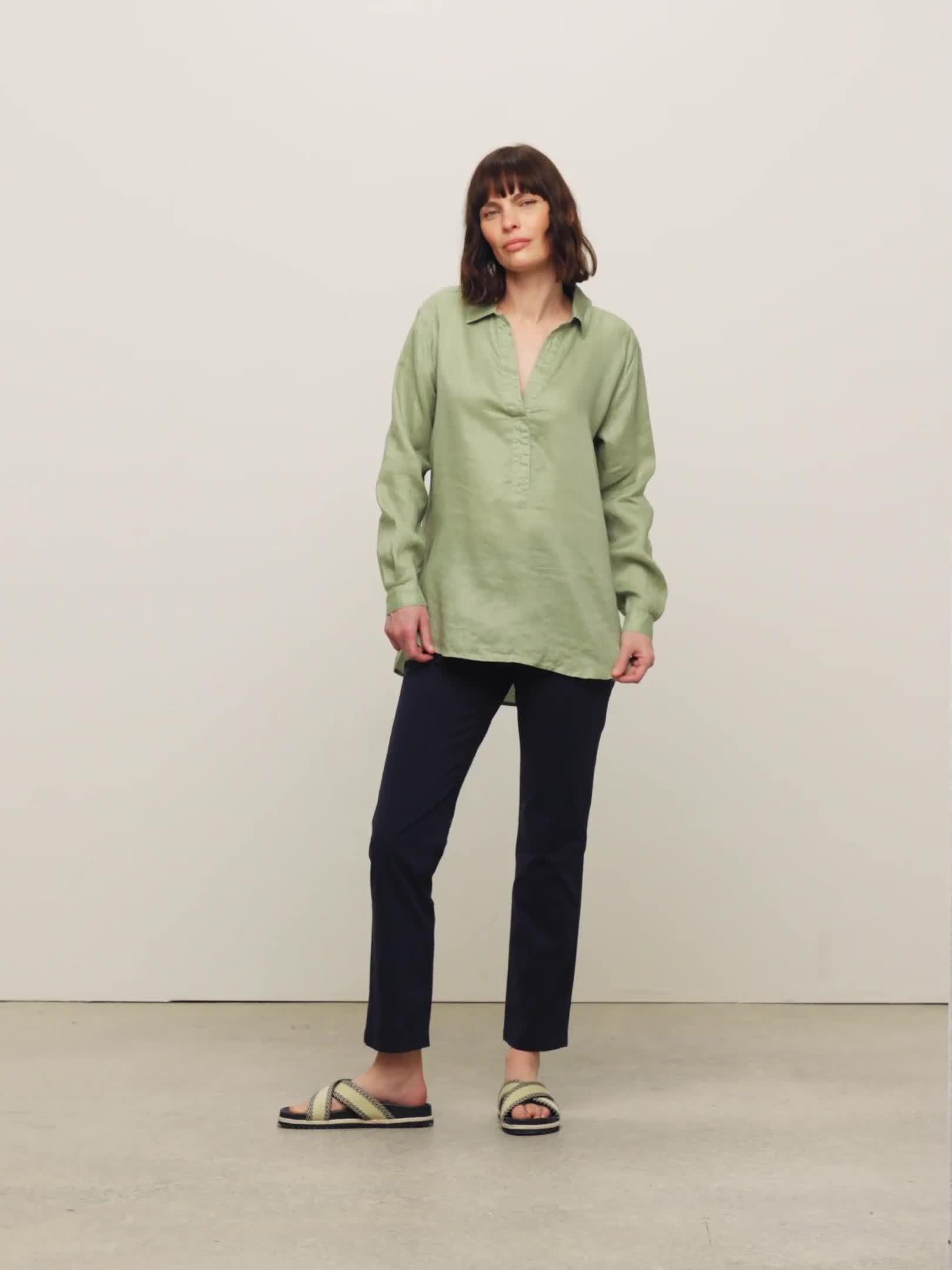 One for the warmer months ahead, our linen tunic comes in a relaxed in fit and is made from pure linen for a super-light and breezy finish. Framed by a stitch detailed notch neck opening and collar detail, a hem dip at the back offers flattering coverage throughout the day.