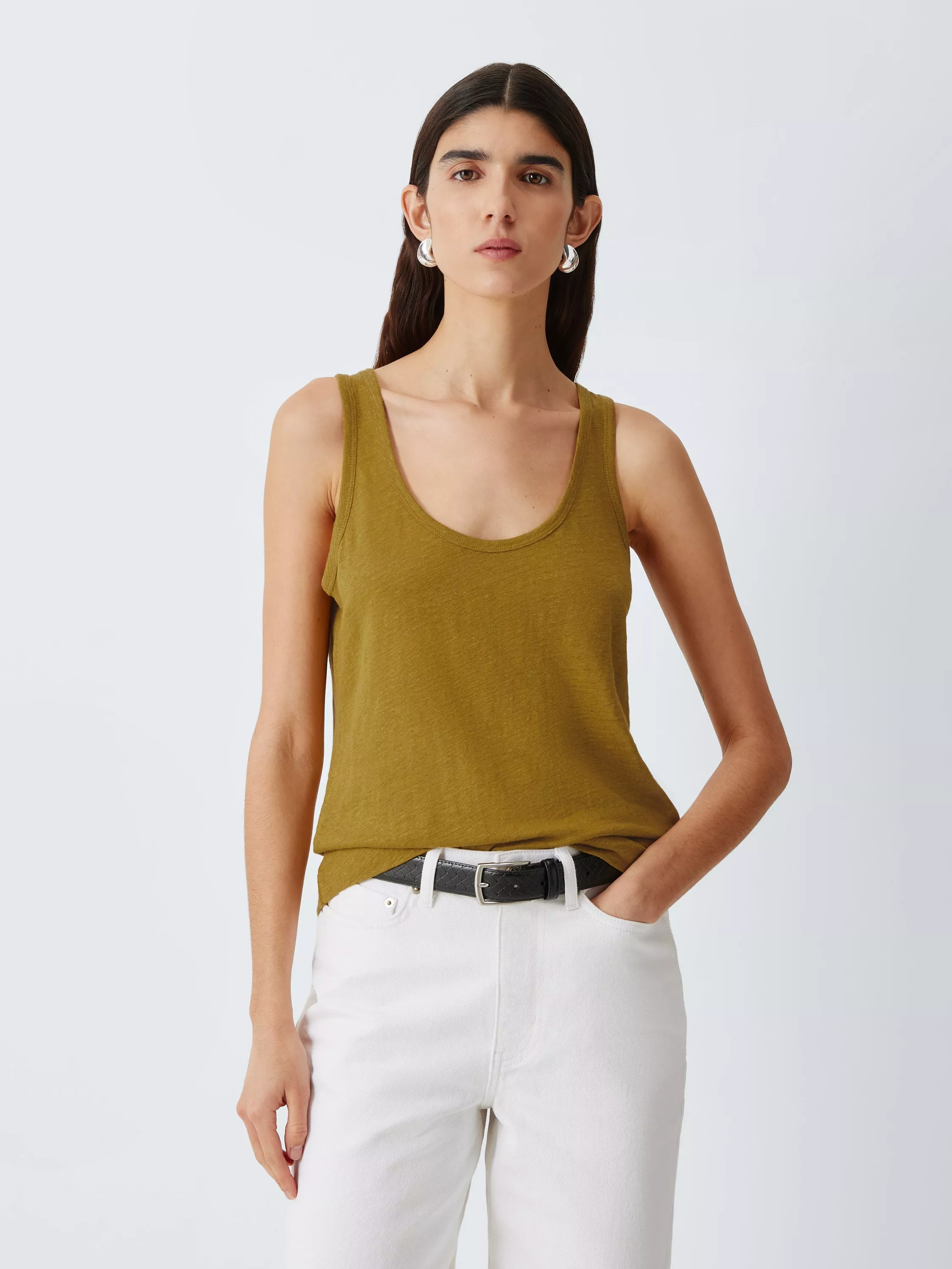 The weave retains its shape while providing an effortless drape and cooling properties essential for warm-weather layering or standalone styling. The soft, lightweight fabric feels gentle against the skin, making it a dependable wardrobe staple.