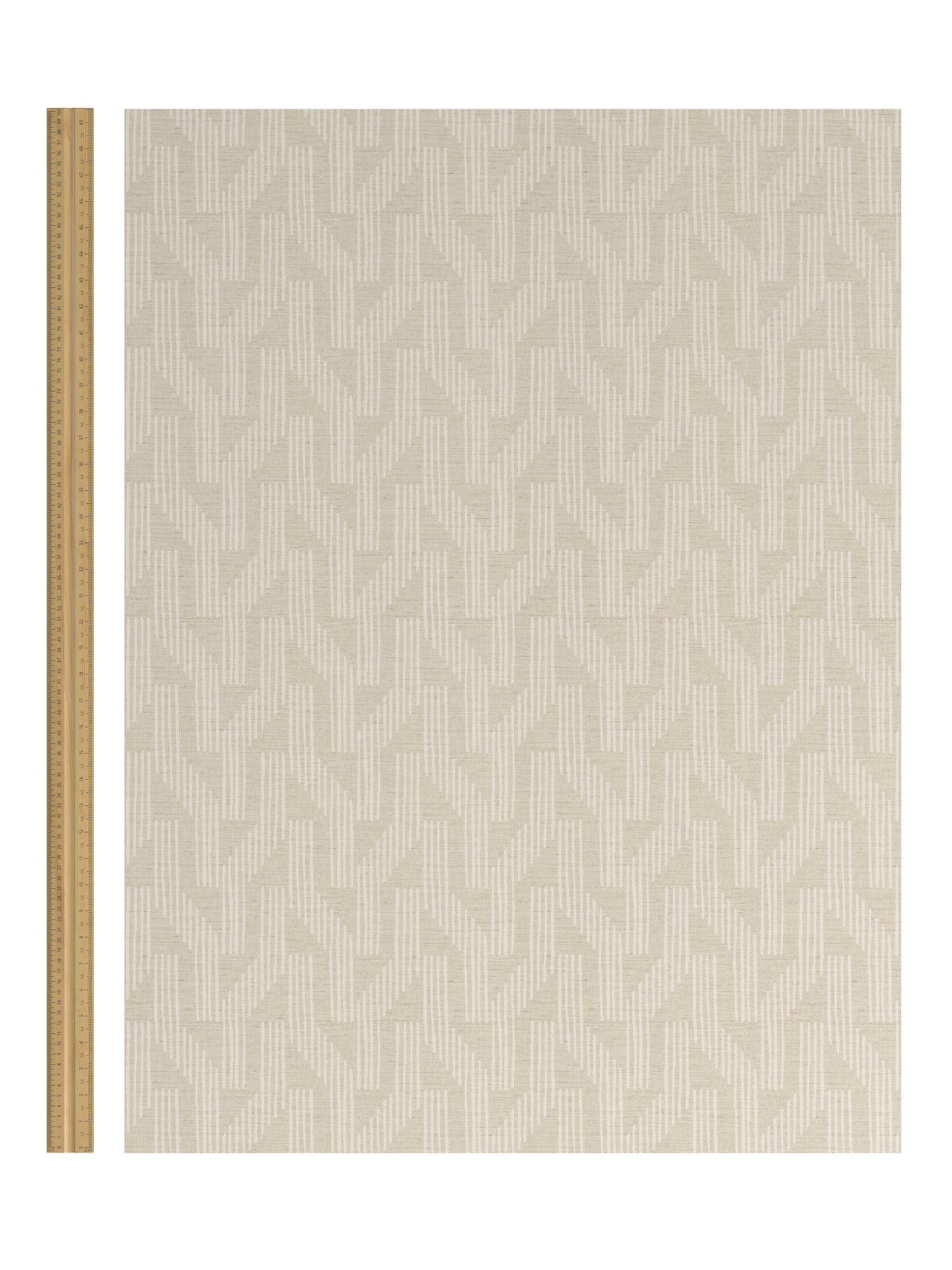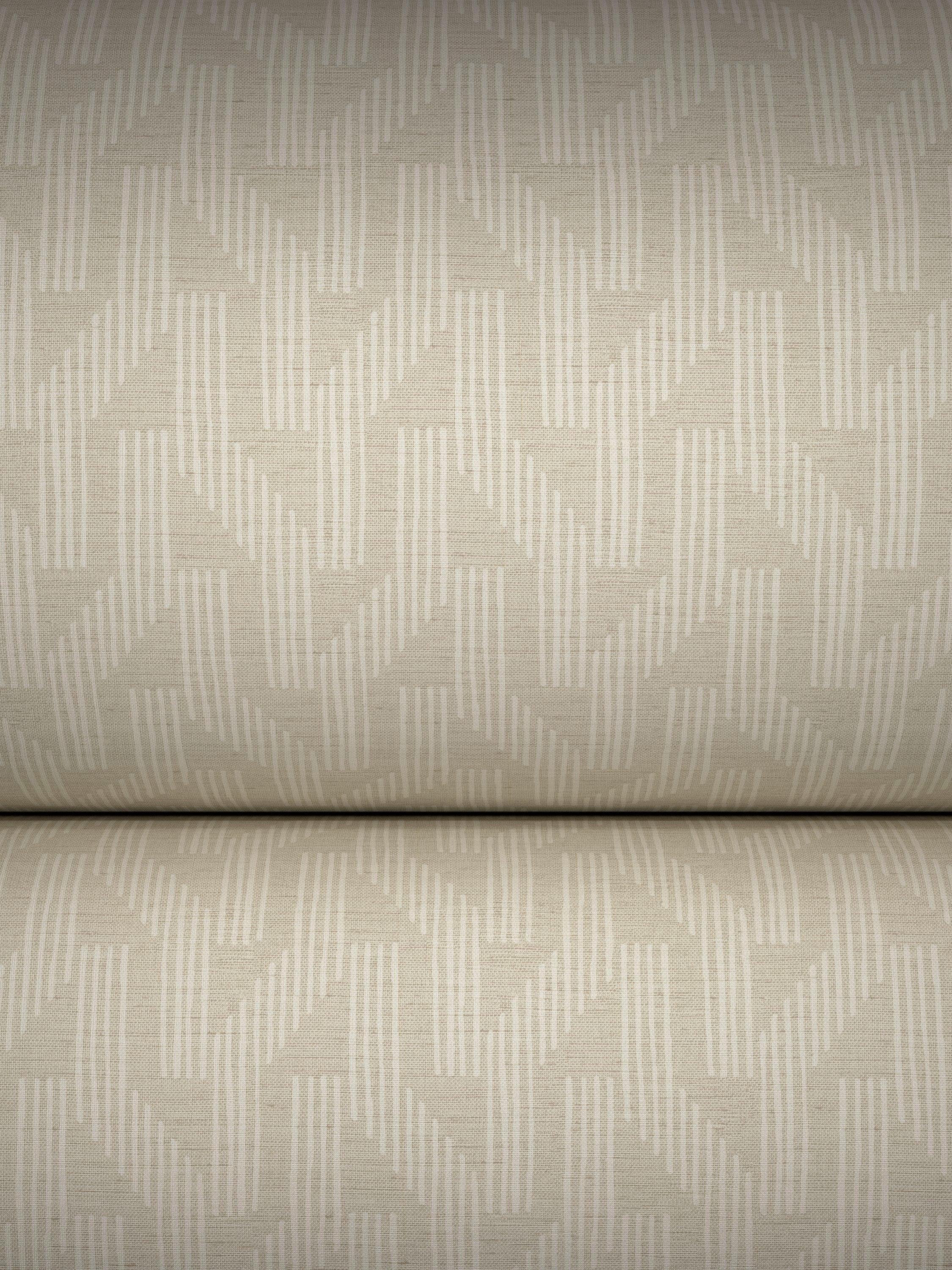 This vinyl wallpaper features a geometric shape with interlocking striped bars.