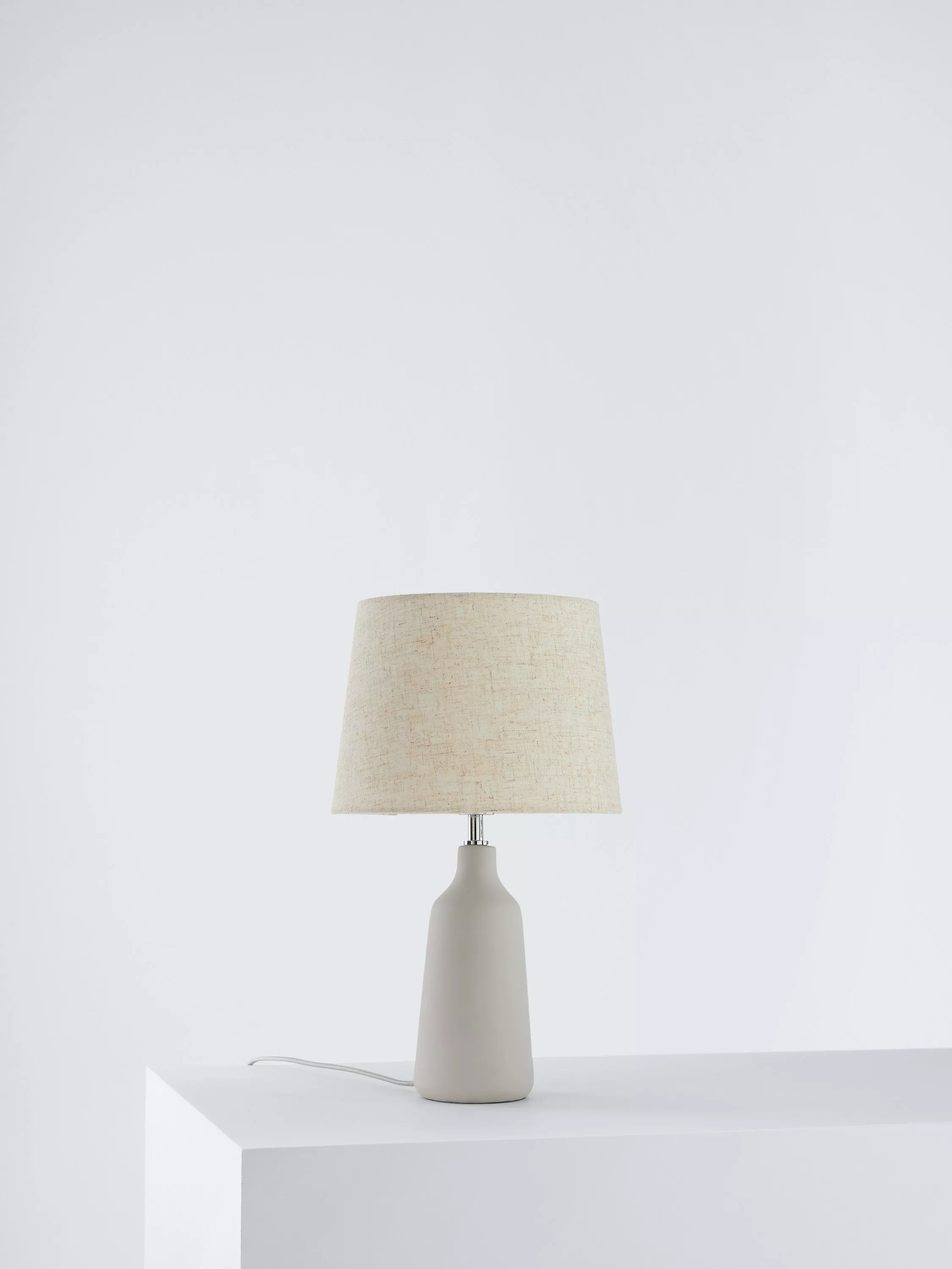 Sporting a clean profile, with a tapered concrete base and natural linen shade, this beautiful table light will lend an elegant look to any home surface. When lit the tapered shade emits a warm glow which provides a contrast to the industrial appearance of the concrete base.