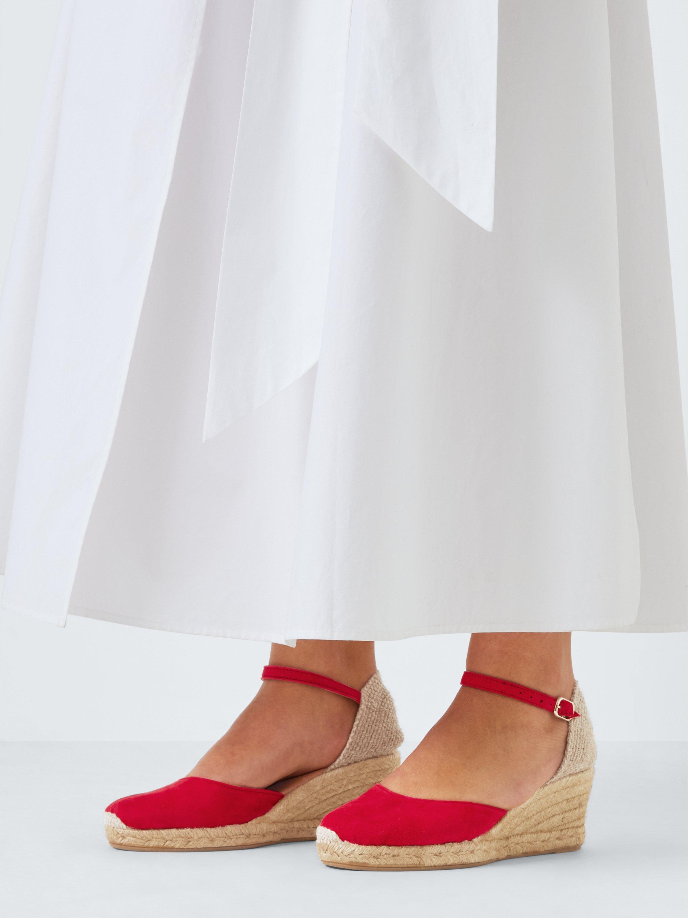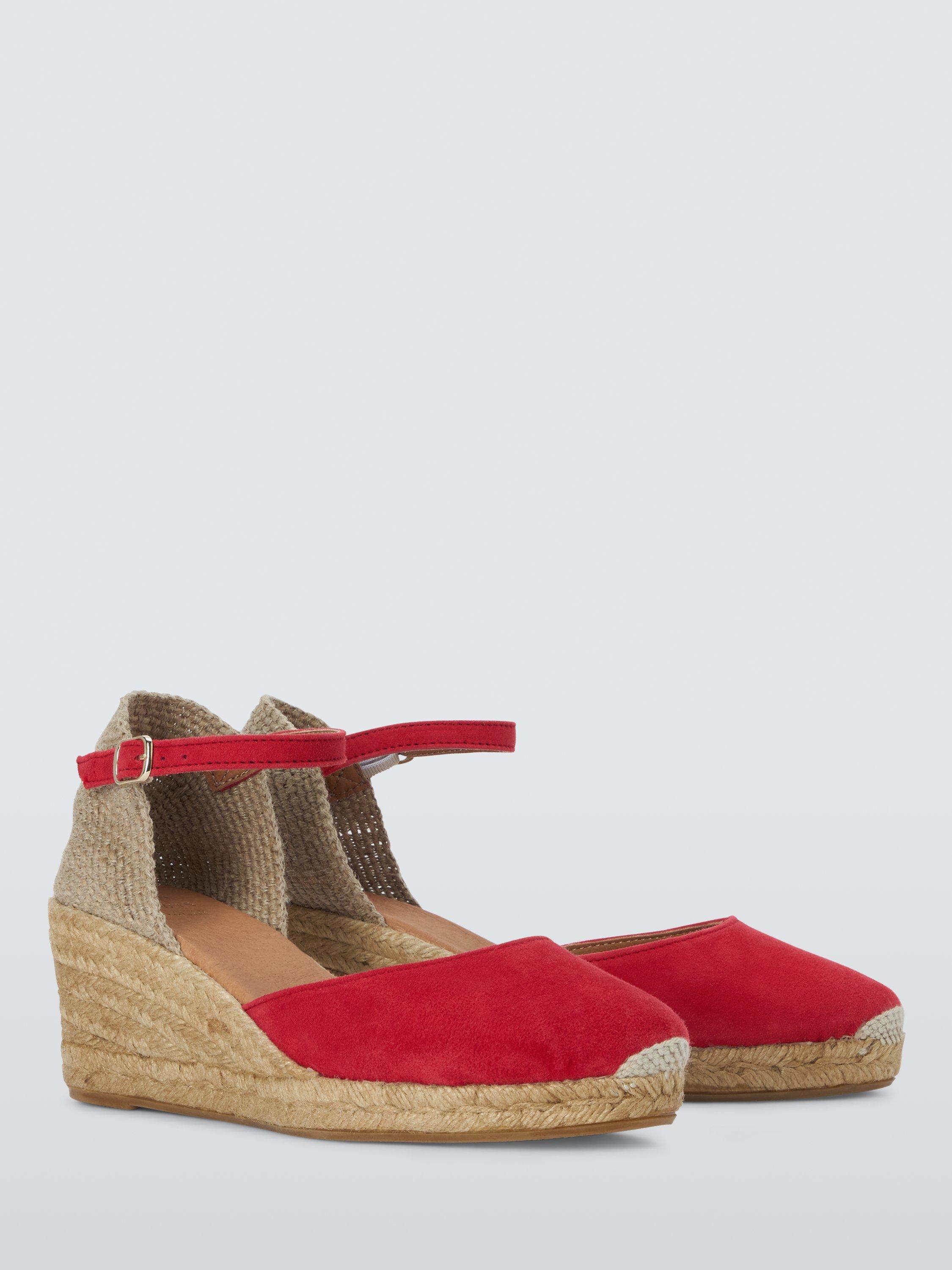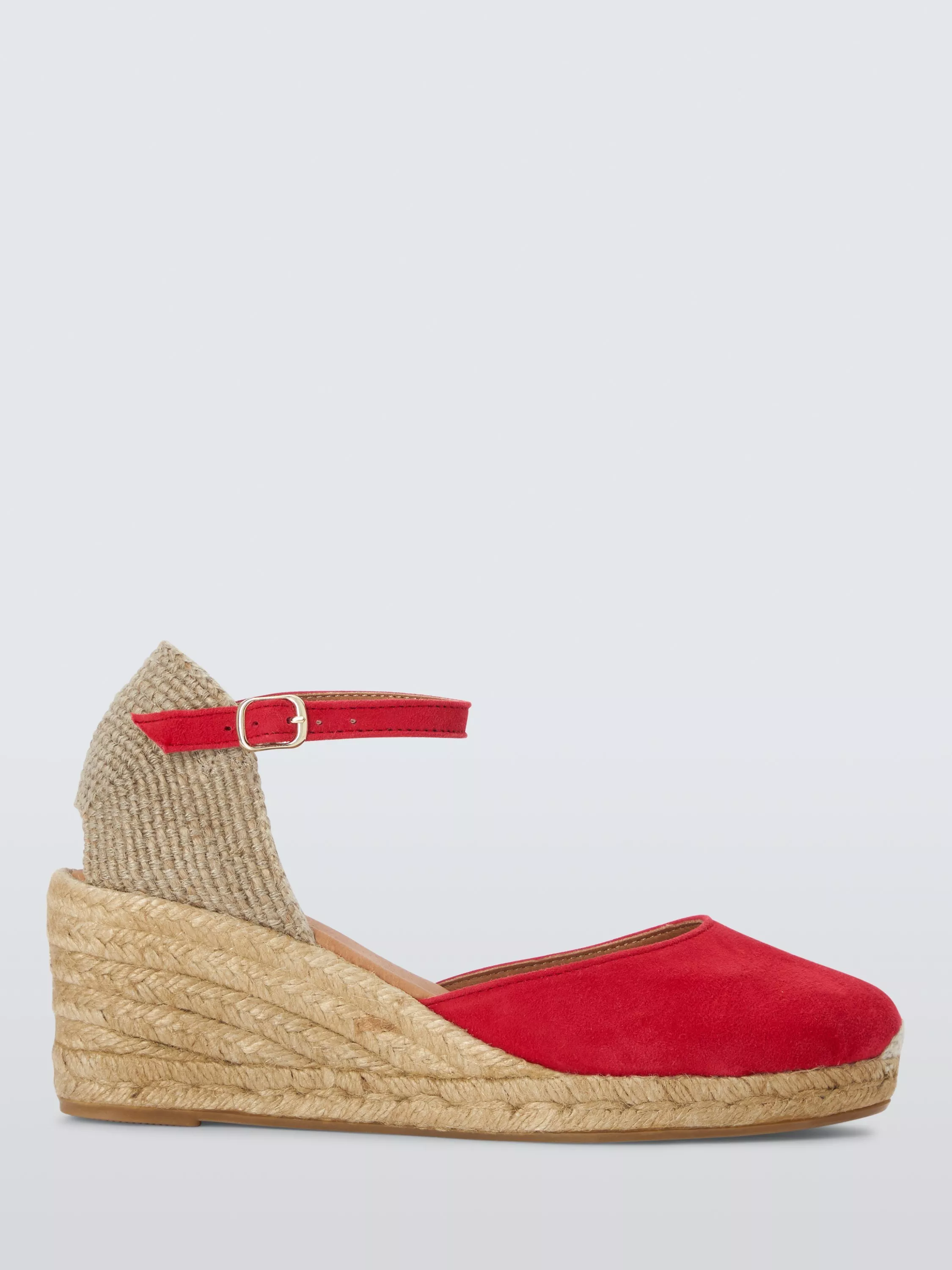 Made in Spain with a wedge sole and a closed toe, they're completed with an adjustable buckled ankle strap for a comfortable fit every time.