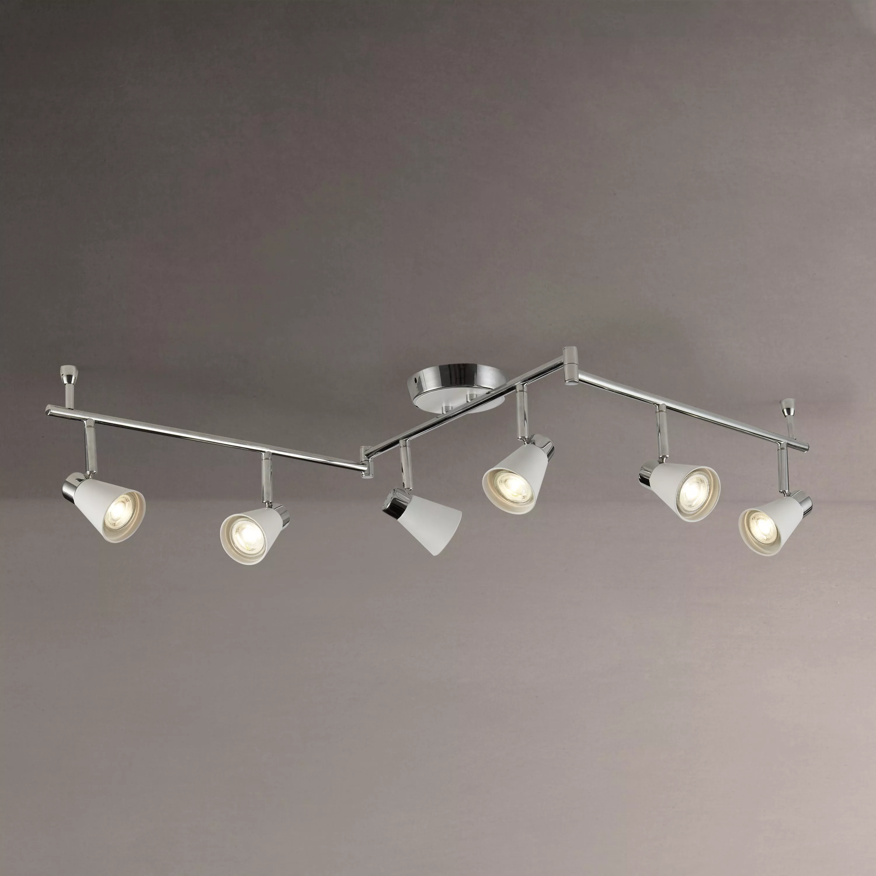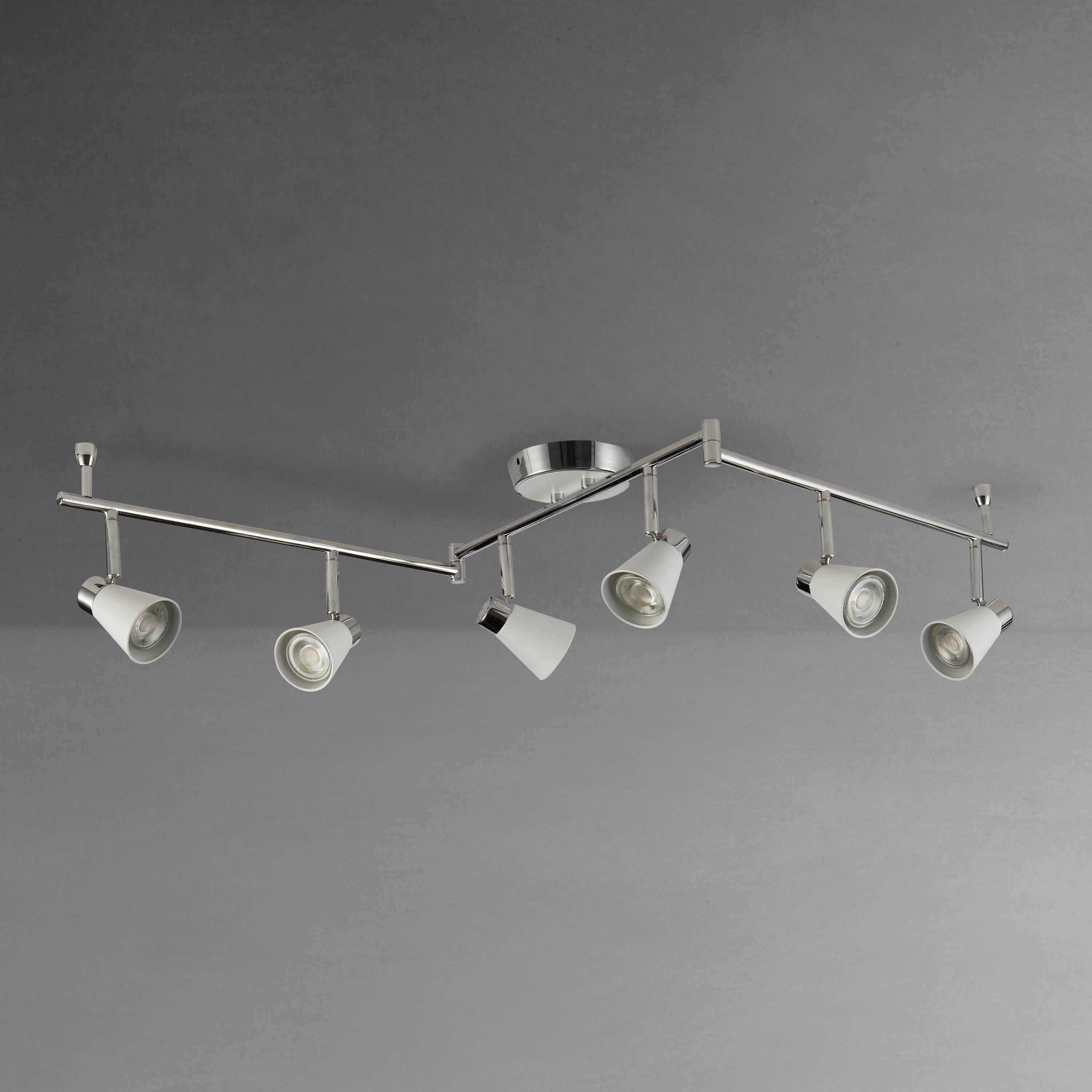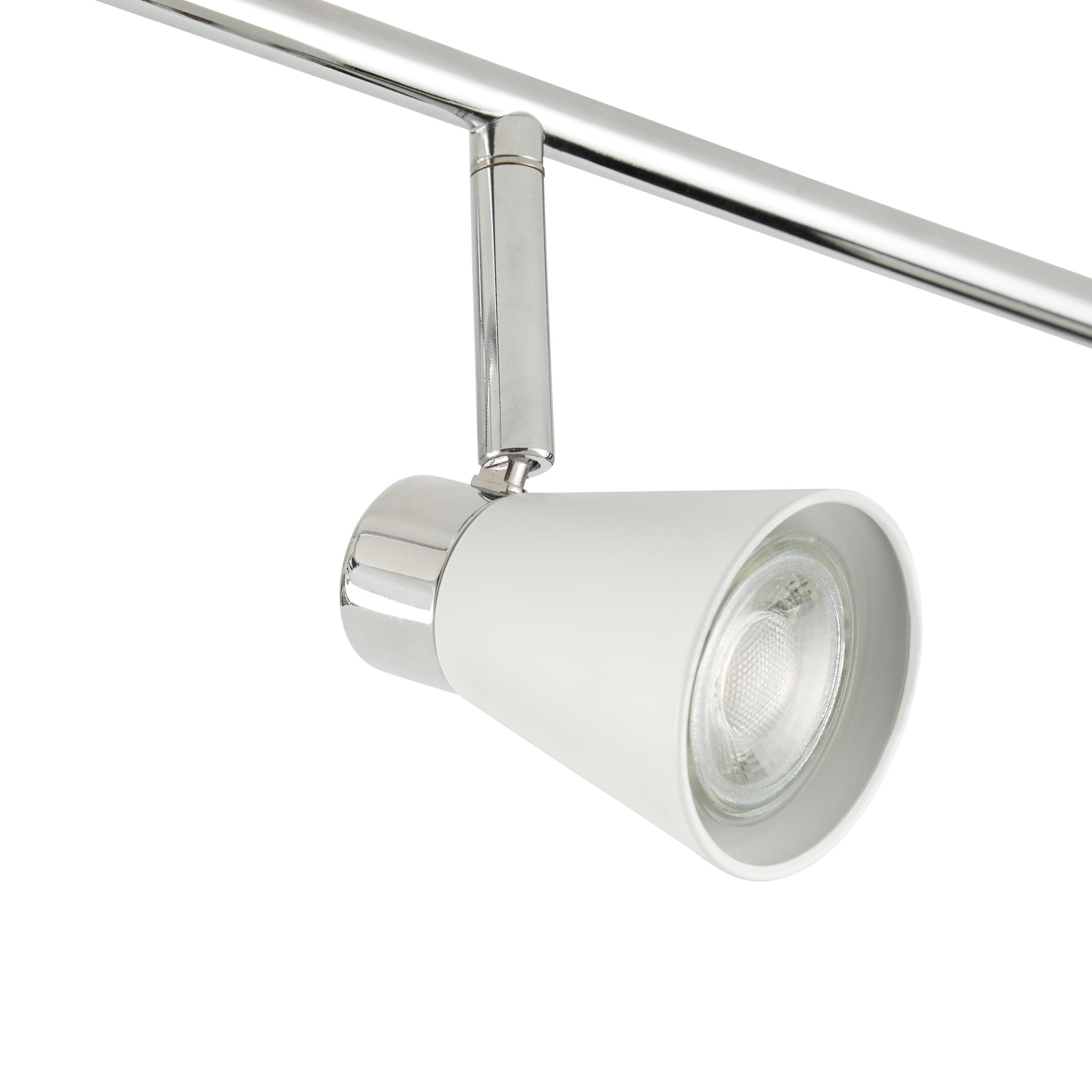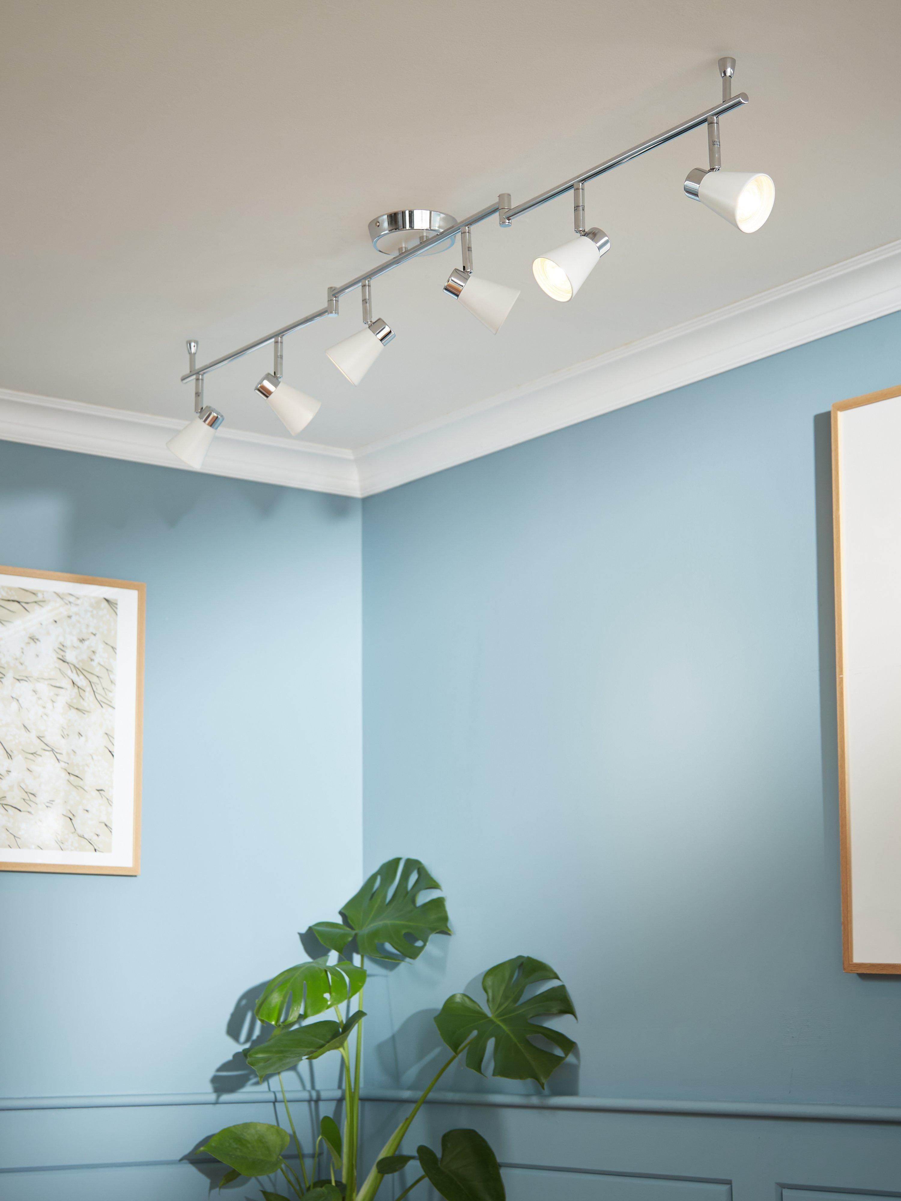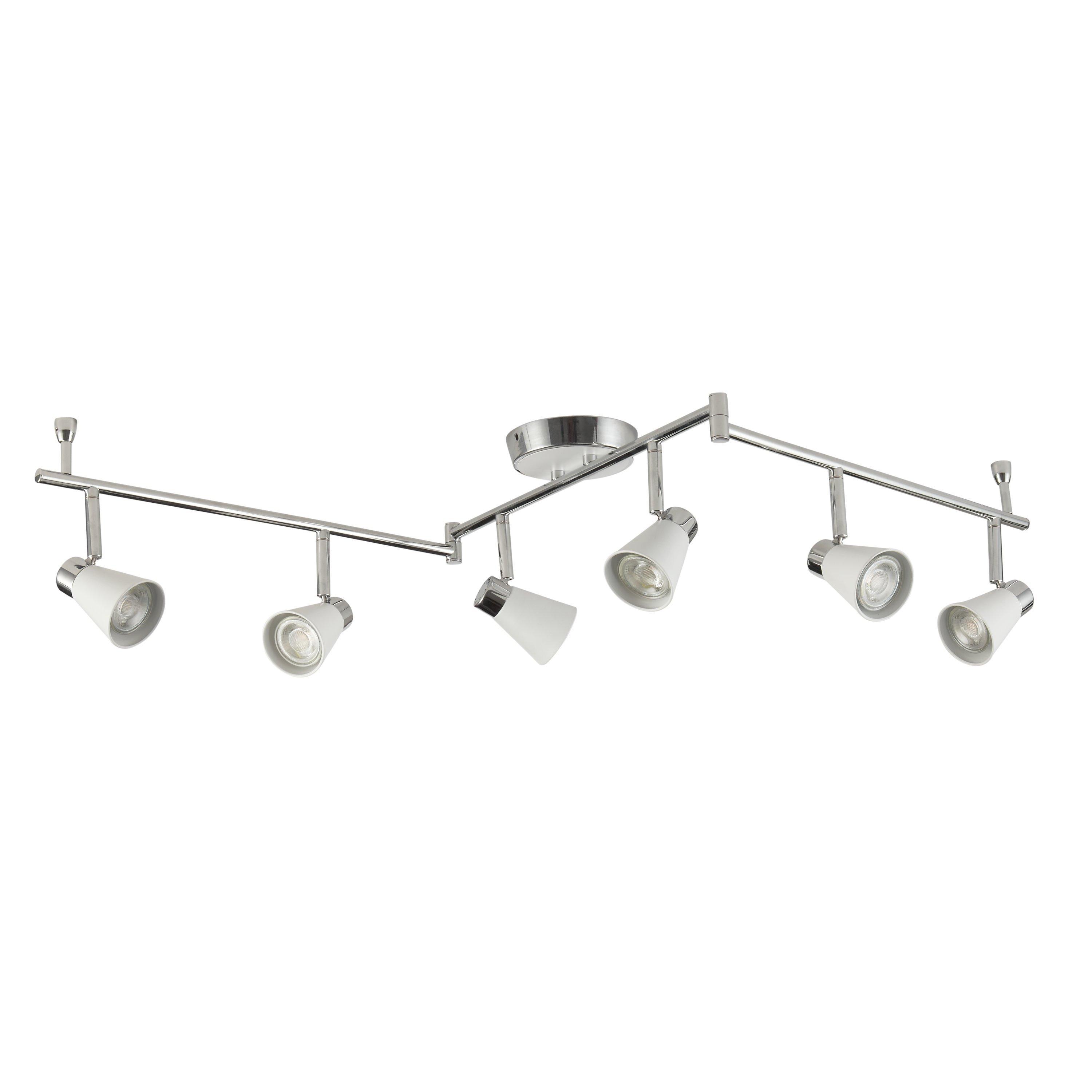 Create a bright lighting effect in your home with our Logan ceiling bar. Boasting sharp angles and clean lines, its contemporary three armed silhouette houses 6 energy efficient LEDs that will dispel a warm white glow. The matt painted shades complement the chrome finish of this semi-flush fitting, making it versatile to suit both traditional and modern interior settings.