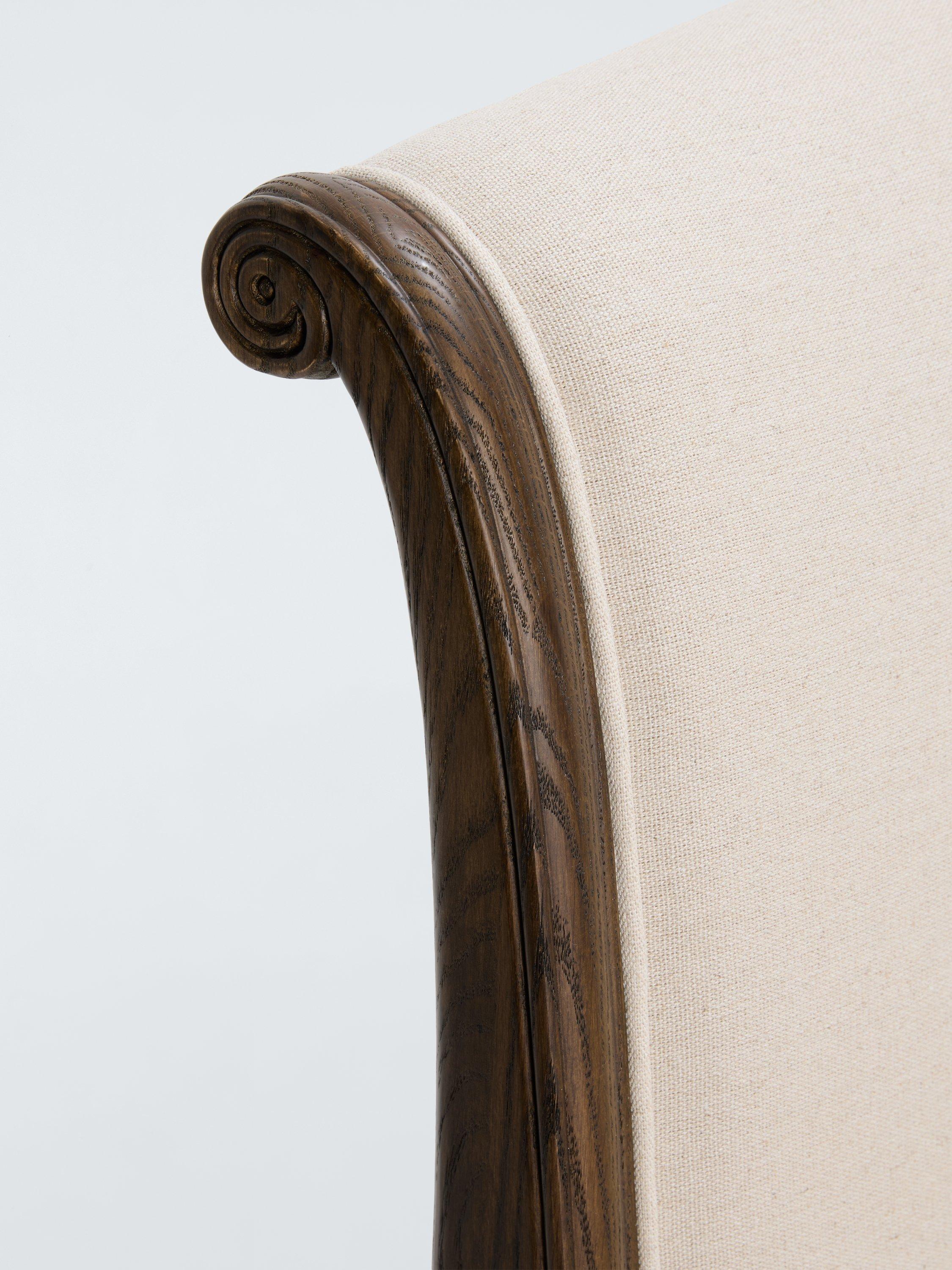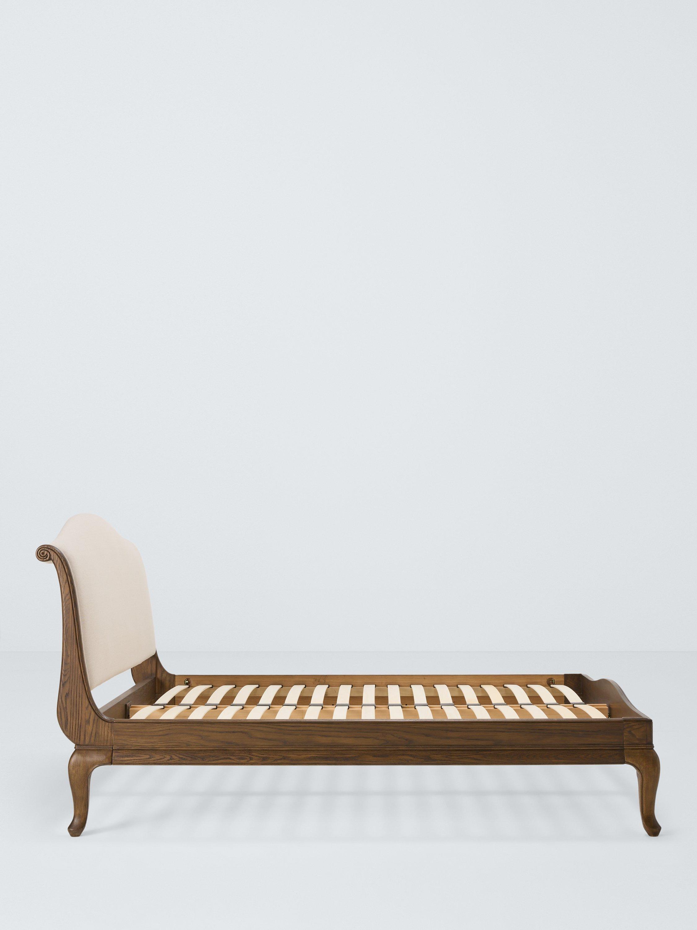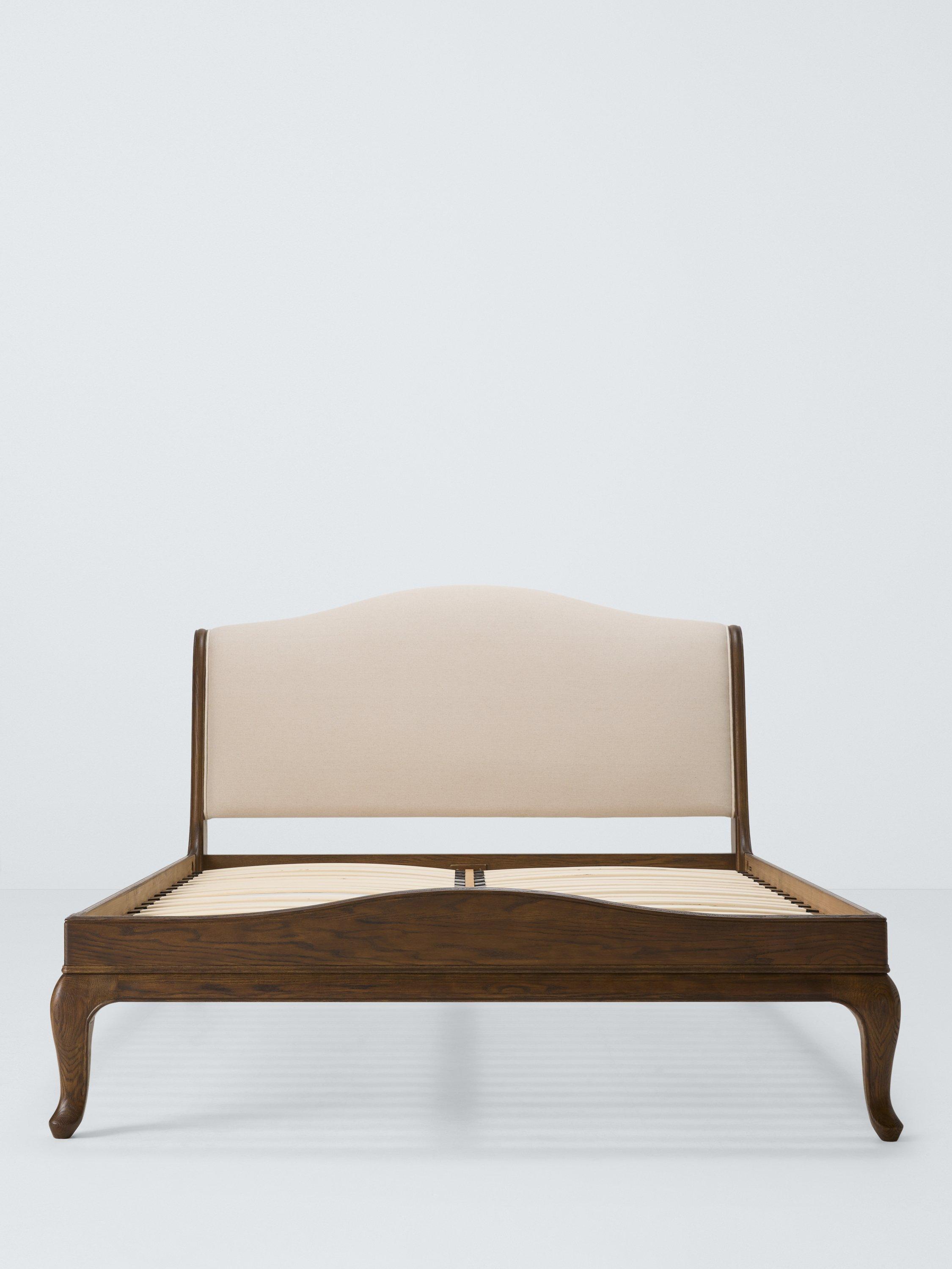 Craftsmanship at its finest. With an air of classical nostalgia, our Louis bed frame is made from solid white oak in a natural lacquer. Its weathered finish brings out the warmth of the wood and highlights its distinctive grains and tones. Handcrafted carvings on the frame honour its authentic period style and complement the fabric upholstery on the headboard. We've also added supportive sprung slats to the base. It's all the little details that help to make this bed frame a focal point in your bedroom.