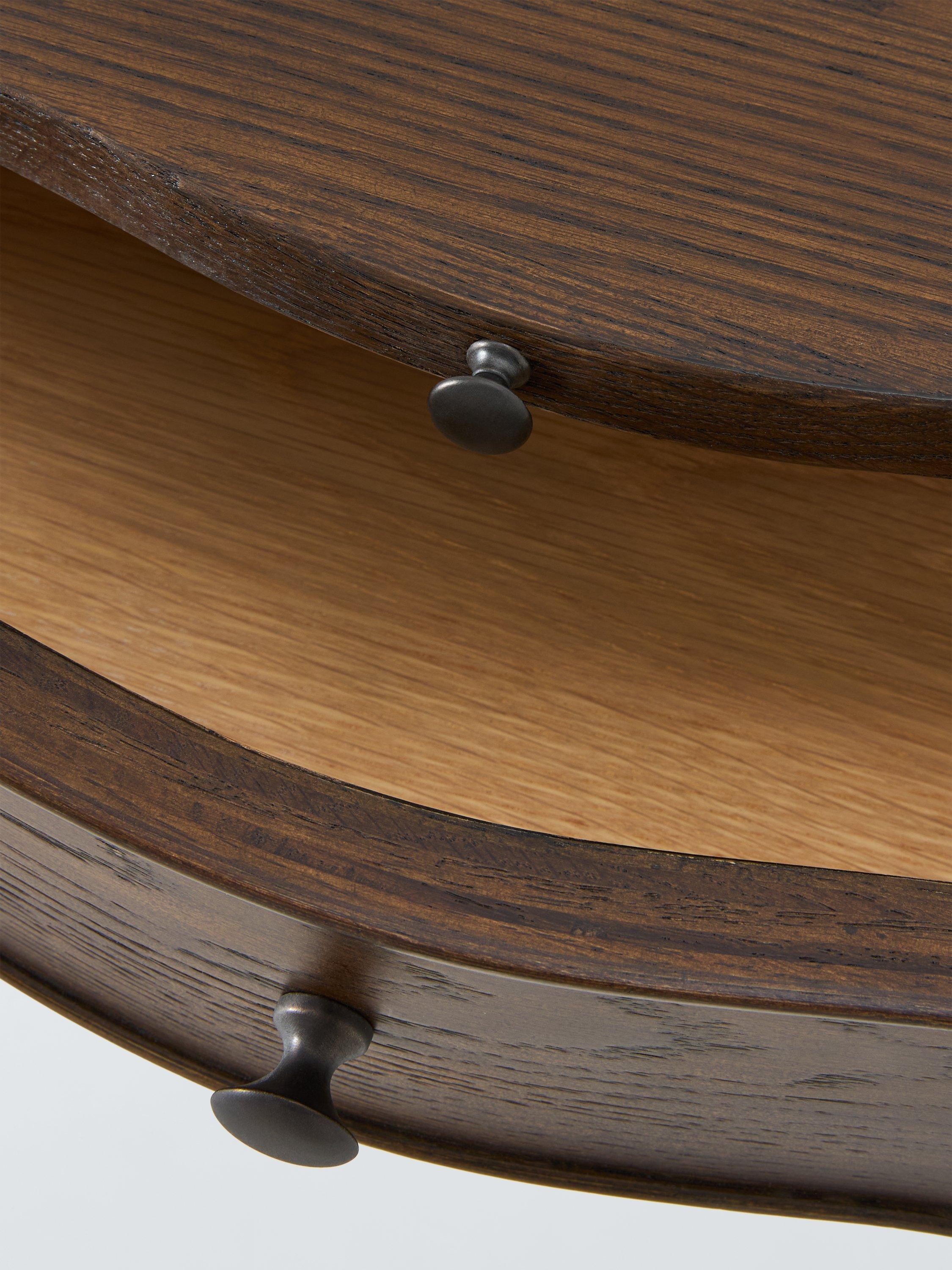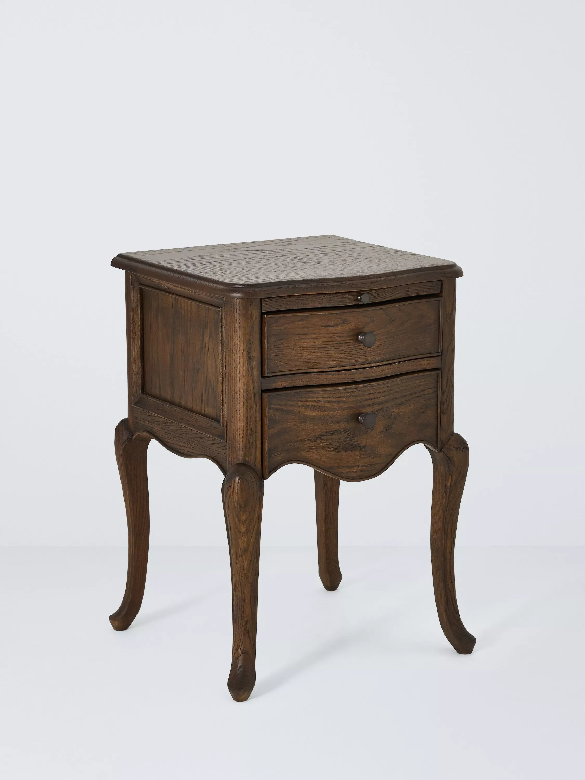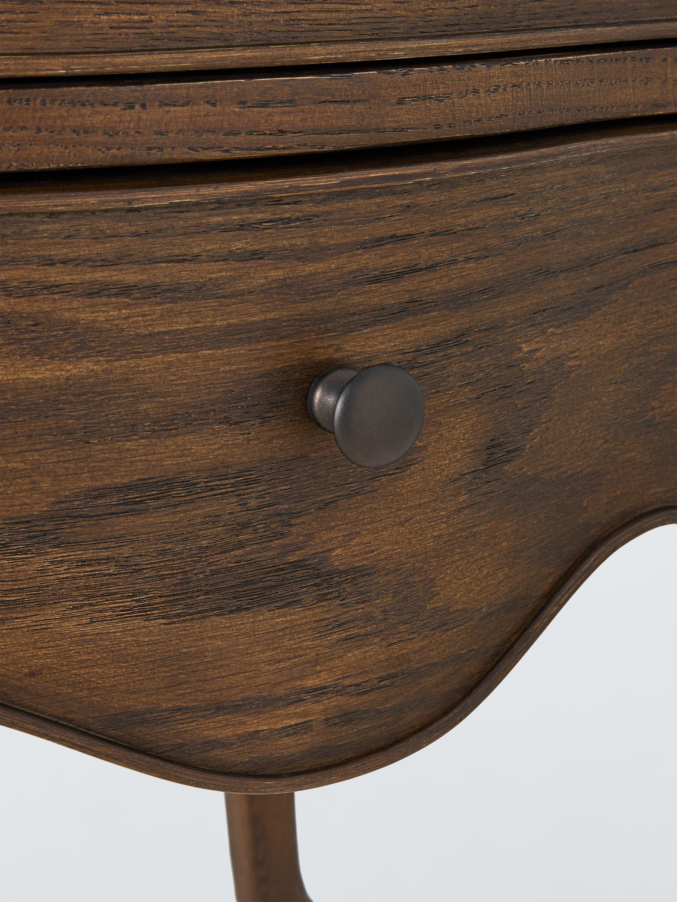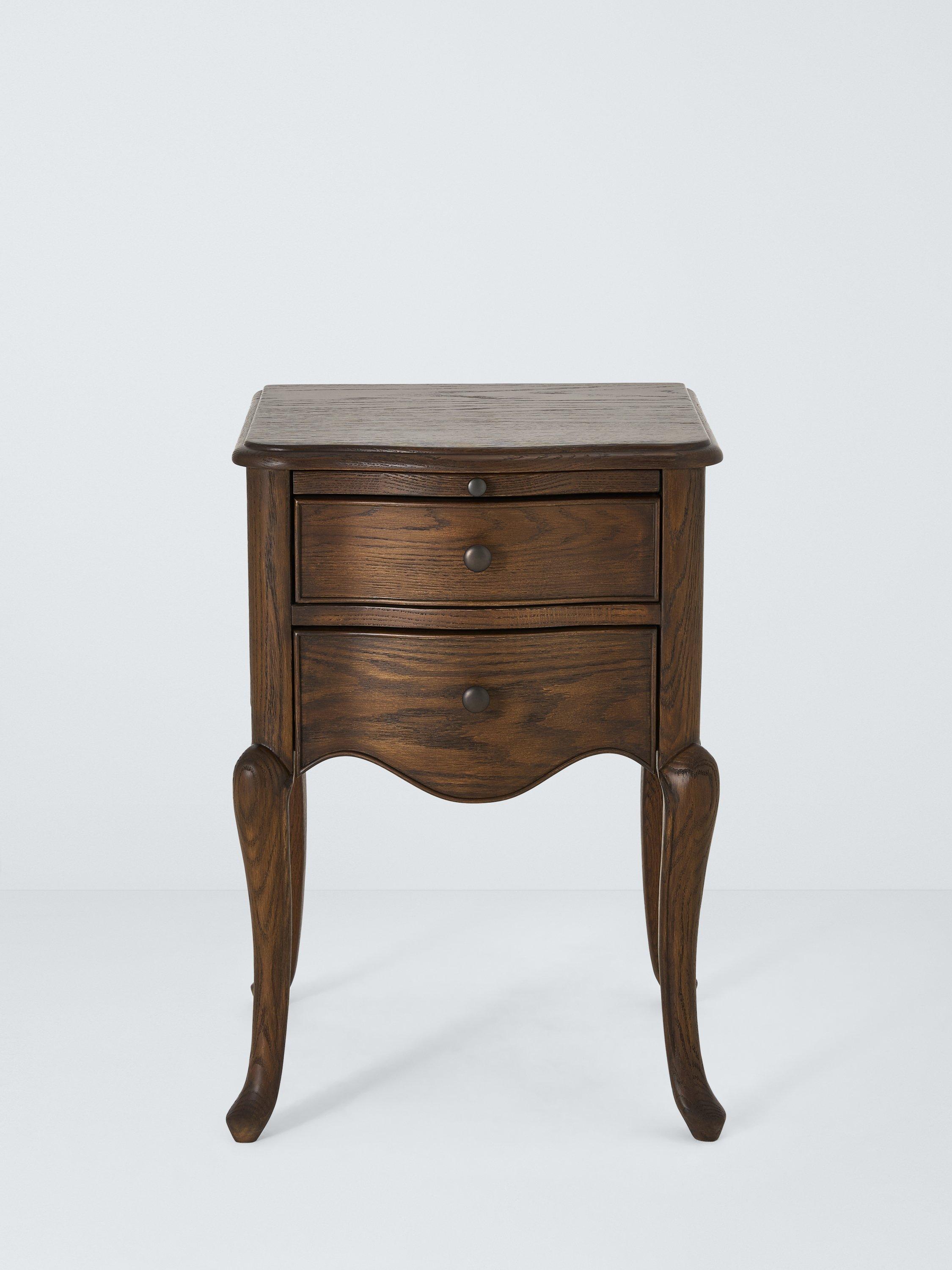 It's made using traditional joinery techniques, with turned legs and a decorative curve in the frame to honour its revival aesthetic. And with two drawers, it offers just the right amount of space for your bedside bits and bobs.
