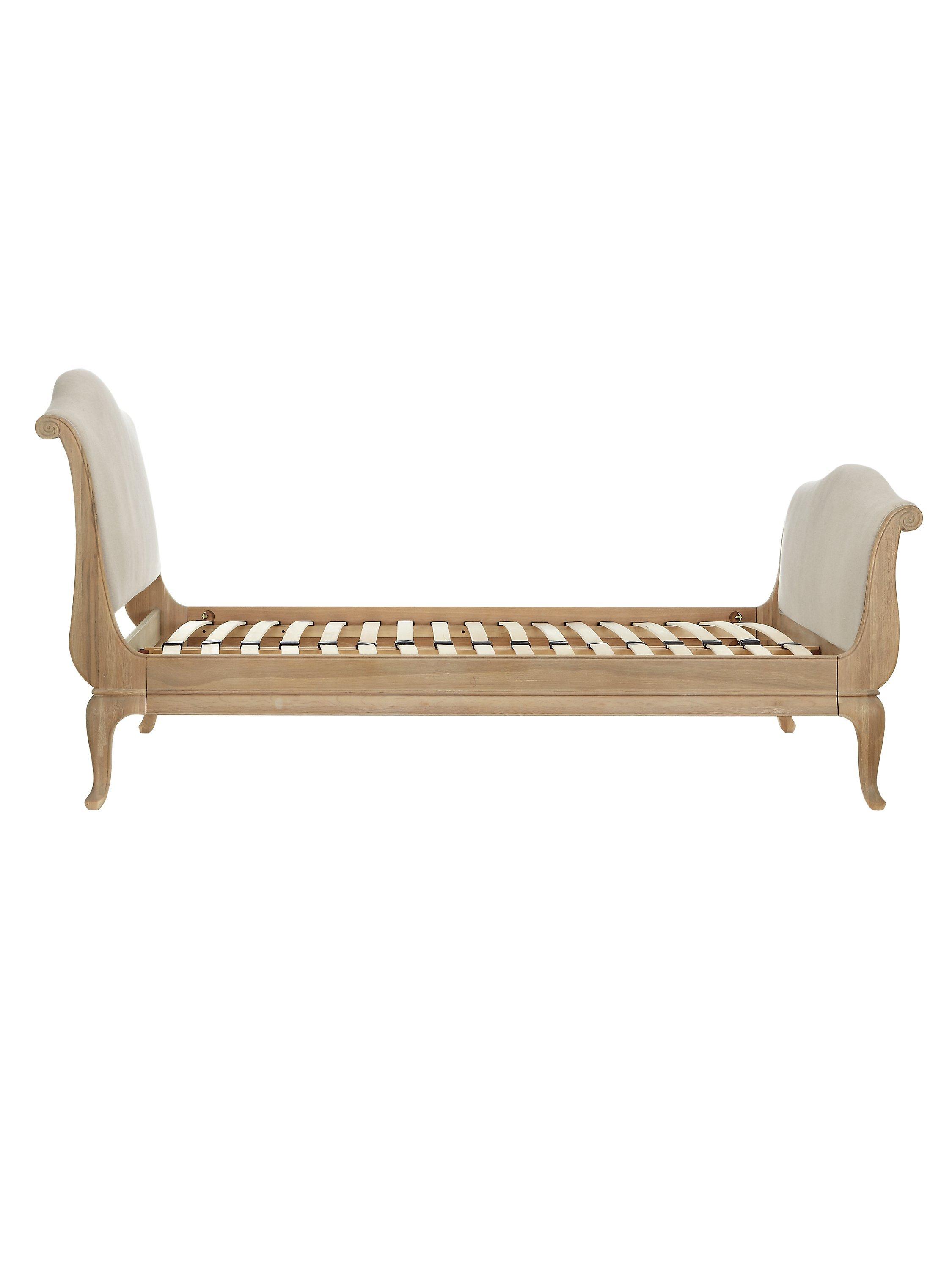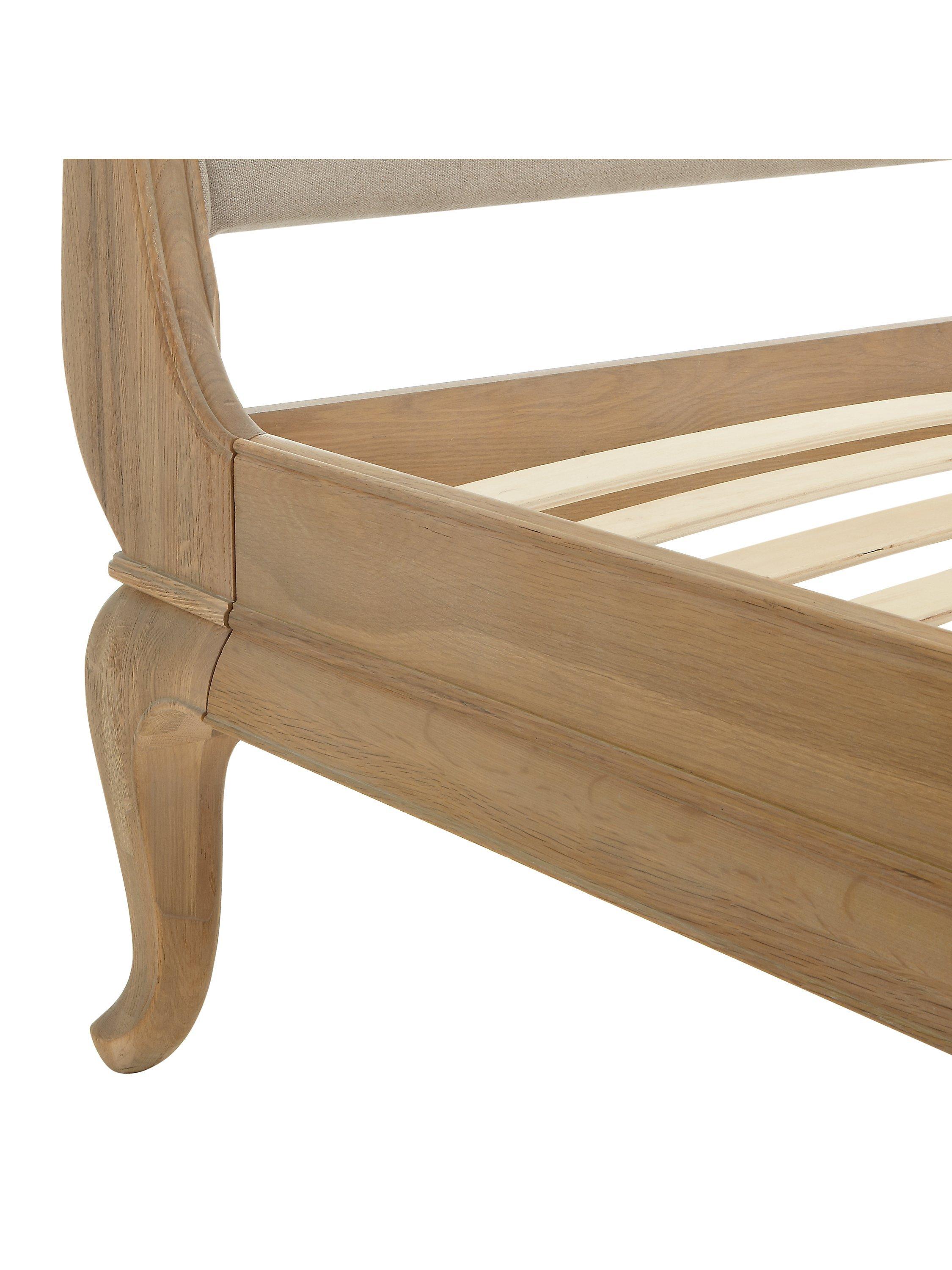 Craftsmanship at its finest. With an air of classical nostalgia, our Louis high end bed frame is made from solid white oak in a natural lacquer and made using traditional joinery techniques. Its aged finish brings out the varying patterns and warm tones of the wood and upholstery on the headboard and foot end honours an authentic period style. We've also added supportive sprung slats to the base. It's all the little details that help to make this bed frame a focal point in your bedroom.