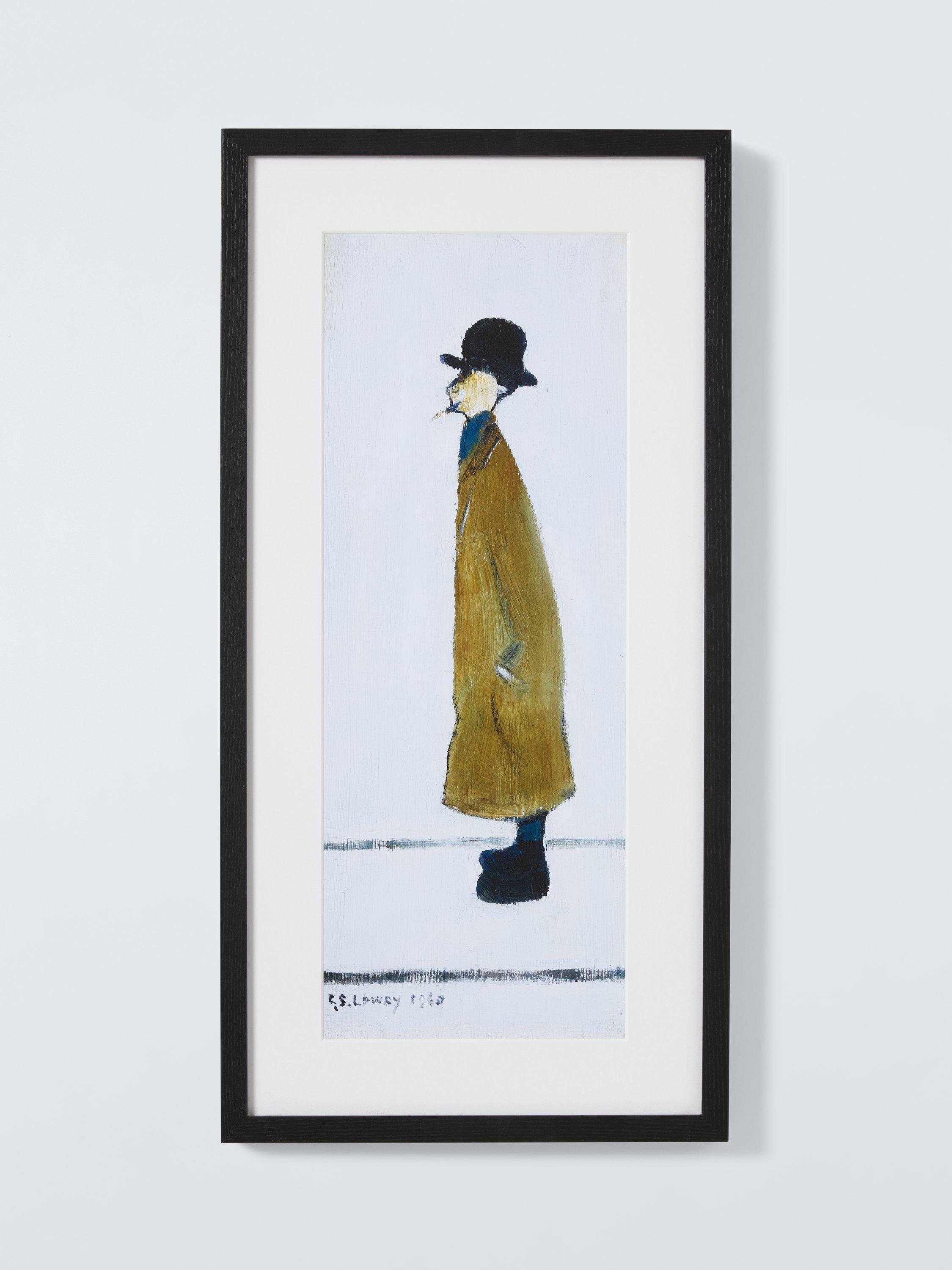 A reproduction of British painter Lowry's 1960 work 'Gentleman'. Lowry was insistent this gentleman was based on the real characters he saw on the streets of Greater Manchester. Colour-matched to the original painting by The Lowry gallery, Salford. Made in the UK and presented with a window mount in a museum-quality stained ash wood frame, ready to hang on your wall.