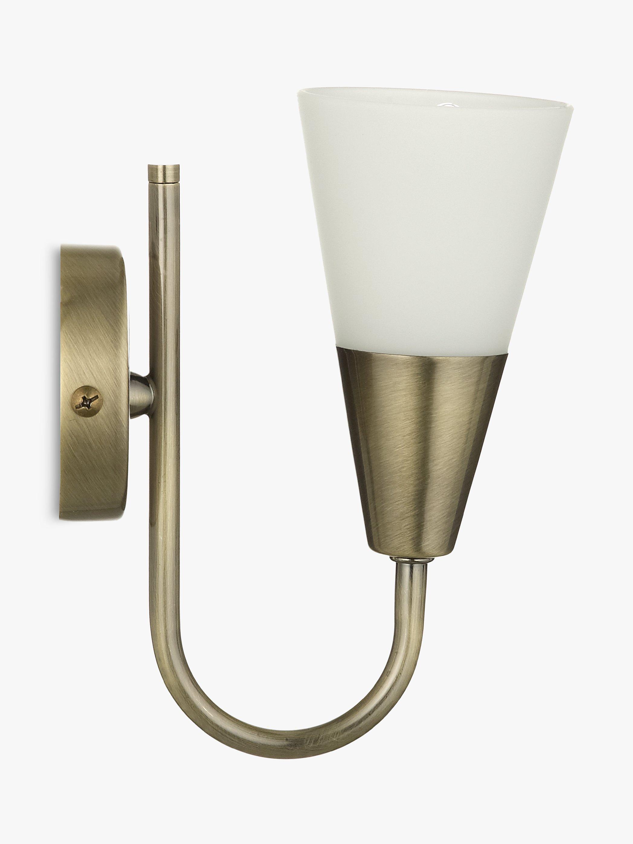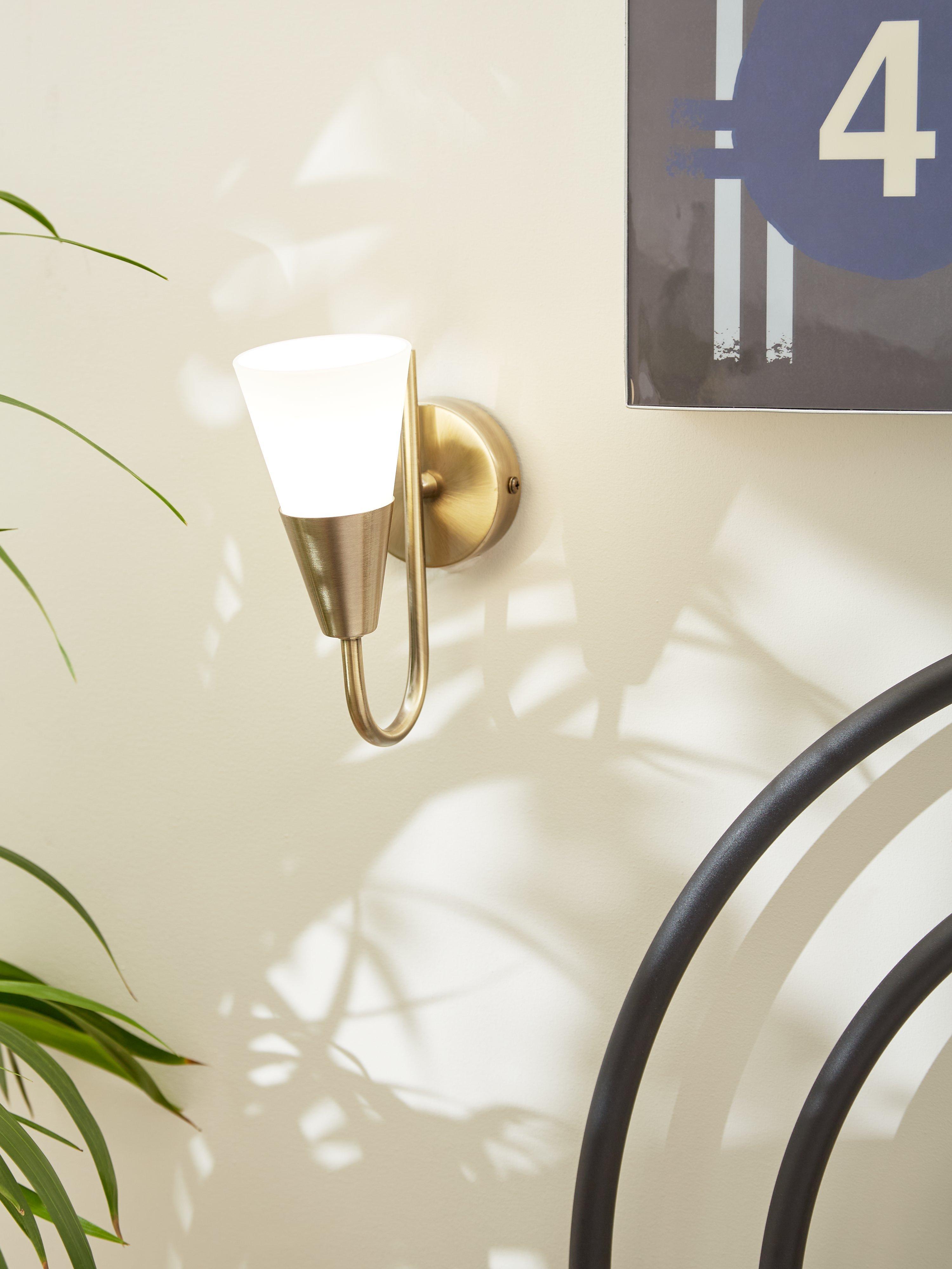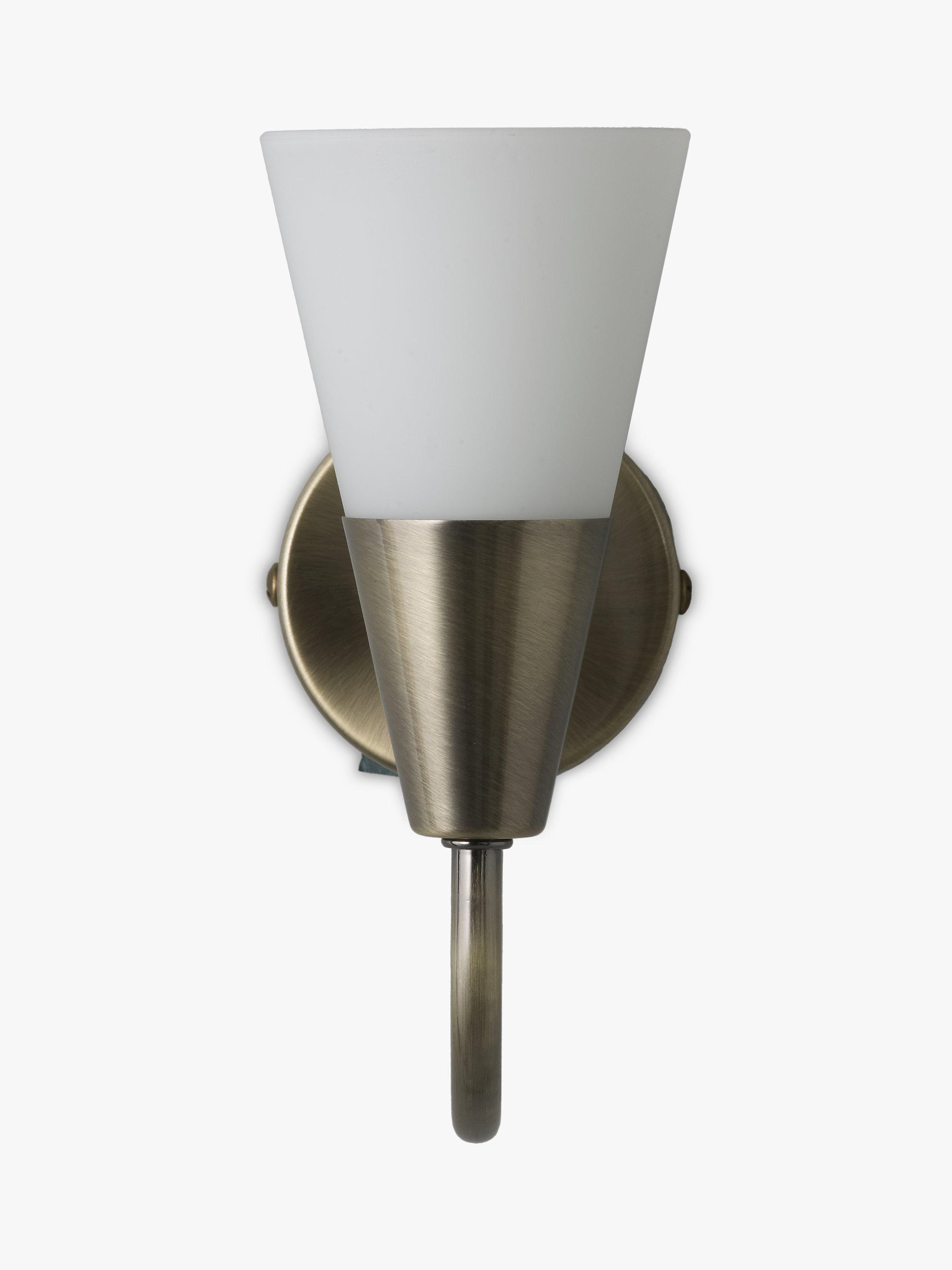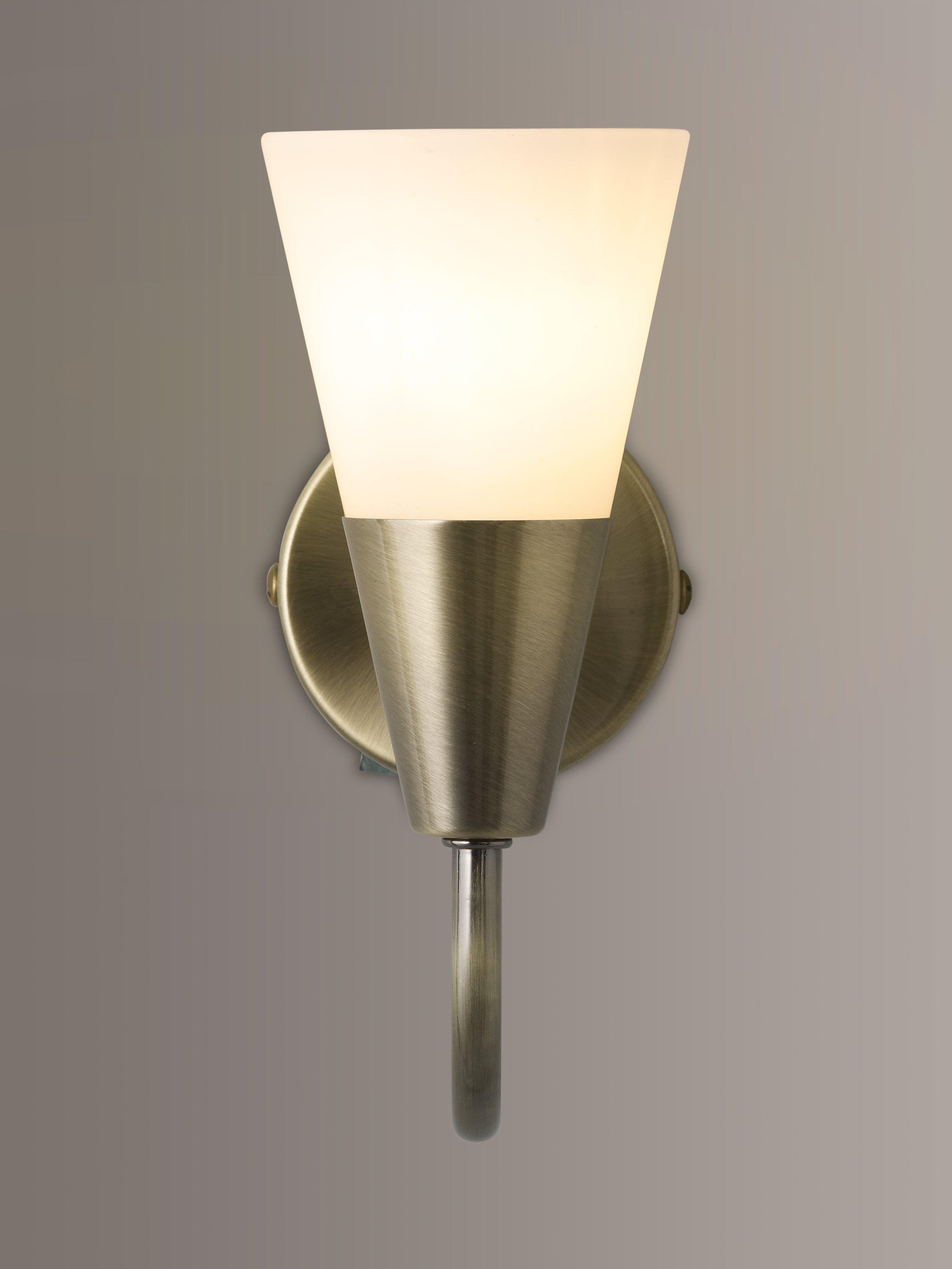This excellent value, single-arm wall light is made with a frosted glass, cone-shaped shade, creating a warm wash of light. Available in a choice of finishes.