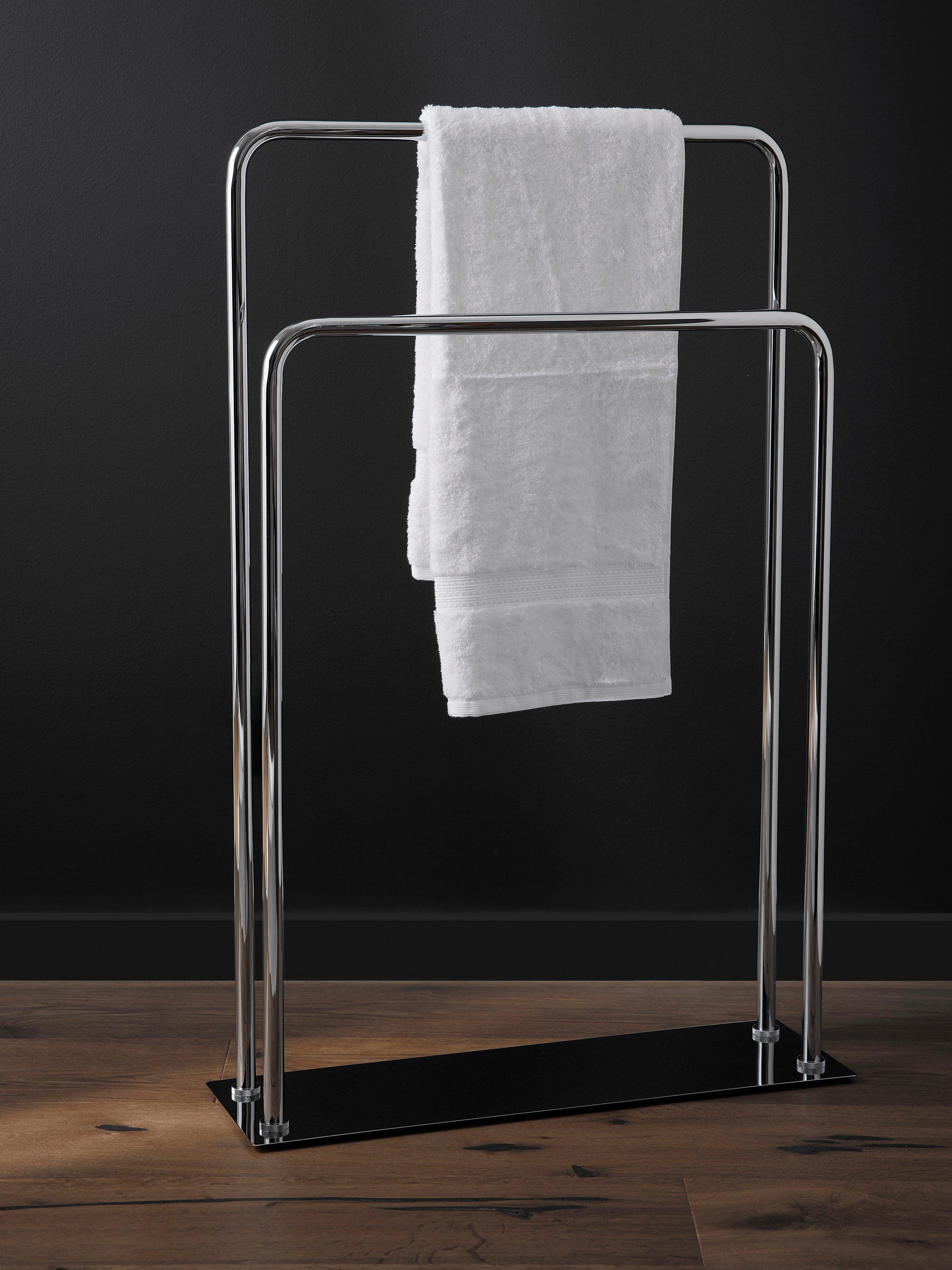 Simple and minimalist, our 2 tier Lux towel stand was designed in Sweden, which is why it has the clean lines and functional Scandinavian look to it. Easy to miss, it's knurled around the bolts at the feet of each tier, giving a beautiful patterned texture and subtle design points.