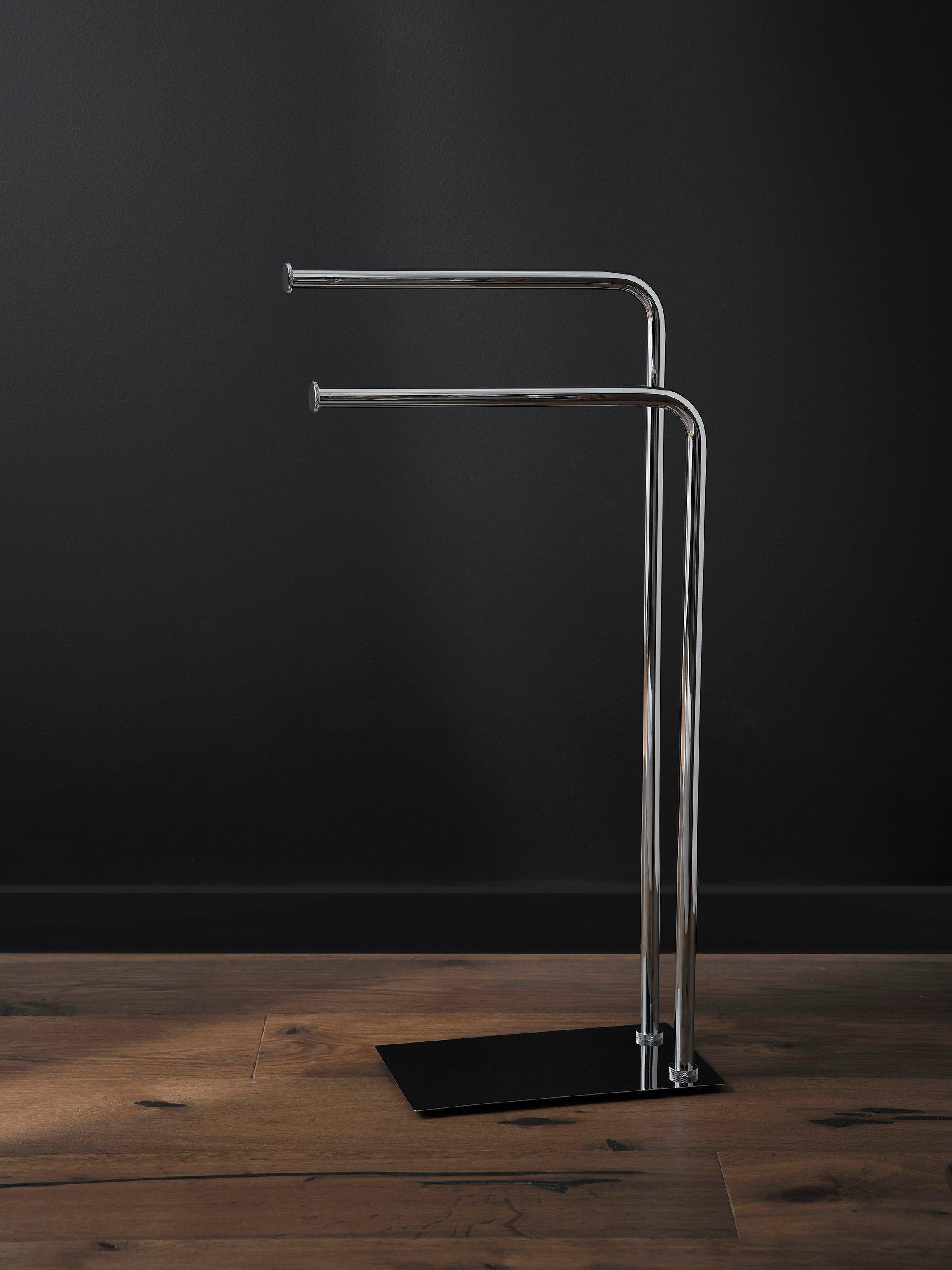 Simple and minimalist, our 2 tier Lux towel stand was designed in Sweden, which is why it has the clean lines and functional Scandinavian look to it. Easy to miss, it's knurled around the bolts at the end of each prong, giving a beautiful patterned texture and subtle design points.
