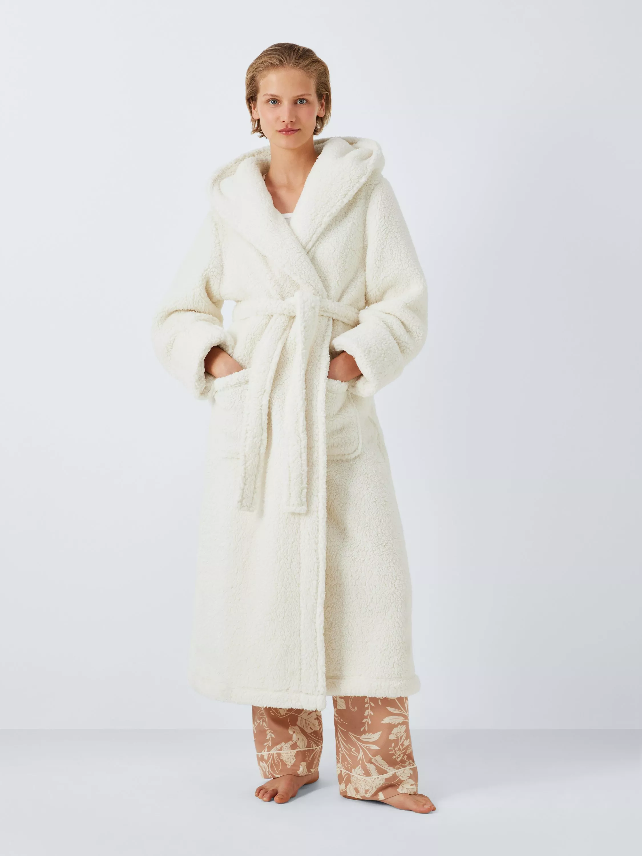 A dressing gown so soft and cosy you'll wish you could wear it out. Made in a warming lux borg fabric that's super snug, this dressing gown comes in a simple wrap-over style with two patch pockets for stashing the essentials (aka biscuits).