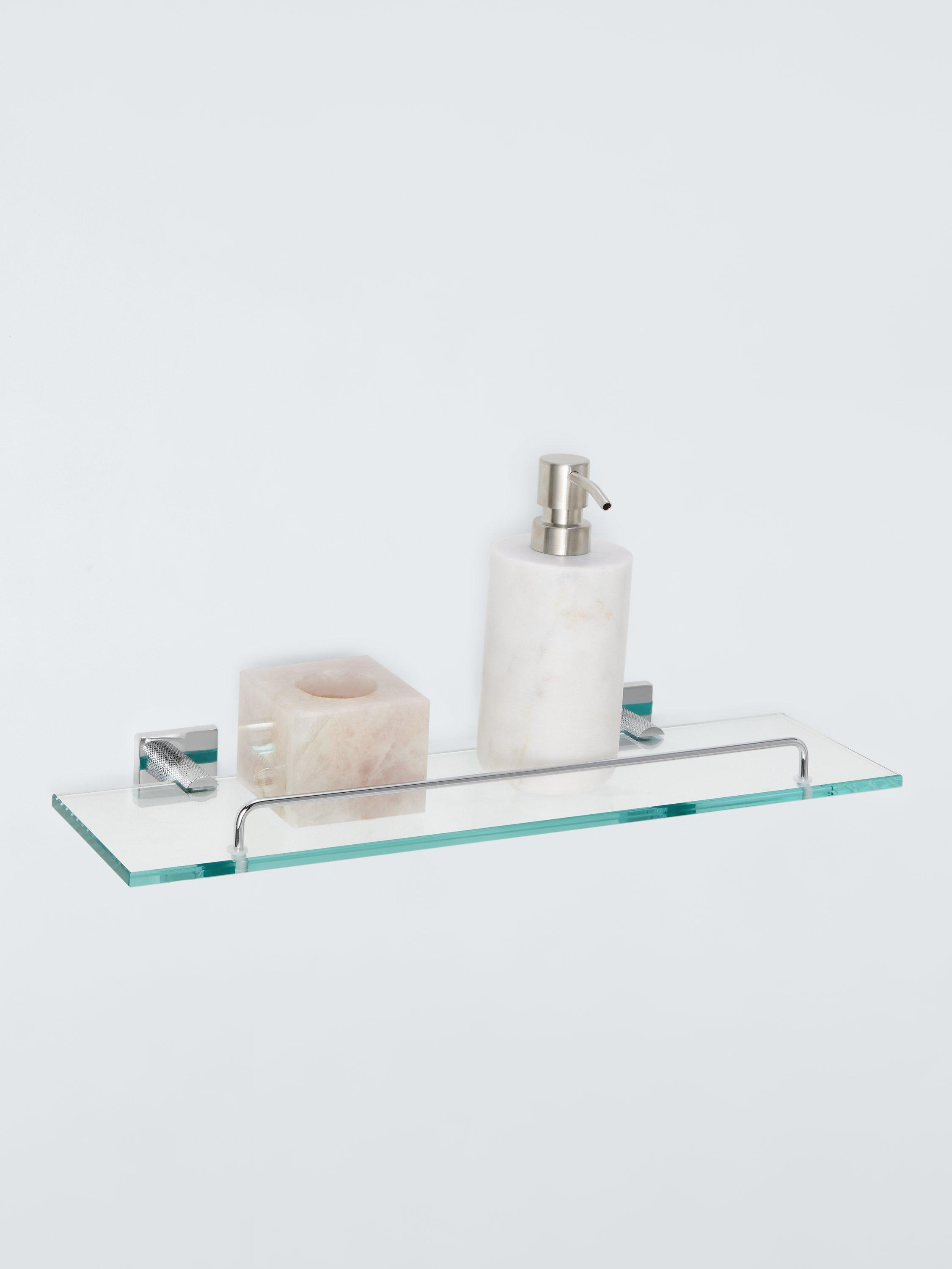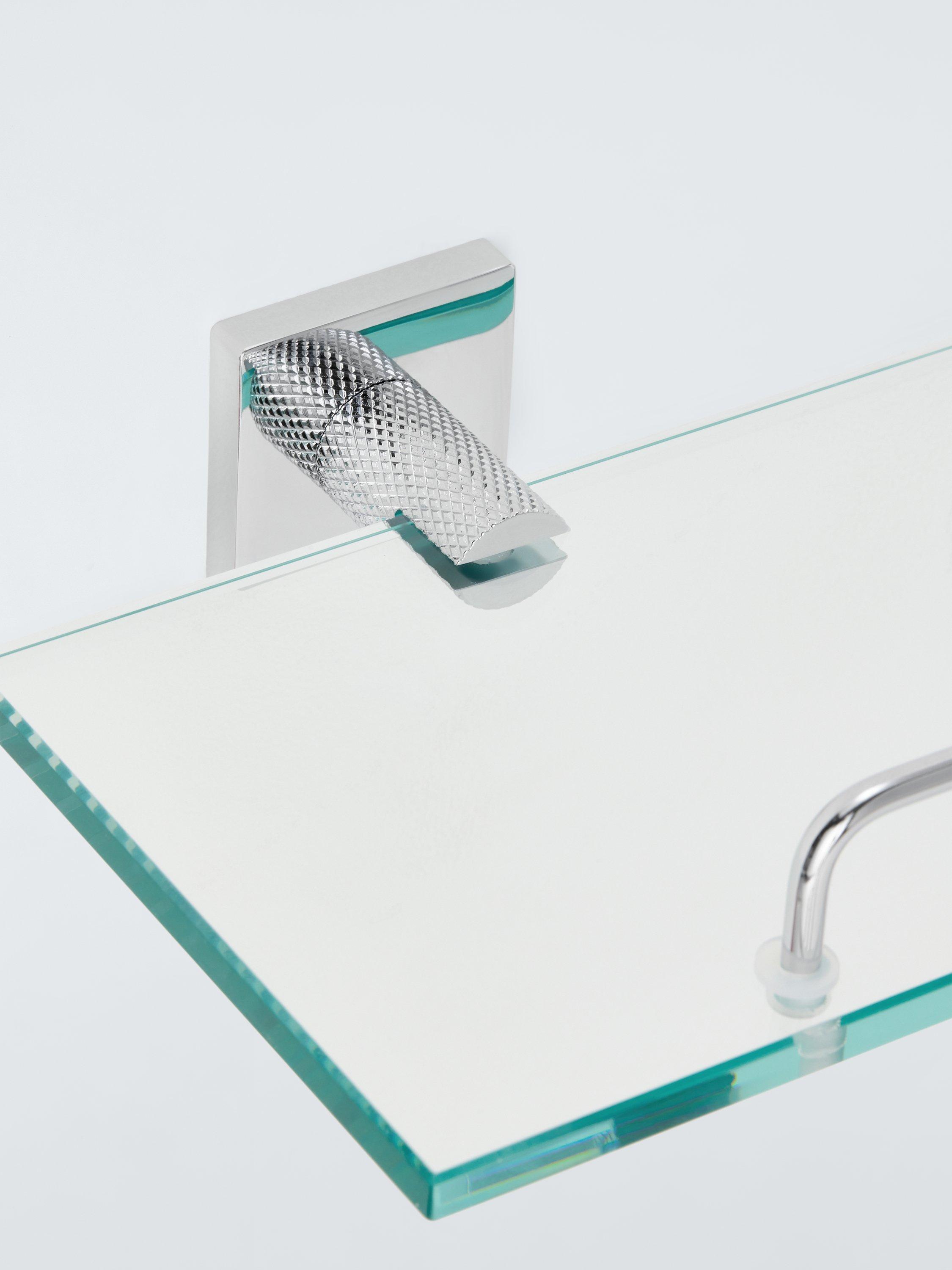 Designed in Sweden, with a focus on clean lines and functionality, the knurling detail adds a beautiful finishing touch to this glass shelf.