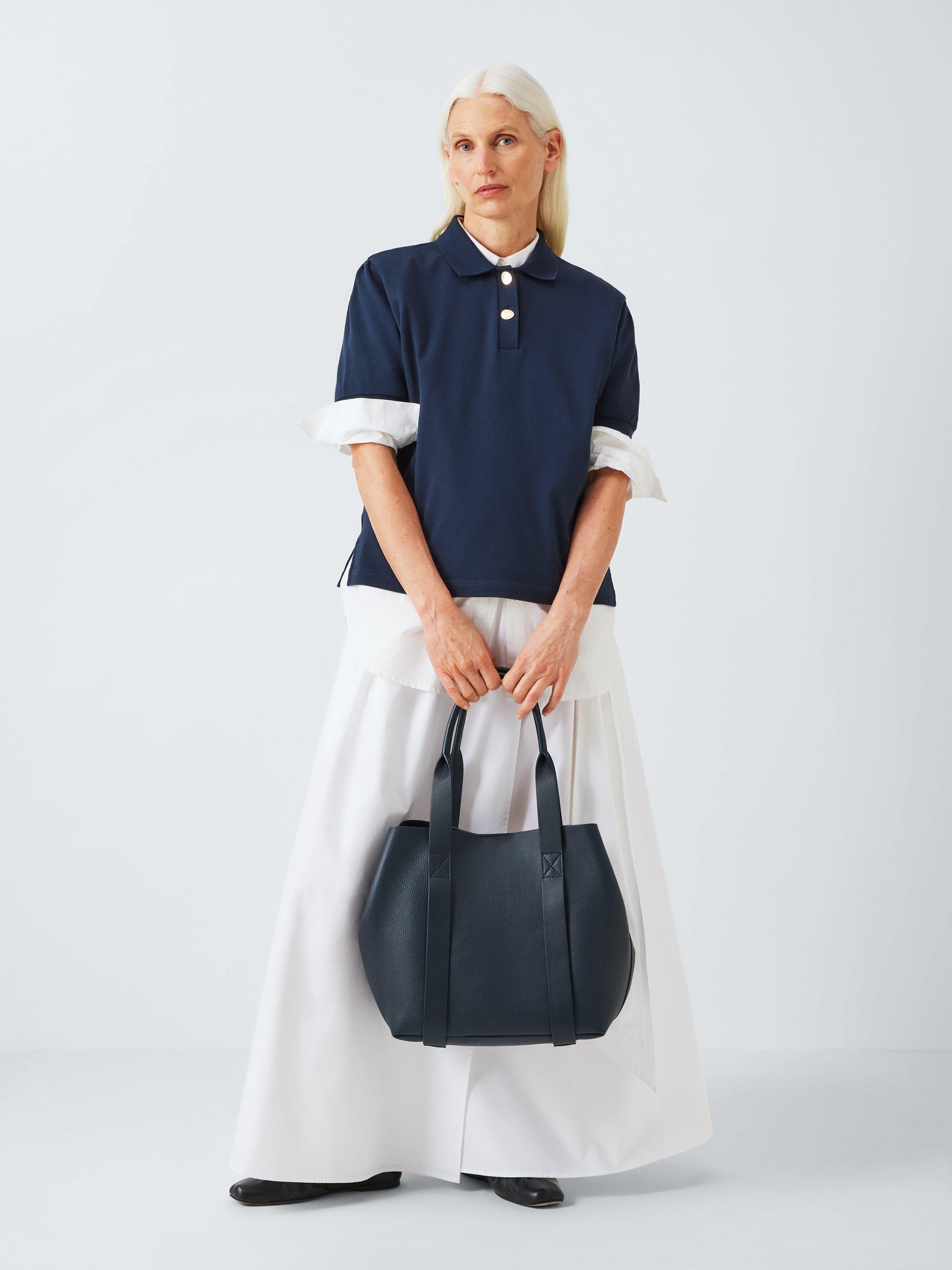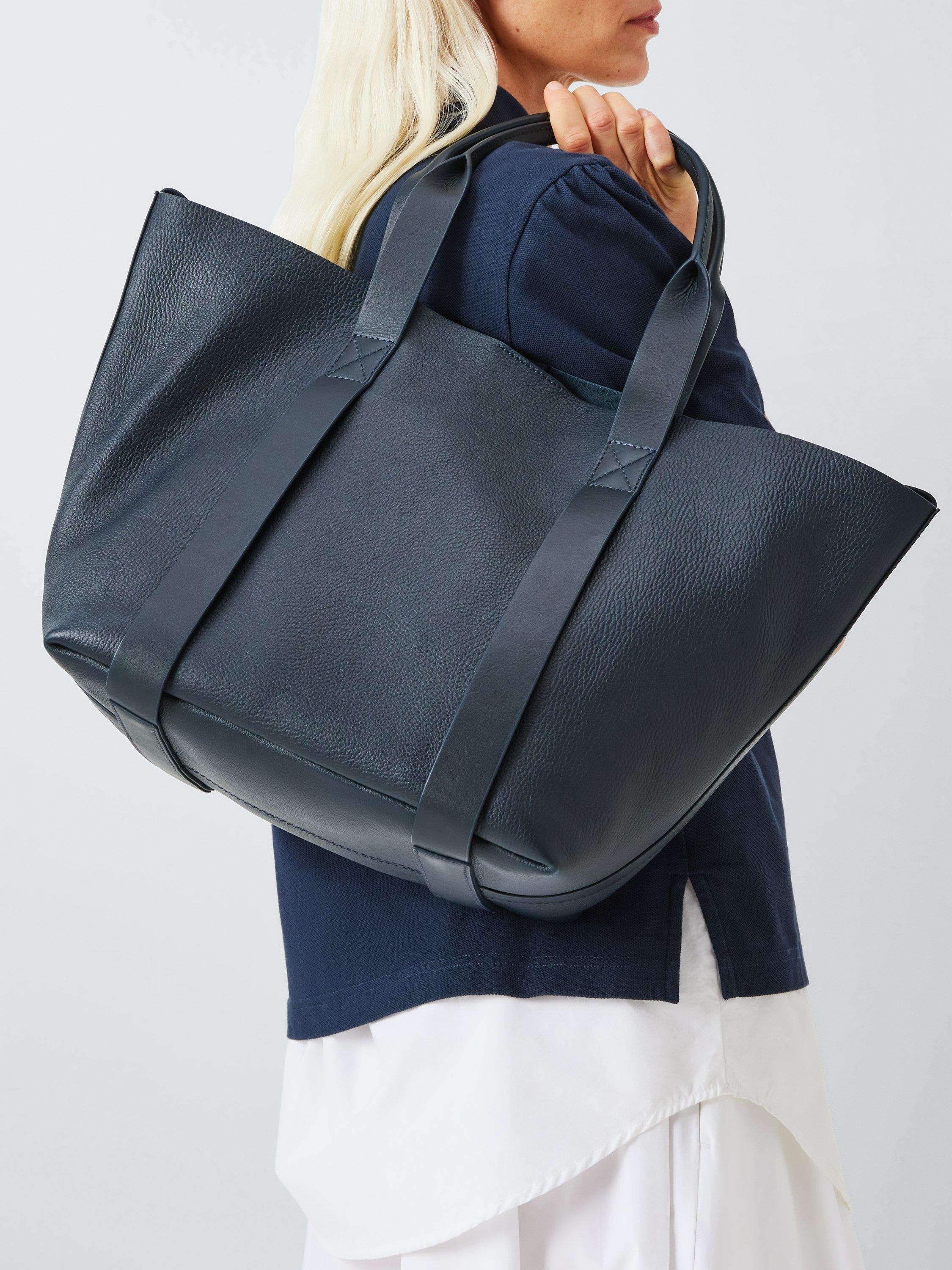 John Lewis Lux Leather Tote Bag, Navy