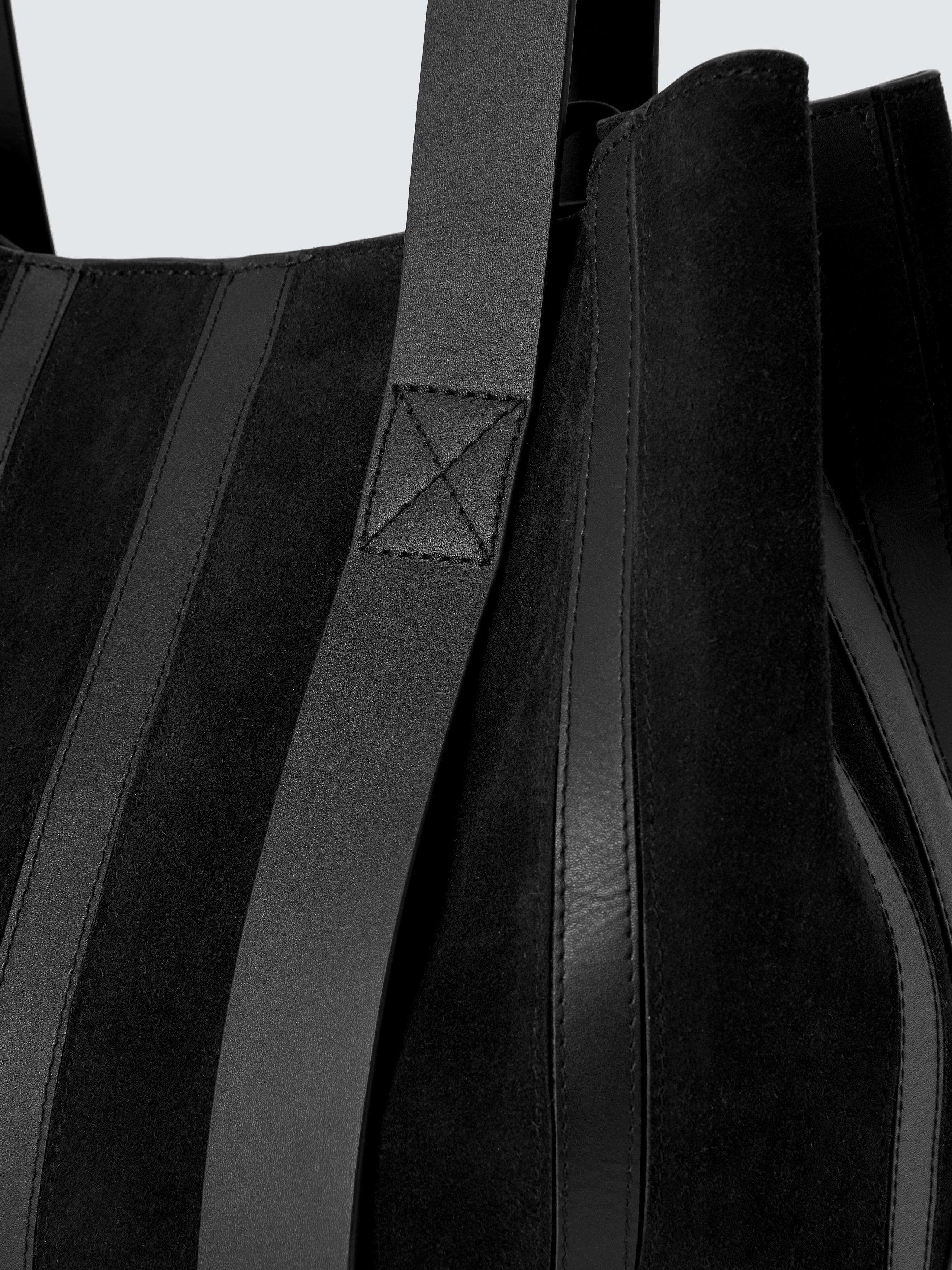 Crafted from soft suede detailed with leather stripes, this sleek tote bag features a spacious interior, perfect for your everyday essentials. Designed with twin handles for easy carrying.