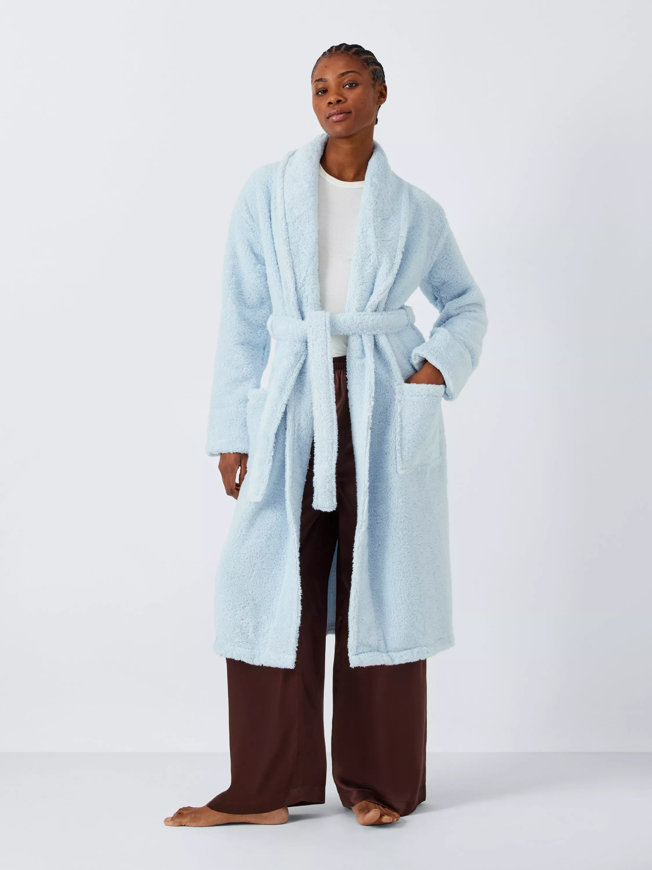 A classic, cosy, and comfy dressing gown made from an organic cotton blend towelling fabric Designed with a fuss-free tie waist and two handy patch pockets.