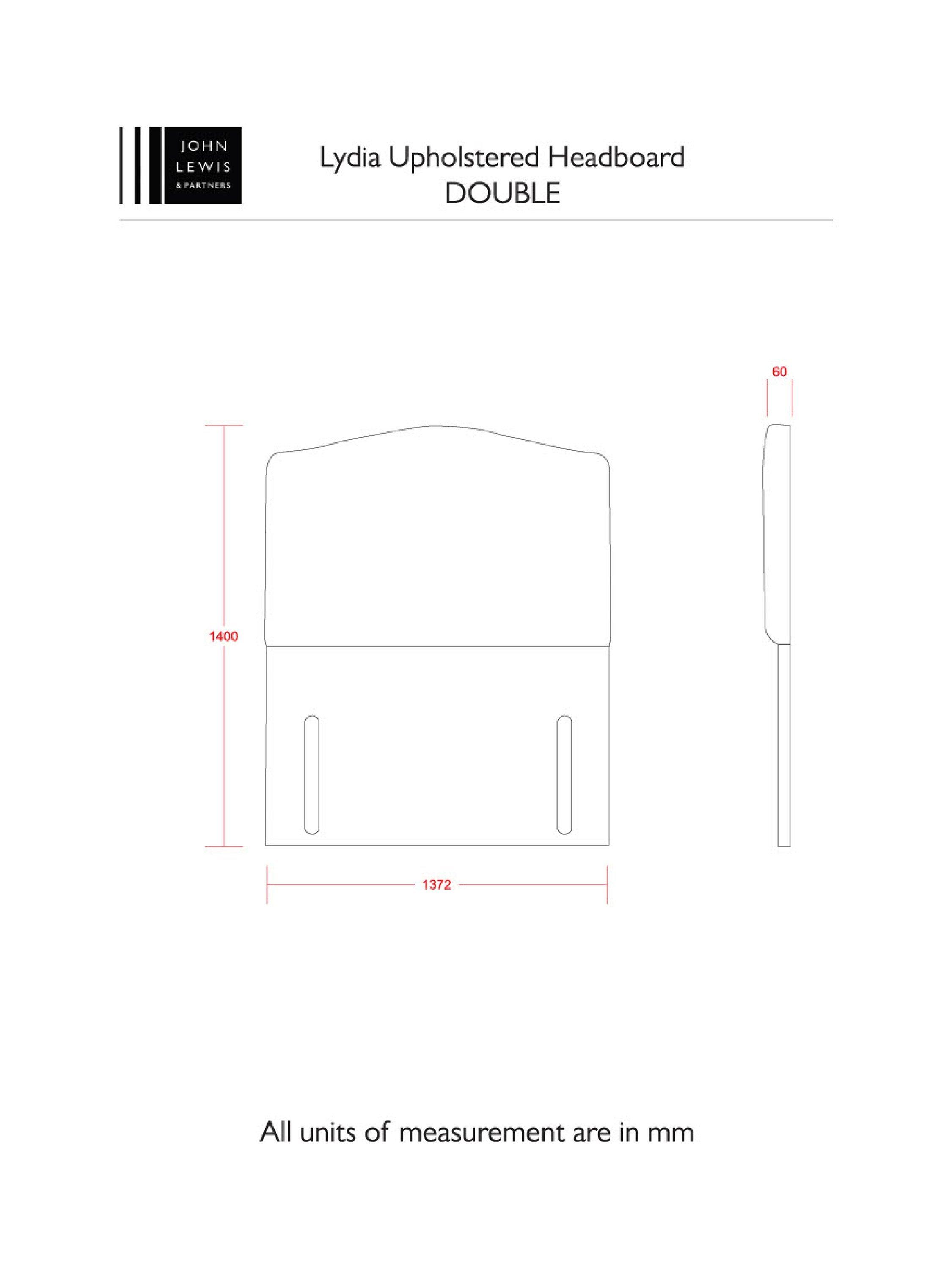 John LewisLydia Full Depth Upholstered Headboard, Double, Brushedweave Silver
