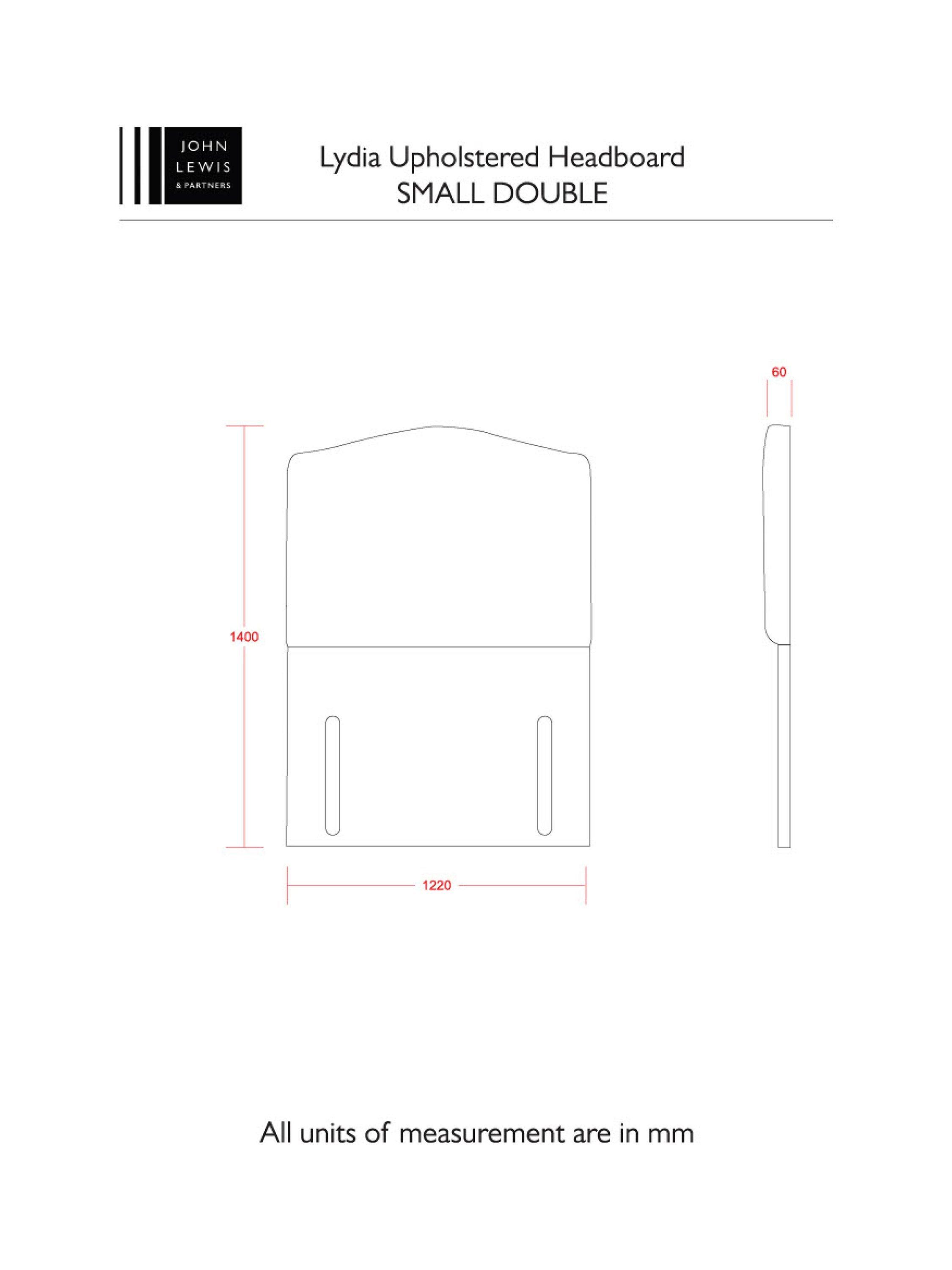 John LewisLydia Full Depth Upholstered Headboard, Small Double, Brushedweave Denim